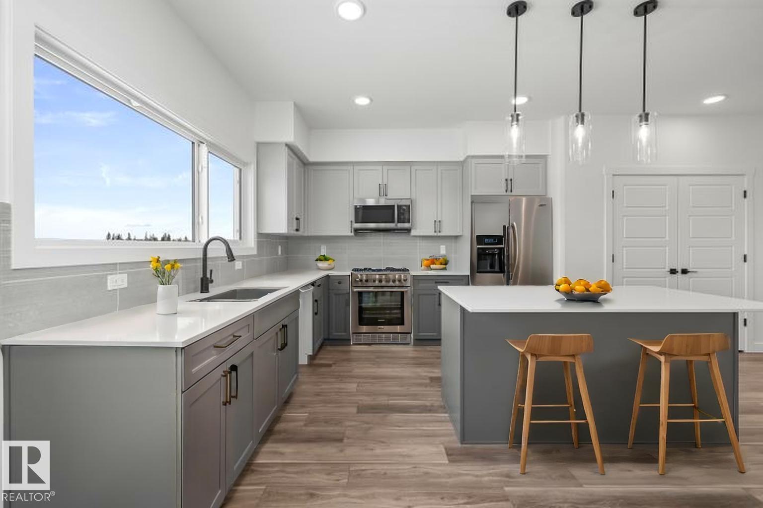 Discover modern elegance in this Sterling Homes laned home in Marquis. Designed with 9’ ceilings and triple-pane windows, the main floor is bathed in natural light, creating an airy, open feel. The heart of the home is a sun-soaked rear kitchen featuring quartz countertops, upgraded cabinetry, and a sink overlooking the backyard—perfect for keeping an eye on the kids. An effortless flow between the dining and living areas, plus a discreetly tucked-away half bath, makes hosting a breeze. Upstairs, a versatile loft provides a rare second living space, complemented by a bright primary suite with a walk-in closet and private ensuite. Two additional bedrooms, a full bath, and upper-floor laundry complete this family-friendly layout. With luxury vinyl plank flooring, a separate side entrance, and a larger-than-average backyard, this home offers incredible flexibility and growth potential in a community defined by parks and trails. (id:63190)