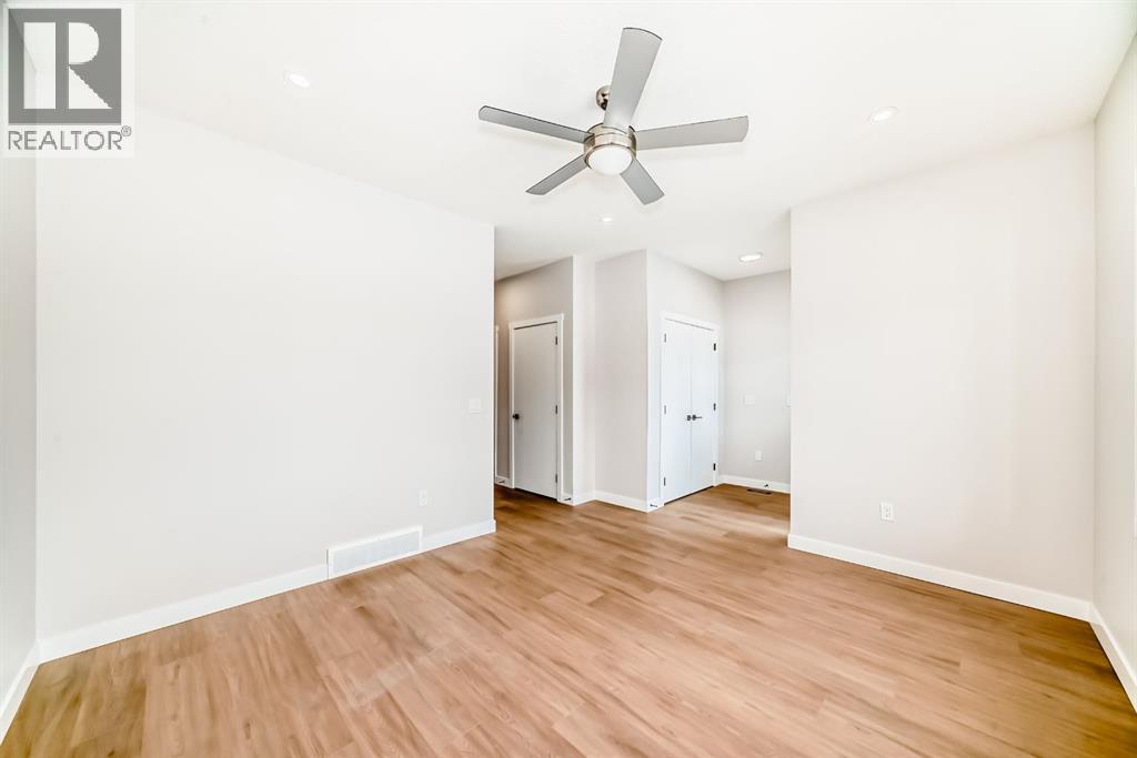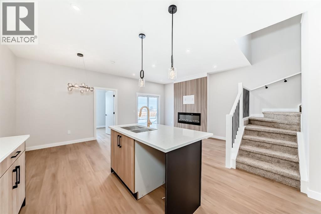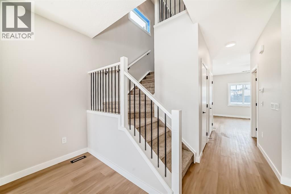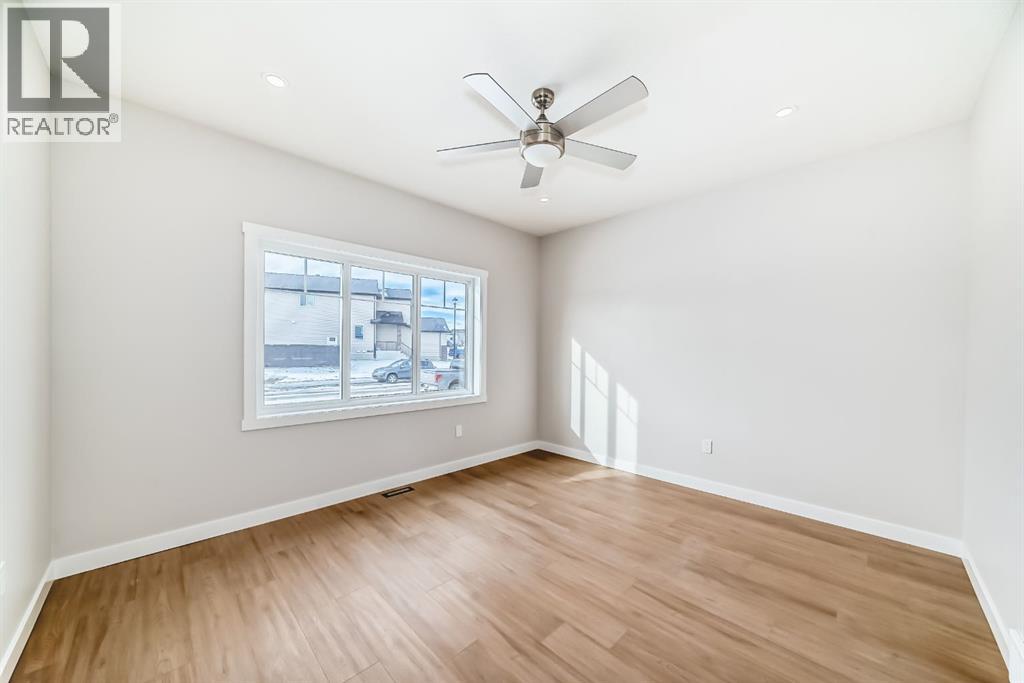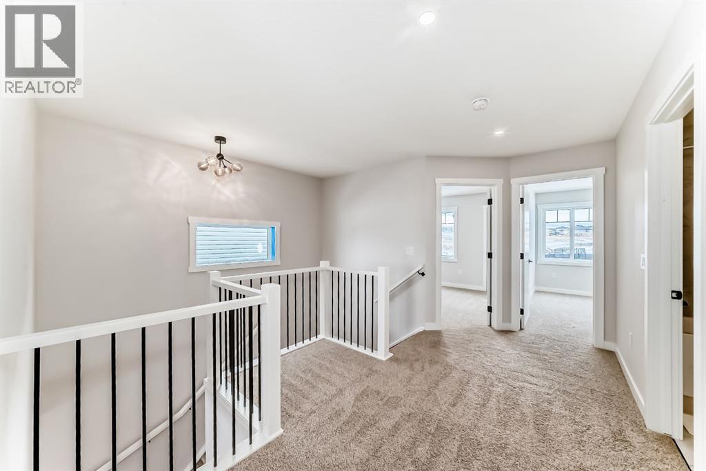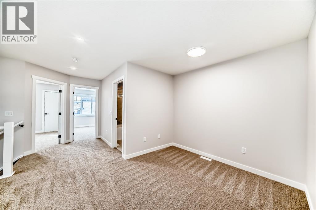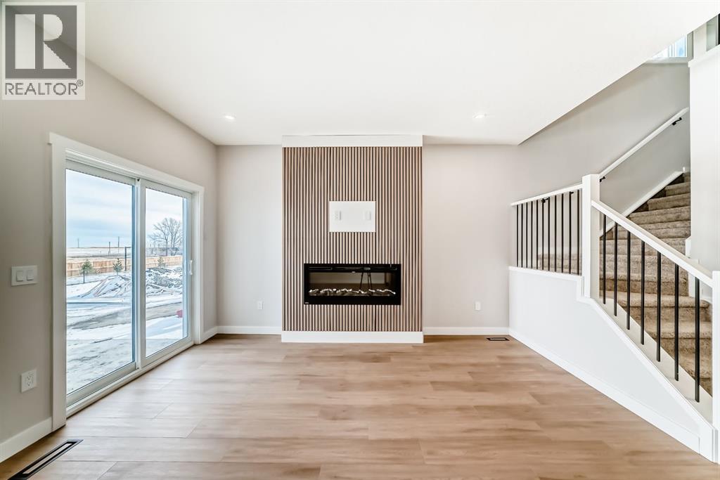 Welcome to this spacious and thoughtfully designed duplex in the charming town of Crossfield, Alberta, offering over 1,700 square feet of comfortable living space—perfect for growing families, professionals, or those seeking flexible work-from-home options.The main floor features a bright open-concept layout that seamlessly connects the living room, kitchen, and dining area, creating an ideal space for everyday living and entertaining. A separate family room provides additional space to relax or gather, while a main-floor bedroom—easily used as a home office or guest room—adds excellent versatility. A full bathroom completes the main level.Upstairs, you’ll find a well-appointed primary bedroom retreat complete with a walk-in closet and private ensuite bathroom. The upper level also includes two additional bedrooms, another full bathroom, a convenient laundry area, and a bonus room—perfect for a playroom, media space, or second living area.Located in the welcoming community of Crossfield, this duplex offers small-town charm with easy access to amenities and commuter routes. A fantastic opportunity to enjoy space, comfort, and functionality. (id:63190)