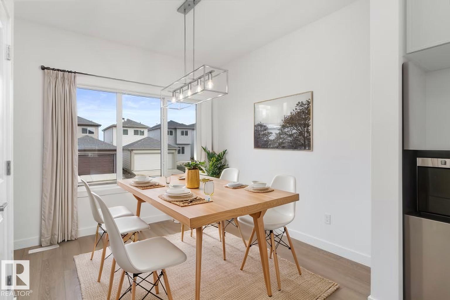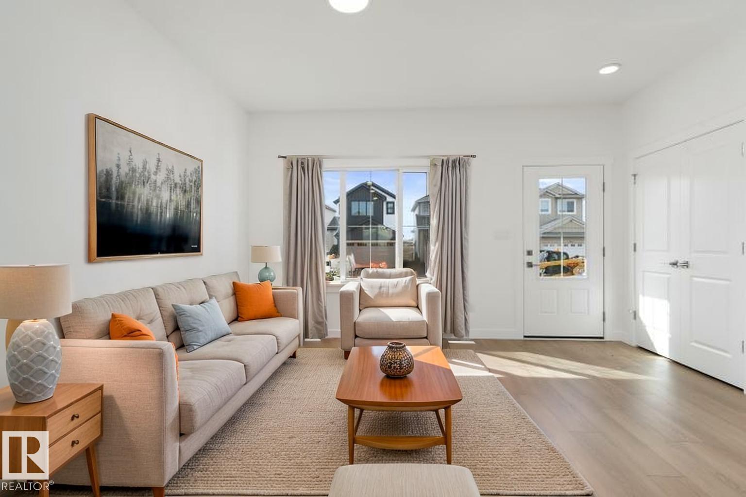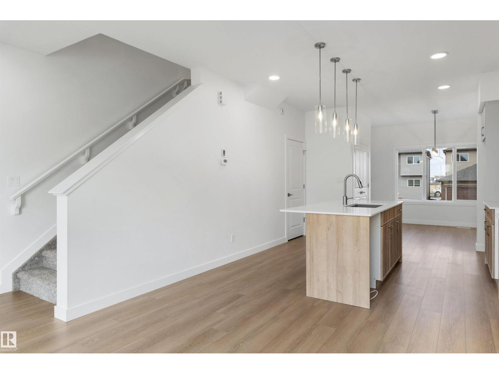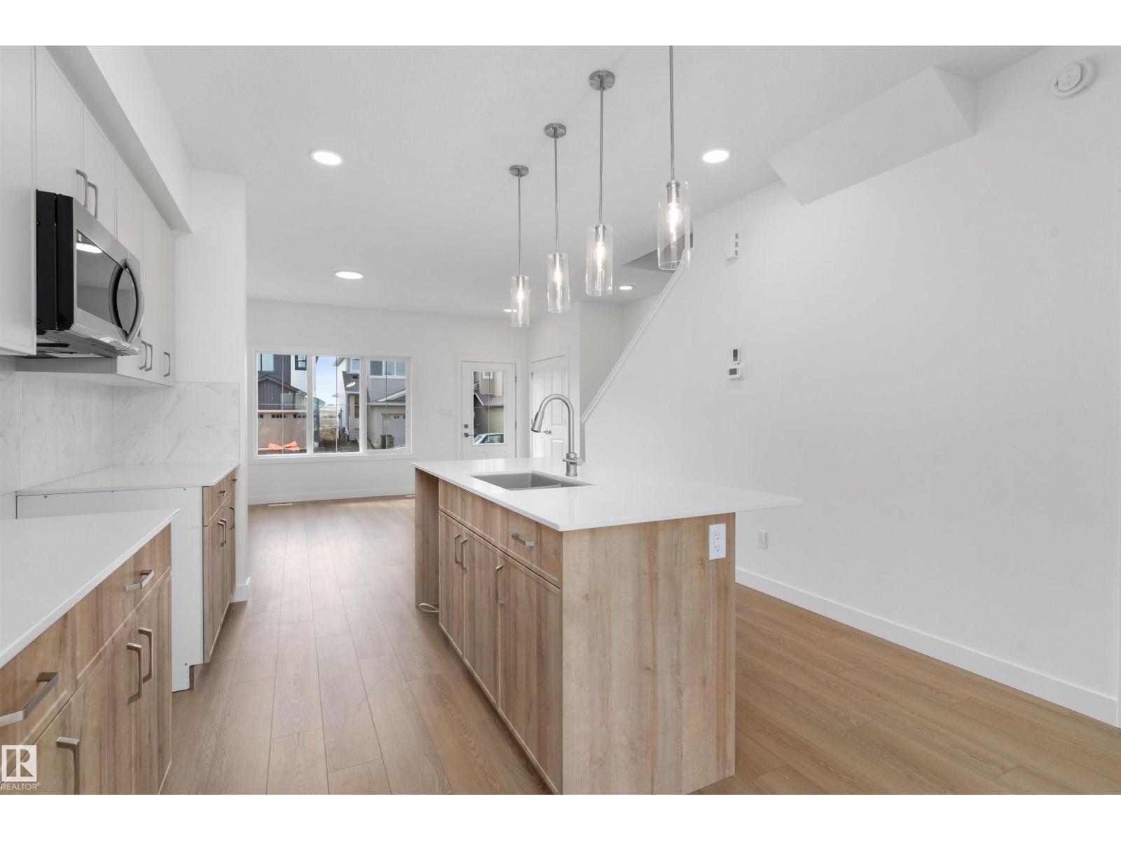 Built by Sterling Homes in the vibrant community of Aster, this beautifully designed laned home offers a perfect mix of warmth, style, and everyday practicality. Flooded with natural light from triple-pane windows, the open main floor features a welcoming living room that flows into a spacious kitchen. This heart of the home is equipped with sleek quartz countertops, a central island with seating, upgraded cabinetry, and a walk-in pantry. Large rear windows offer views of the backyard, creating an ideal setting for family dinners or quiet mornings. A discreetly placed half bath and rear entry add smart functionality to the layout. Upstairs, a cozy loft provides a flexible second living area, perfect for a home office or playroom. The primary suite serves as a bright retreat with a walk-in closet and a private 3-piece ensuite, complemented by two additional bedrooms and upper-floor laundry. With luxury vinyl plank flooring, a separate side entrance, and a parking pad, this home is a gem. (id:63190)