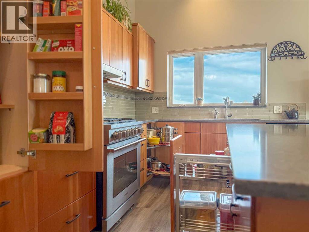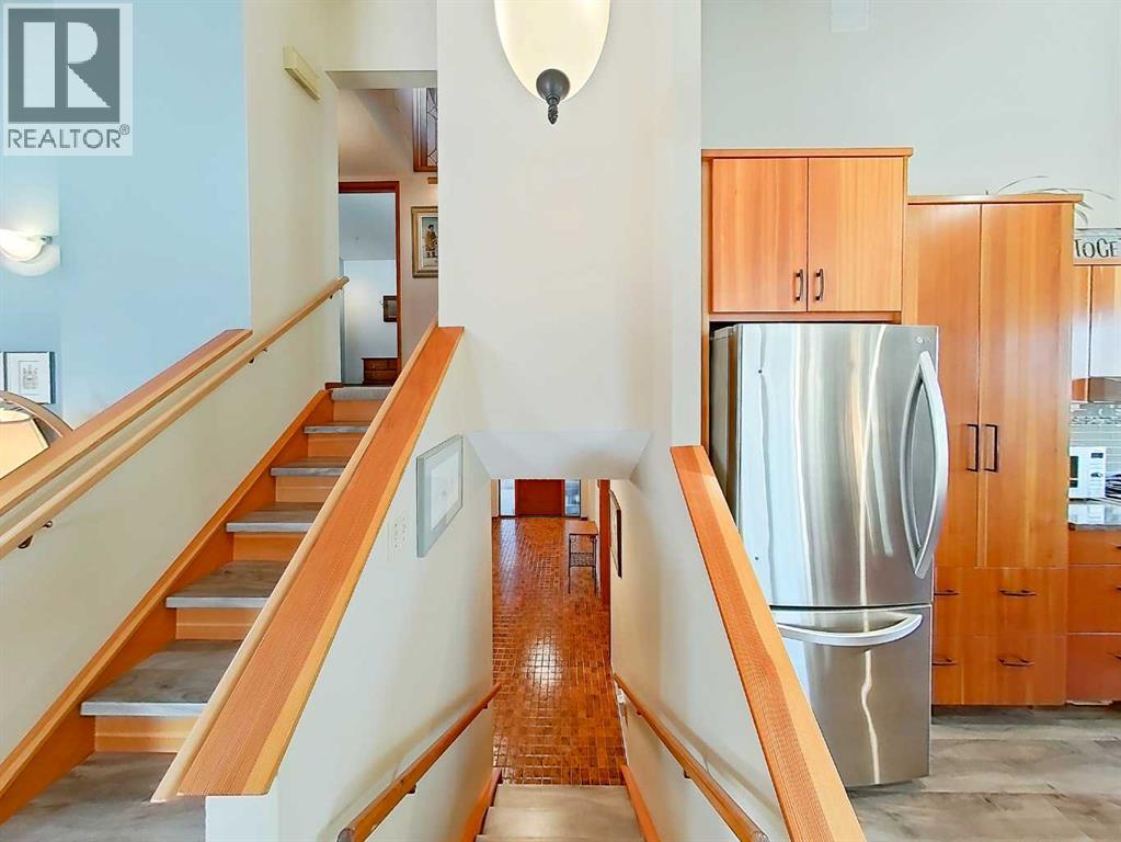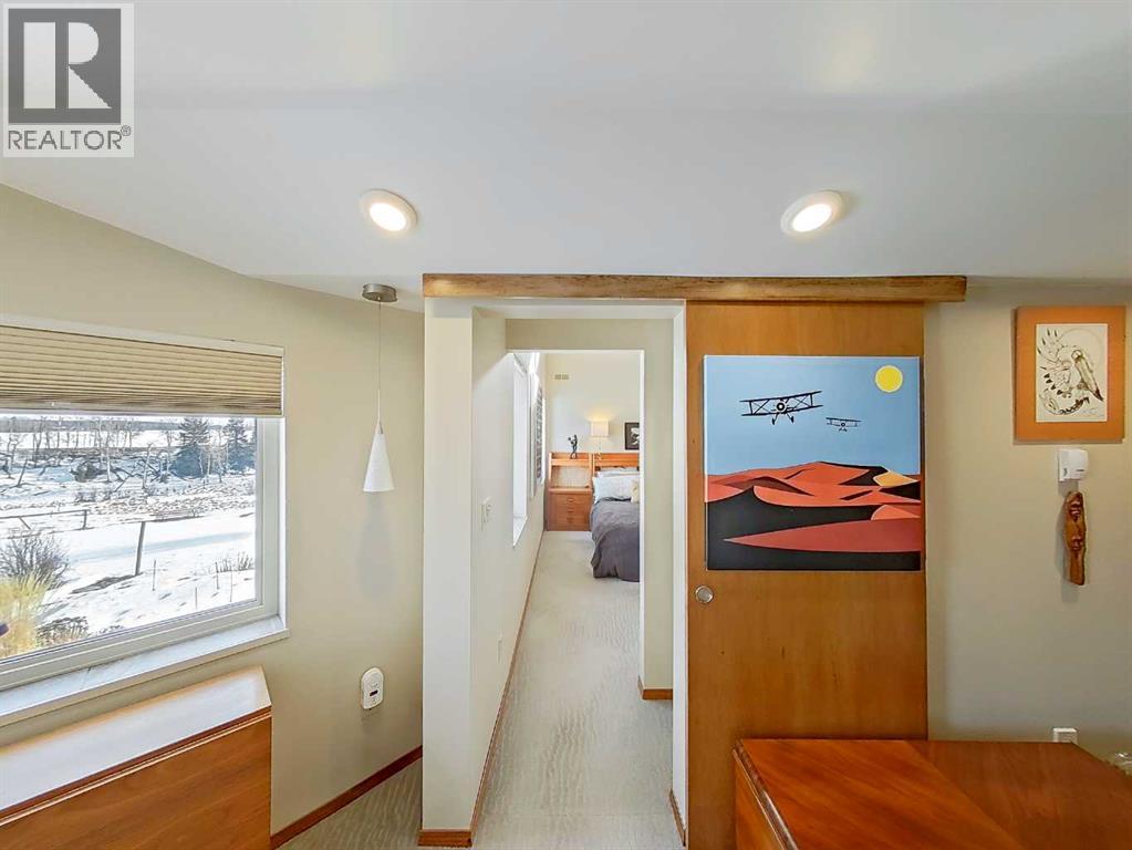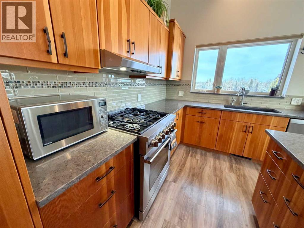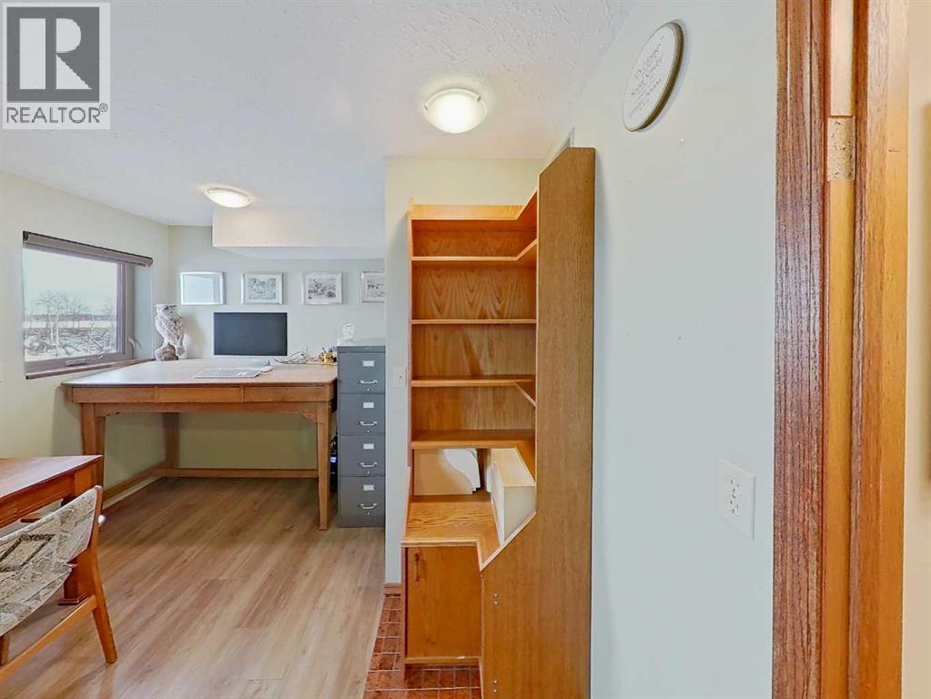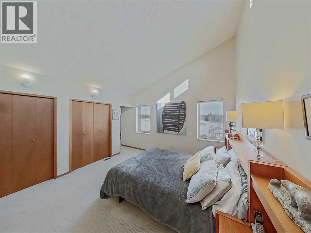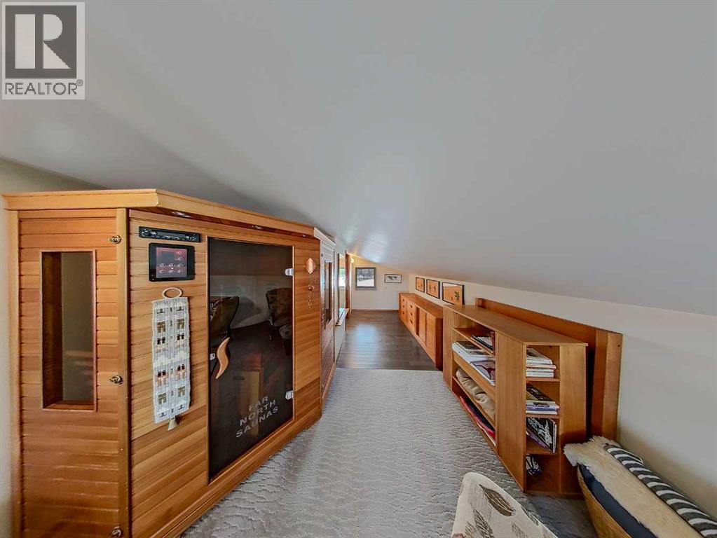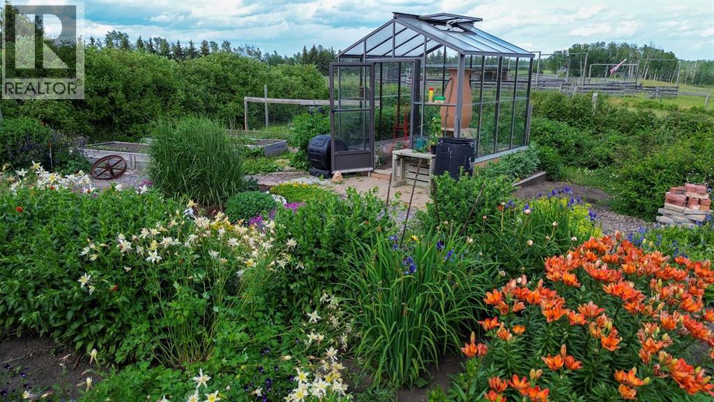 Amazing Opportunity to purchase this Leslieville area farm from the original owner. Built in 1982 this well thought out and lovingly maintained home was constructed with a passive solar design to maximize energy efficiency and has been substantially renovated in recent years. The spacious main entryway is just off the attached garage and under the large carport with unique cobblestone footing. Once inside, to the right is a comfortable family room with an older wood burning stove, and to the left a home office as well as a 3 piece bathroom with an upgraded shower, roughed in for a future steam shower. Up a short flight of stairs is the main living area that was renovated seven years ago with beautiful custom fir cabinets that feature well designed storage options, quartz countertops, upper end appliances, vinyl plank flooring, a nicely tucked away laundry area and a beautiful patio door that opens to the composition deck with aluminum railing on the southeast side of the home, overlooking the yard and ravine just beyond. Up to the top level and you'll find the primary bedroom suite with a cozy sitting area, Hearthstone gas stove, half bath and Far North Sauna. The main upstairs bathroom features beautiful lead camed glass windows and has an oversized jet tub that can be accessed from the hallway as well as from the two piece ensuite just off the bedroom suite. Two additional upstairs bedrooms feature unique loft areas that the kids or younger guests will absolutely love. In the lower level you'll find plenty of storage space with a cold room, storage shelves, crawl space storage and an wide open unfinished area. The attached garage is finished and heated with two convenient people doors, one that opens to an amazing garden with perennial beds, lilies, raspberry and haskap berry bushes and a very special glass green house that can be enjoyed year round. The land has been used for intensive rotational livestock grazing for many years and there's a large and very sceni c ravine that runs from the east to west - enjoy a hike on your very own property! The 28 x 56' open front Machine Shed was built in 2023, engineered for extra snow-load and wind. There's also a small corral system with a livestock waterer and a surface lease (Paramount Resources) north of the building site with $4500 annual income. The railway track runs along the north boundary where several thousand trees were planted 10 years ago. Extra points to note; some of the original Pella windows remain but many have been replaced with vinyl All Weather windows, acrylic stucco, Hardy Plank trim boards, shingles replaced four years ago and the septic tank pumped out in Nov 2025. The 37 acres north of the railroad tracks are also available for sale, $349,900, mls A2281501. There is truly so much to see and appreciate with this property, make sure you give yourself plenty of time to view. (id:63190)