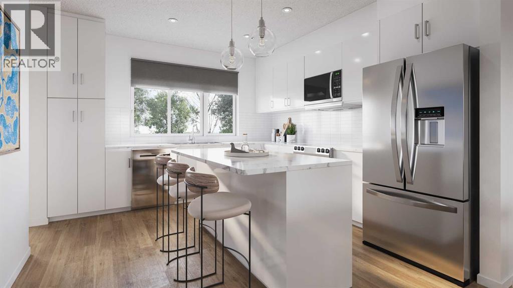 HOME IS UNDER CONSTRUCTION. StreetSide Homes towns at Vantage Rise, where thoughtful design, modern finishes, and long-term value meet to create a home that truly supports your lifestyle. Offering nearly 1,500 sqft of well planned living space, this 3-bedroom, 2.5-bath home delivers the perfect blend of comfort, function, and style. The bright open main floor is highlighted by 9’ ceilings, durable luxury vinyl plank flooring, and a stunning contemporary kitchen featuring quartz countertops, stainless steel appliances, soft-close cabinetry, designer lighting, tiled backsplash, and a large central island ideal for entertaining, casual meals, or gathering with family and friends.Upstairs, enjoy the everyday convenience of upper floor laundry and a spacious primary retreat, while two additional bedrooms provide flexibility for family, guests, or a home office. The unfinished basement with roughed-in plumbing offers a valuable opportunity to customize future living space to suit your needs while building equity over time. Outside, the benefits continue with full landscaping, completed fencing, and a double detached garage. Saving you time, effort, and additional expenses after your purchase so you can simply move in and enjoy.Best of all, NO CONDO FEES means greater monthly affordability and financial freedom. Located in Airdrie’s newest southwest community, Vantage Rise is thoughtfully planned to include future commercial amenities, quality outdoor spaces, and a strong sense of community connection. This is a home that not only looks beautiful today but also supports your lifestyle and investment goals for years to come. NOTE: PHOTOS ARE RENDERINGS NOT ACTUAL PHOTOS OF THE UNIT. (id:63190)