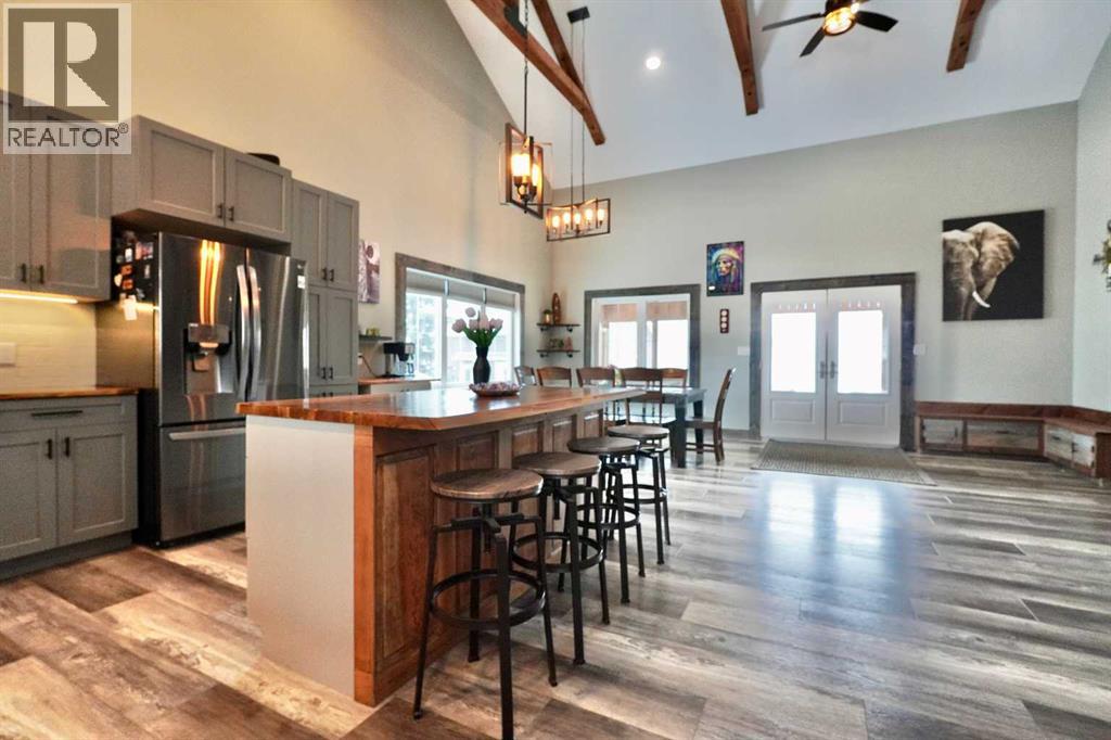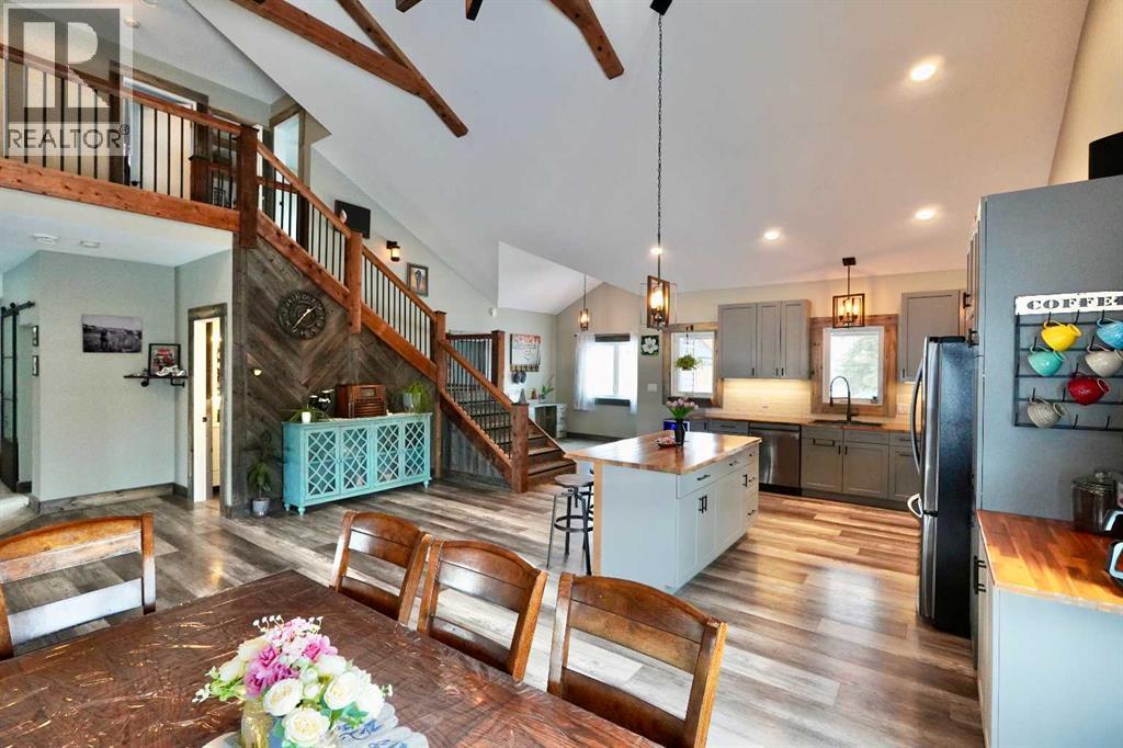 Custom Charm, Modern Comfort & Room to Live — Welcome to Nampa! Step into this stunning custom-built 1.5 storey home offering over 1,900 sq ft of thoughtfully designed living space where character and functionality meet beautifully. From the moment you enter, the breathtaking open-concept main living area makes a statement — soaring vaulted ceilings, decorative wood beams, and walls of windows flood the home with natural light and create an inviting atmosphere you’ll love coming home to. The heart of the home is the impressive chef-inspired kitchen, packed with custom cabinetry and detailed finishes, abundant storage, generous counter space, and a large island with breakfast bar perfect for busy mornings or casual visits. The kitchen and dining area flow seamlessly outdoors to the covered deck, giving you perfect sightlines to the backyard and making hosting summer BBQs with family and friends effortless. The main floor continues to impress with a spacious family room ideal for movie nights or a media lounge, a convenient office that can easily serve as a third bedroom or guest room, a 2-piece bathroom, and a practical laundry/utility room. Upstairs you’ll find a comfortable and private retreat featuring a large primary bedroom complete with walk-in closet and access to the spa-like 5-piece bathroom, along with an additional generous bedroom. Outside, the property truly shines. The beautifully landscaped 15,000 sq ft lot provides all the space you need to relax, play, and entertain. A large shed offers extra storage, while the impressive 32' x 32' detached garage/shop with a 14' x 32' loft creates endless possibilities — home gym, studio, hobby space, or the ultimate workshop. Located in the quiet, welcoming community of Nampa, this home delivers small-town living with big lifestyle appeal. This one-of-a-kind custom home simply must be experienced in person — book your showing today and see why you’ll want to call it home! (id:63190)