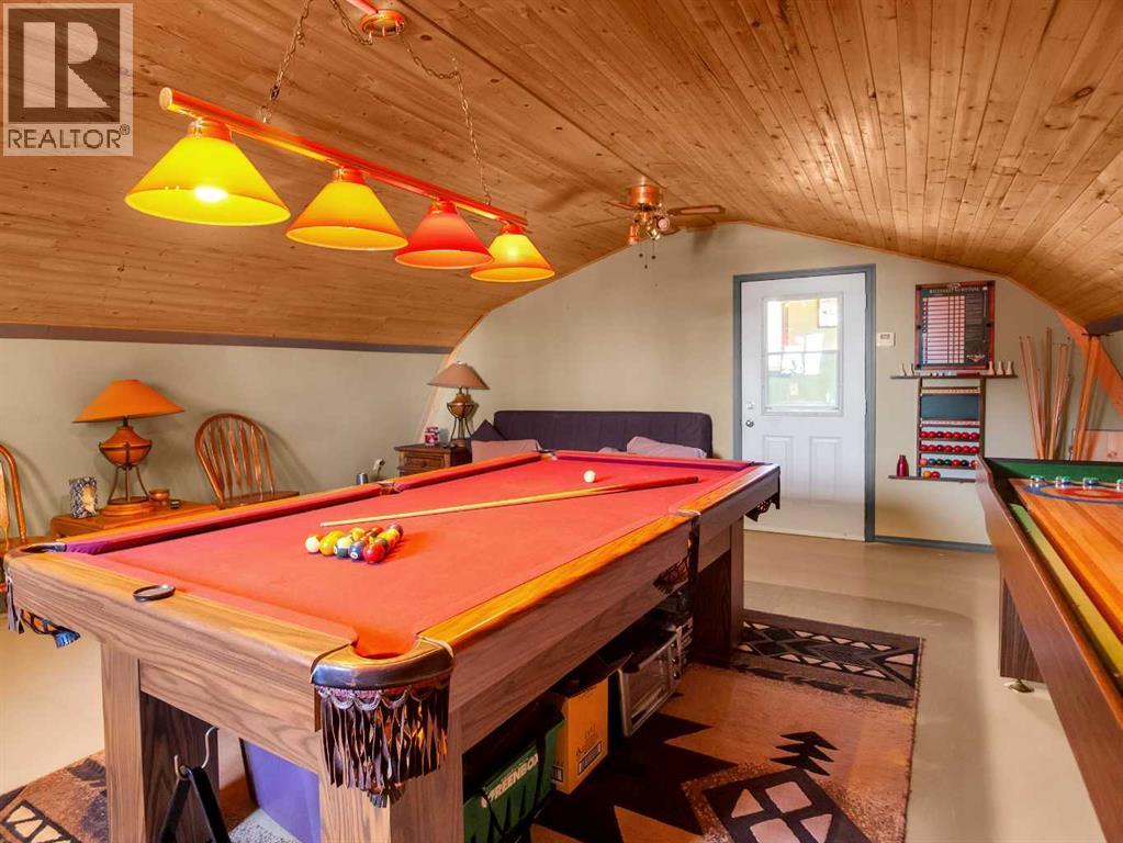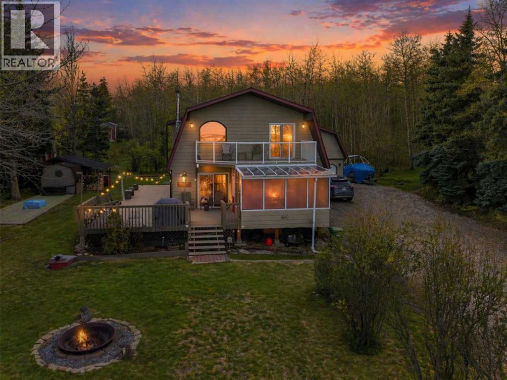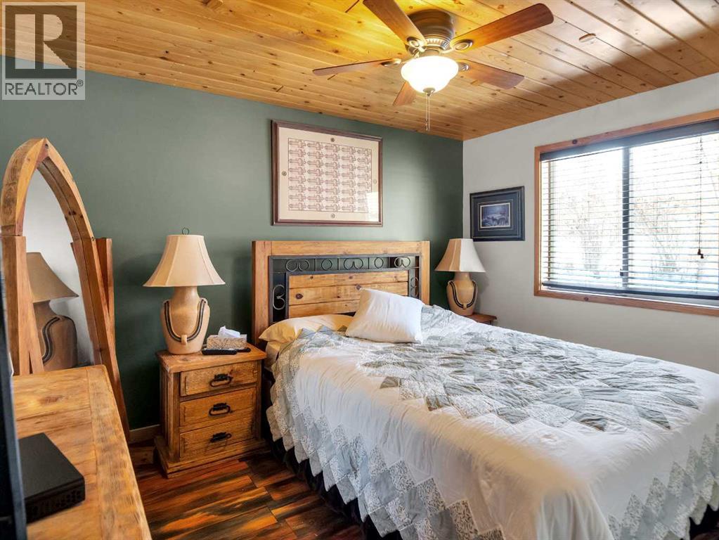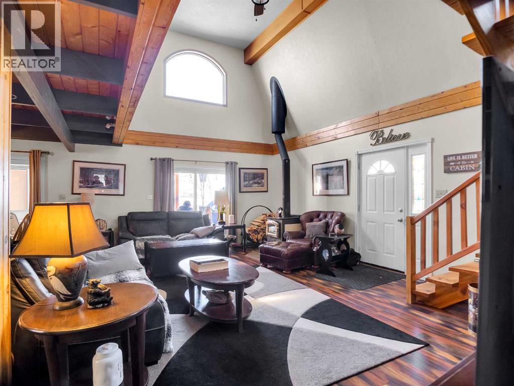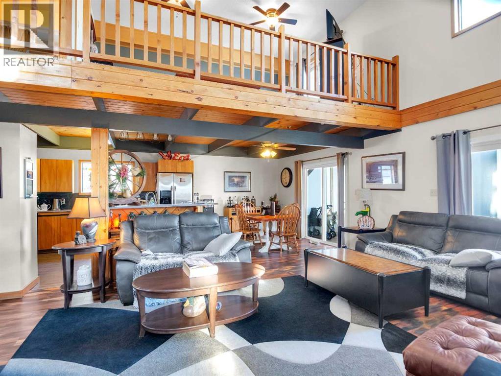 Wake up to beautiful views overlooking Gull Lake in this warm and inviting cottage-style home, tucked among the trees with the water just out front. This well-cared-for property features 3 bedrooms (2 up, 1 down), with the open loft overlooking the living room currently used as a cozy primary space. High ceilings, natural wood accents, and thoughtful improvements create a comfortable, relaxed lake home feel.The kitchen and dining area flow easily for everyday living, and the main bathroom showcases a classic clawfoot tub that perfectly suits the cottage charm. Step outside to enjoy the peaceful setting, lake views from the deck, and the beauty of the surrounding trees.The oversized heated garage includes a bonus bunkroom or games room above with a newer furnace. Three sheds provide excellent storage, including a workshop and a larger shed with power, lighting, and loft space. Close to the beach, boat launch, and golf course, and only minutes to Rimbey for amenities. (id:63190)