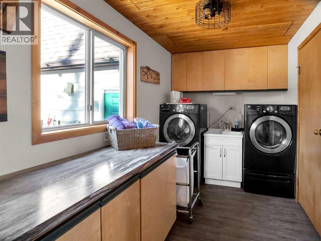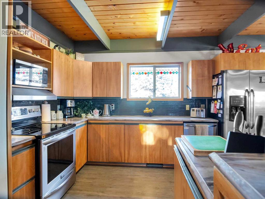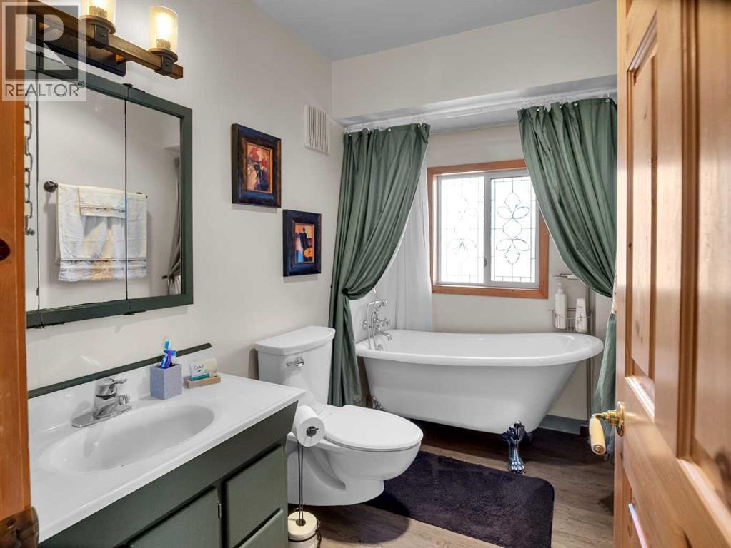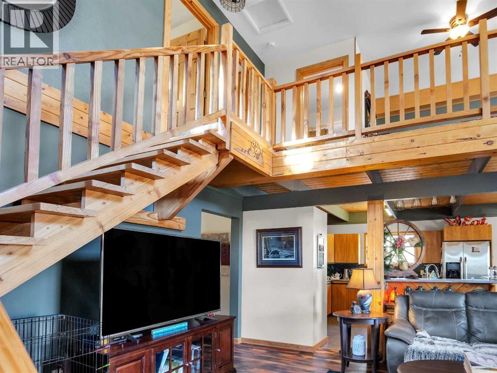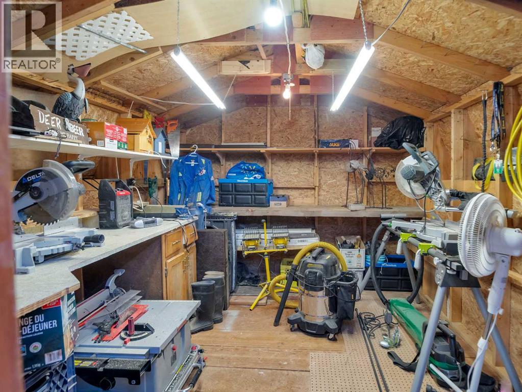 Wake up to beautiful views overlooking Gull Lake in this warm and inviting cottage-style home, tucked among the trees with the water just out front. This well-cared-for property features 3 bedrooms (2 up, 1 down), with the open loft overlooking the living room currently used as a cozy primary space. High ceilings, natural wood accents, and thoughtful improvements create a comfortable, relaxed lake home feel.The kitchen and dining area flow easily for everyday living, and the main bathroom showcases a classic clawfoot tub that perfectly suits the cottage charm. Step outside to enjoy the peaceful setting, lake views from the deck, and the beauty of the surrounding trees.The oversized heated garage includes a bonus bunkroom or games room above with a newer furnace. Three sheds provide excellent storage, including a workshop and a larger shed with power, lighting, and loft space. Close to the beach, boat launch, and golf course, and only minutes to Rimbey for amenities. (id:63190)