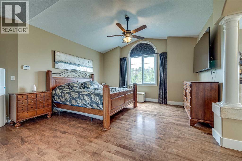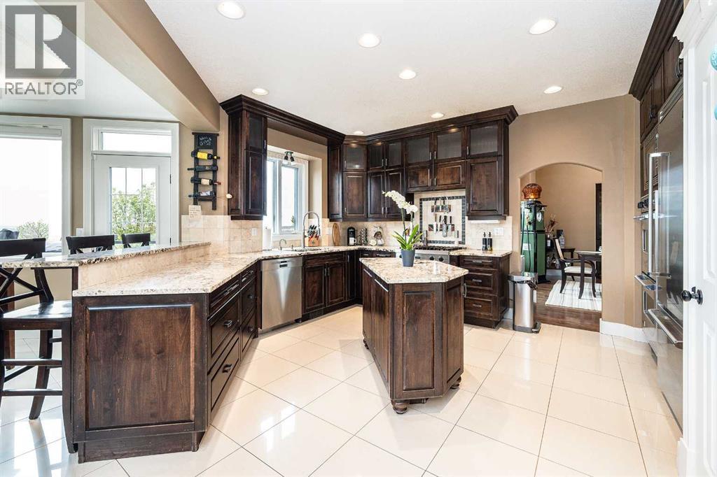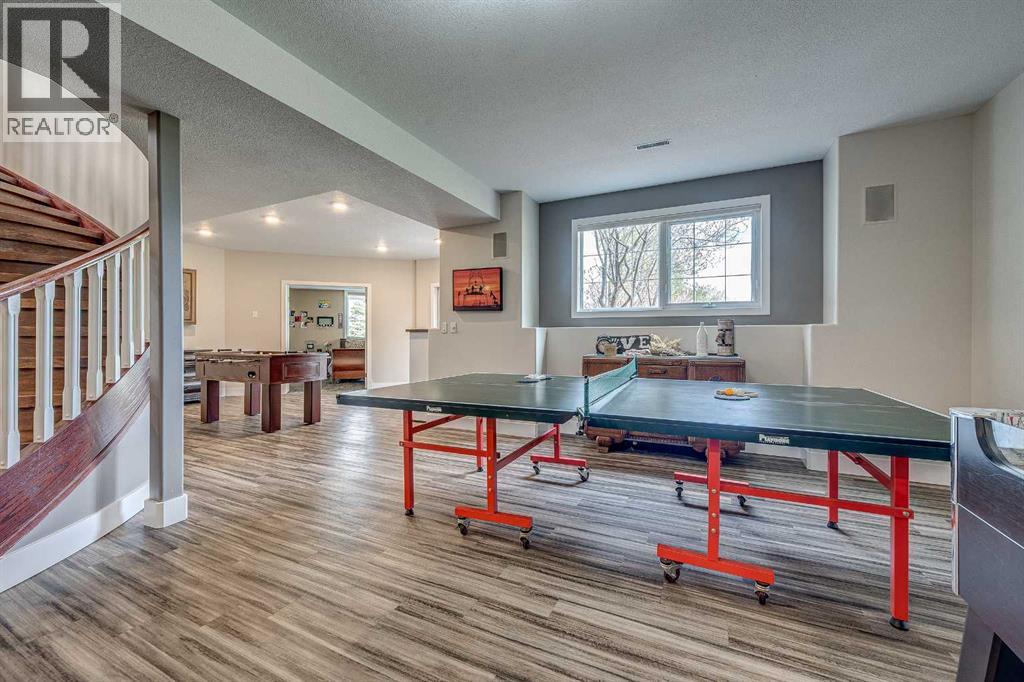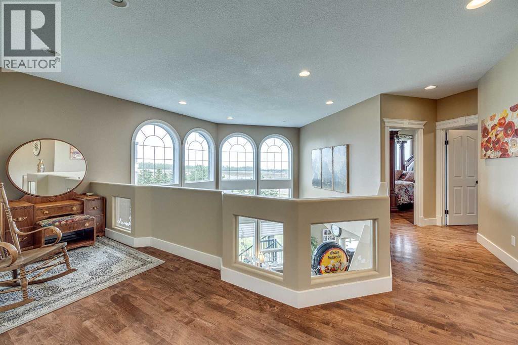 Perched high on the south hill overlooking the charming town of Sylvan Lake, this magnificent property offers unparalleled luxury, breathtaking views and development opportunities. With over 5,000 square feet of living space, this grand estate features dramatic 22-foot cathedral ceilings and a stunning spiral staircase that sets the tone for the opulence within.The main level is a haven for culinary enthusiasts, boasting a chef's kitchen equipped with top-of-the-line appliances. The formal dining and living rooms are ideal for entertaining guests in style, while the cozy family room offers a great space for everyday living. Additionally, there is a main floor office for work or managing the home. Practical amenities abound, with a large back entryway featuring a locker room, laundry room, and a convenient 2-piece bathroom.Upstairs, you'll find four spacious bedrooms, two of which have ensuite bathrooms for added privacy and comfort. The primary suite is your personal sanctuary, featuring a dream ensuite with a soaker tub, steam shower, and walk-in closet. A loft area provides a serene space to relax and enjoy the panoramic views, and a stylish 5-piece bathroom serves the other bedrooms.The walkout basement offers two large bedrooms, one with a walk-in closet, and a full 4-piece bathroom. A kitchenette makes this space perfect for empty-nester parents. The entertainment hub includes a games area and a theatre setting perfect for movie nights.Garages and additional spaces are plentiful. The triple attached garage offers ample space for everyday parking. The detached shop is a massive 46 x 36 structure accommodating vehicles, boats or all your toys, and includes a recently added shop hoist. The shop also features a bonus mezzanine with a full kitchen, 4-piece bath, and a balcony overlooking the lake. There are options to convert the upper part of the detached shop into additional living space with board-in bedrooms, providing even more versatility. An additional 2 -piece bathroom and a stackable laundry unit in the main garage area adds even more convenience.The property has had numerous upgrades, ensuring modern comfort and efficiency. The garage floor was upgraded with an epoxy finish. Both the house and shop exteriors were painted and weather-sealed. All interior tiles were sealed and 2.5 bathrooms were recently renovated. Updated custom cabinetry and crown moldings are just a few of the upgrades that have been done. 70 Foot RV parking on west side of the shop with 30 amp plug Beyond the main house, this property offers potential for development with 10 lots or 6 executive lots that can be subdivided, totaling 2.99 acres in lot size on the perimeter of the Vistas.. SUBDIVISION is an option if INVESTMENT is what you seek. This estate offers a perfect blend of luxury, comfort, and functionality, making it a dream home for discerning buyers. Don’t miss the opportunity to own this extraordinary property with its unmatched views and top-of-the-line amenities. (id:63190)