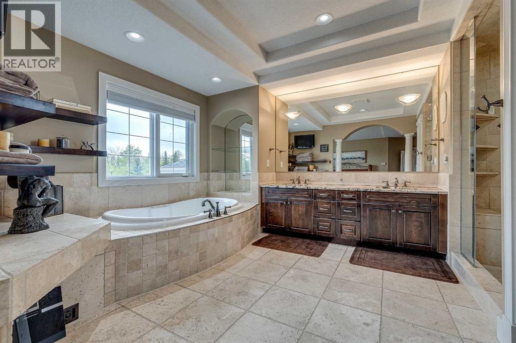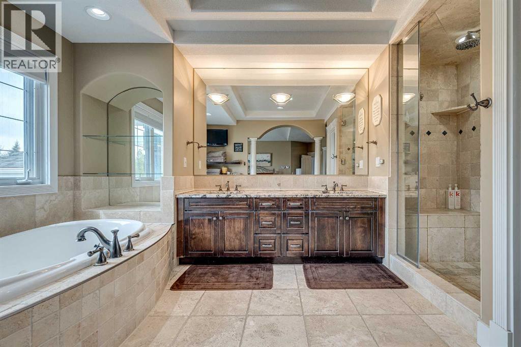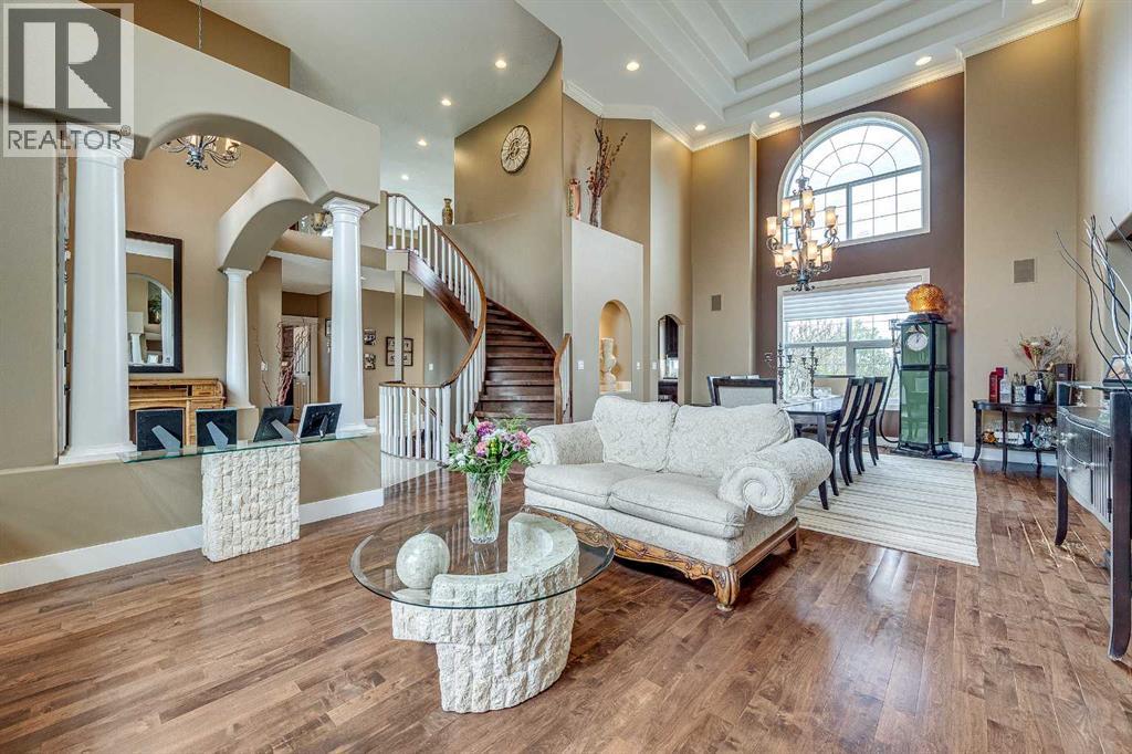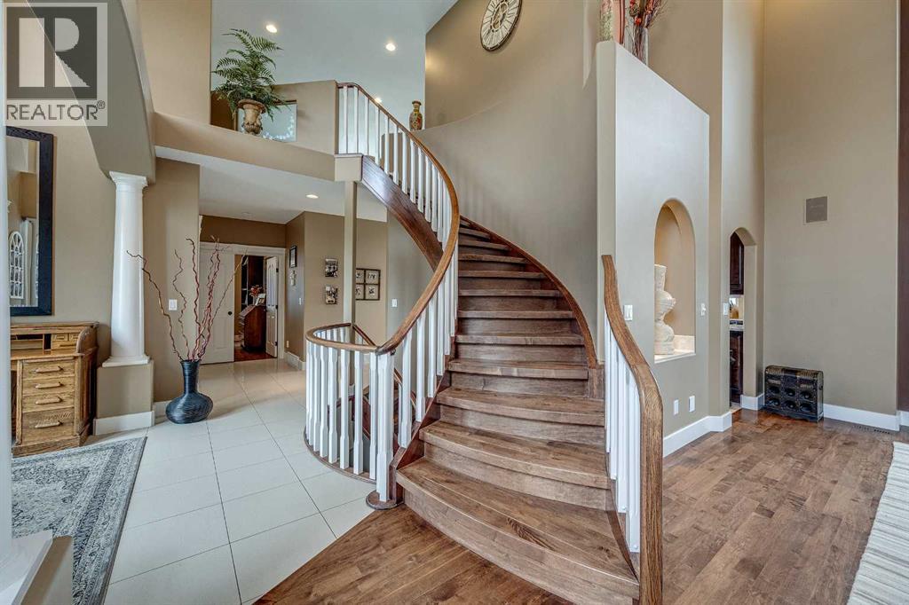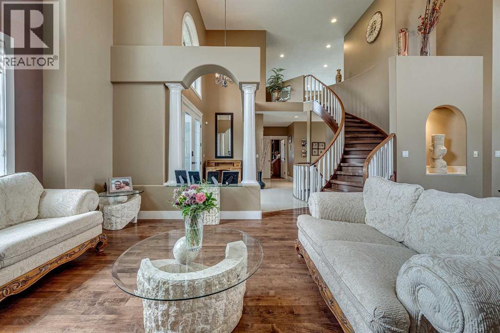 Perched high on the south hill overlooking the charming town of Sylvan Lake, this magnificent property offers unparalleled luxury, breathtaking views and development opportunities. With over 5,000 square feet of living space, this grand estate features dramatic 22-foot cathedral ceilings and a stunning spiral staircase that sets the tone for the opulence within.The main level is a haven for culinary enthusiasts, boasting a chef's kitchen equipped with top-of-the-line appliances. The formal dining and living rooms are ideal for entertaining guests in style, while the cozy family room offers a great space for everyday living. Additionally, there is a main floor office for work or managing the home. Practical amenities abound, with a large back entryway featuring a locker room, laundry room, and a convenient 2-piece bathroom.Upstairs, you'll find four spacious bedrooms, two of which have ensuite bathrooms for added privacy and comfort. The primary suite is your personal sanctuary, featuring a dream ensuite with a soaker tub, steam shower, and walk-in closet. A loft area provides a serene space to relax and enjoy the panoramic views, and a stylish 5-piece bathroom serves the other bedrooms.The walkout basement offers two large bedrooms, one with a walk-in closet, and a full 4-piece bathroom. A kitchenette makes this space perfect for empty-nester parents. The entertainment hub includes a games area and a theatre setting perfect for movie nights.Garages and additional spaces are plentiful. The triple attached garage offers ample space for everyday parking. The detached shop is a massive 46 x 36 structure accommodating vehicles, boats or all your toys, and includes a recently added shop hoist. The shop also features a bonus mezzanine with a full kitchen, 4-piece bath, and a balcony overlooking the lake. There are options to convert the upper part of the detached shop into additional living space with board-in bedrooms, providing even more versatility. An additional 2 -piece bathroom and a stackable laundry unit in the main garage area adds even more convenience.The property has had numerous upgrades, ensuring modern comfort and efficiency. The garage floor was upgraded with an epoxy finish. Both the house and shop exteriors were painted and weather-sealed. All interior tiles were sealed and 2.5 bathrooms were recently renovated. Updated custom cabinetry and crown moldings are just a few of the upgrades that have been done. 70 Foot RV parking on west side of the shop with 30 amp plug Beyond the main house, this property offers potential for development with 10 lots or 6 executive lots that can be subdivided, totaling 2.99 acres in lot size on the perimeter of the Vistas.. SUBDIVISION is an option if INVESTMENT is what you seek. This estate offers a perfect blend of luxury, comfort, and functionality, making it a dream home for discerning buyers. Don’t miss the opportunity to own this extraordinary property with its unmatched views and top-of-the-line amenities. (id:63190)