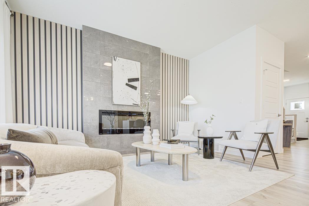 Built by Sterling Homes, this front-attached home in McConachie offers the modern layout families love, including a walk-through pantry connecting the kitchen to the mudroom and garage. Triple-pane windows and 9’ ceilings brighten the open main floor. The kitchen features quartz counters, island seating, upgraded cabinetry, a chimney hood fan, tile backsplash, and a built-in microwave. Upstairs, the primary suite includes a walk-in closet and a 4-piece ensuite with double sinks, plus a bonus room with flex space, two bedrooms, laundry with sink, side entrance, double garage, and basement rough-ins. (id:63190)