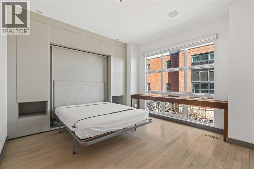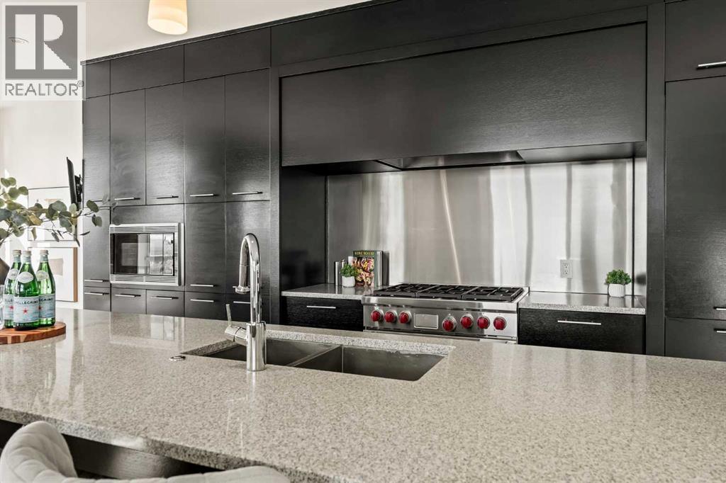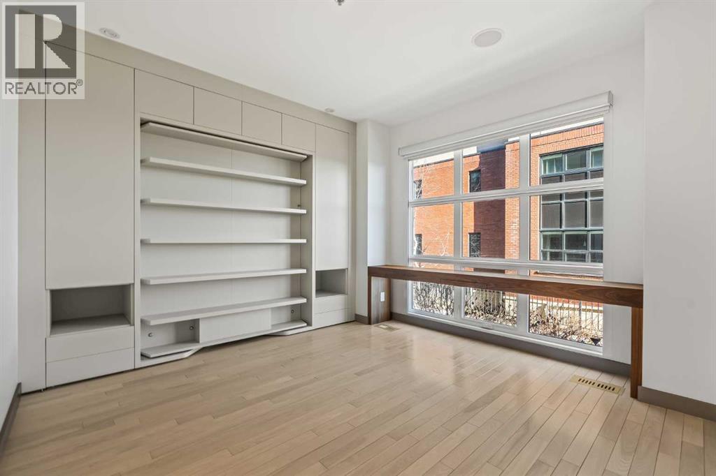 Welcome to luxury living in the heart of Aspen Estates at 101 Aspen Meadows Hill SW - a sophisticated, executive-style end-unit townhouse offering over 3,700 sq ft of beautifully designed living space, a private elevator connecting all levels, and unobstructed southwest mountain views. Perfectly suited for professionals and empty nesters seeking comfort, privacy, and low-maintenance living, this elegant residence blends timeless design with thoughtful upgrades and exceptional functionality.The entry level welcomes you with a spacious foyer, a versatile bedroom or home office complete with a custom built-in desk and Italian Murphy bed, and a full bathroom - perfect for guests or day-to-day flexibility. This level also features a bright, open-concept layout centred around a large bar and entertainment space, with a comfortable living area that opens onto a sunny balcony, creating an ideal setting for hosting or relaxing at the end of the day.The second level offers two large bedrooms, including a spacious primary retreat with dual walk-in closets (one thoughtfully converted from the original laundry space) and a luxurious 5-piece ensuite. A second bedroom with its own ensuite ensures comfort and privacy for guests or visiting family. Wool carpeting adds warmth and comfort throughout this level, while integrated audio and visual upgrades enhance everyday living.The top floor is designed for both entertaining and relaxation, featuring a stunning family room with an electric fireplace, an expansive dining area, and a second chef-inspired kitchen complete with premium appliances including Sub-Zero, Wolf, and Miele. Beautiful exposed brick adds warmth, character, and a timeless architectural element, creating a striking backdrop that elevates the entire space. Large windows frame the sweeping mountain views and capture sunlight throughout the day thanks to the home’s east south west exposure.Downstairs, the fully developed basement adds valuable flex space with a r ecreation room, laundry area with Miele washer, water softener, and built-in TV and sound system. The heated double attached garage is a standout, finished with an epoxy floor, new heater with thermostat and remote control, built-in cabinets, workshop space, and a convenient shoe closet.Additional upgrades include Lutron programmable lighting, remote-controlled blinds and shades, a hot water recirculating pump, updated elevator components, glass shower enclosures in all bathrooms, and a new electrical breaker panel - all contributing to a refined and effortless lifestyle. Located in the prestigious Aspen Woods community, this home offers exceptional convenience with the C-Train just across 17th Avenue, quick access to Stoney Trail and Highway 1, and close proximity to Westside Recreation Centre, shopping, dining, and top-rated schools. (id:63190)