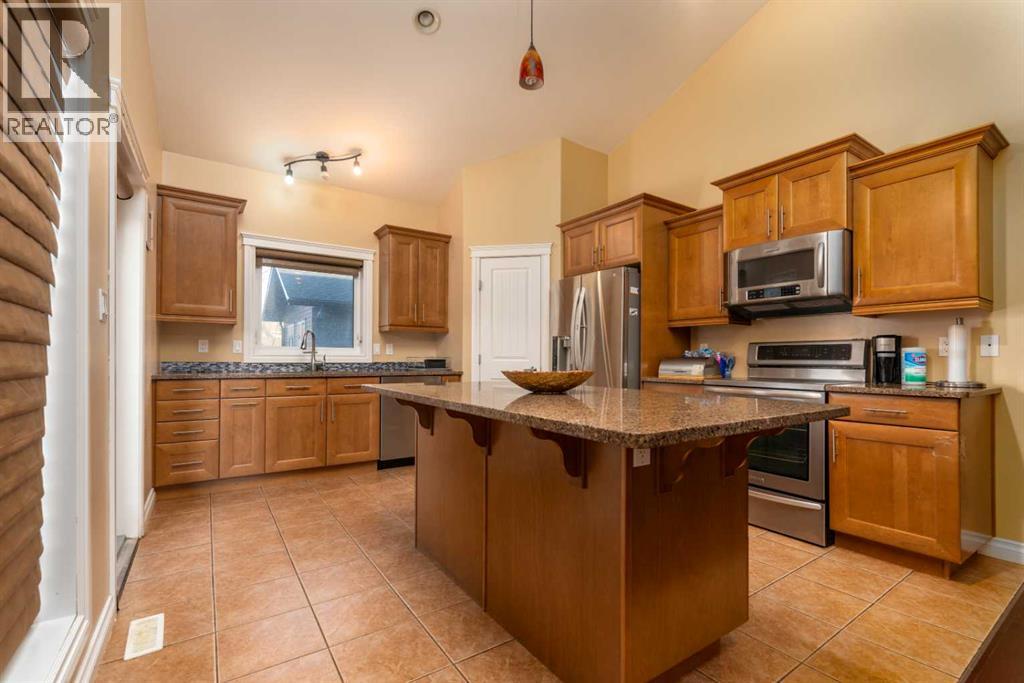 Welcome to this well-maintained 1,900+ sq. ft. modified bi-level located in the desirable Parkview neighbourhood on the Alberta side of Lloydminster. Offering 5 bedrooms and 3 full bathrooms, this home provides exceptional space and functionality for a growing family. The open-concept main floor features no carpet throughout, creating a clean, modern feel that is both stylish and low maintenance. The spacious kitchen is designed for everyday living and entertaining, complete with a large island, granite countertops, and ample cabinetry. The living and dining areas connect seamlessly, offering a practical layout with plenty of room to gather.The private primary suite, situated above the garage, serves as a comfortable retreat and includes a 5-piece ensuite with dual sinks, a soaker tub, and a separate shower, along with generous closet space. Two additional bedrooms and a full bathroom complete the main level. Downstairs, the fully finished basement showcases 9-foot ceilings, adding to the sense of space. You’ll find two additional bedrooms, another full bathroom, and a spacious family room ideal for relaxing or entertaining.Outside, enjoy a deck overlooking the fully fenced yard, perfect for kids and pets. The large parking pad provides ample off-street parking. Located close to parks, schools, and walking paths, this home offers space, comfort, and a prime location in one of Lloydminster’s most sought-after neighbourhoods. Check out the 3D virtual tour! (id:63190)