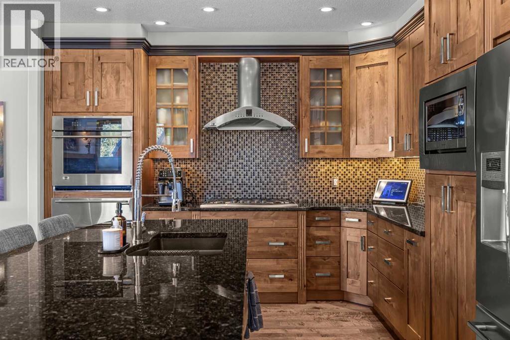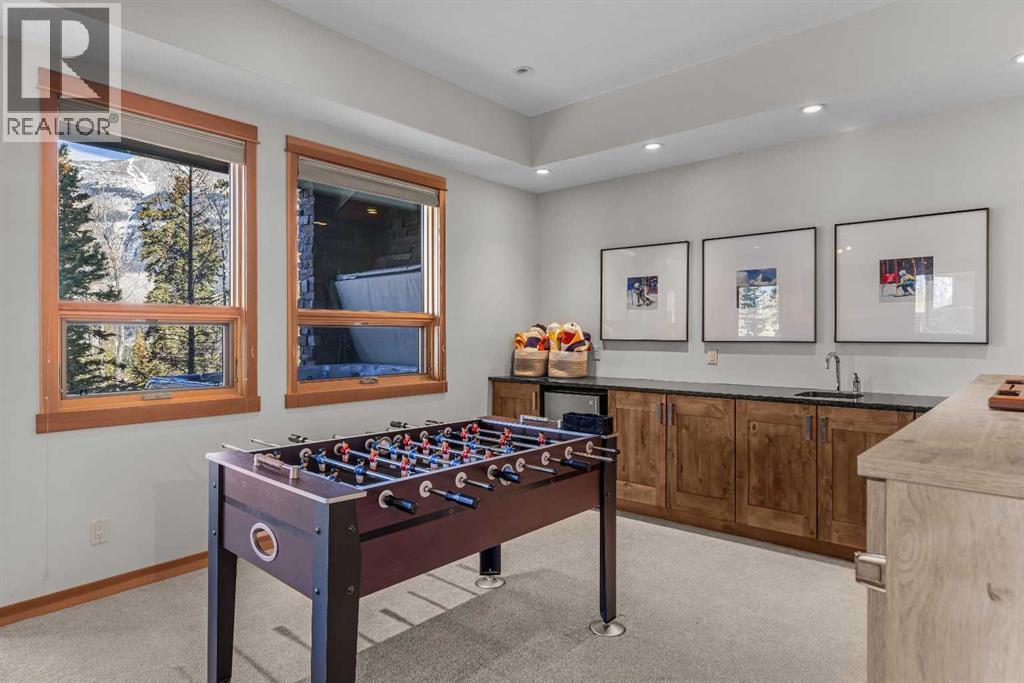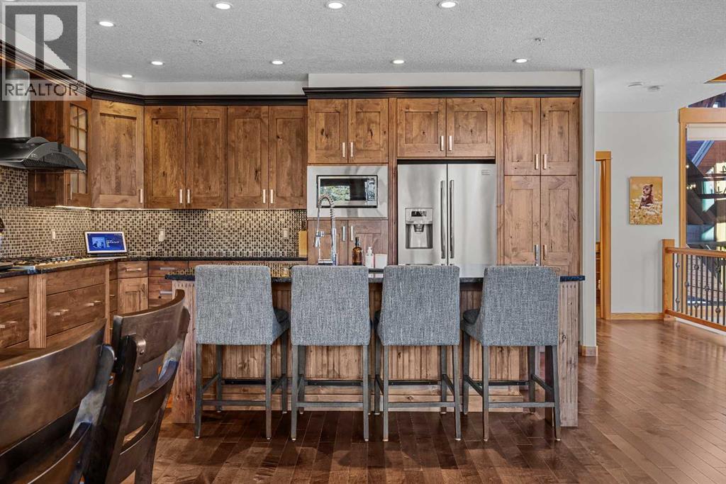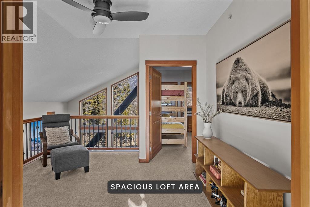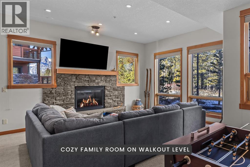 Soaring ceilings, timber frame accents, and panoramic mountain views set the tone the moment you walk in. Offering almost 3,000 square feet of thoughtfully designed living space, this mountain retreat blends scale with warmth. An open-riser staircase adds architectural flair and enhances the true chalet feel. With multiple decks and a walkout level built for entertaining, the home is designed for both gathering and quiet escape.The main level features a gourmet kitchen with stainless steel appliances, alder cabinetry, granite counters, BBQ deck access, and a spacious dining nook. The great room showcases floor-to-ceiling windows and a cozy gas fireplace framed by valley views. Tucked around the corner is a convenient half bath and a generous bedroom with private ensuite and its own coffee deck.Upstairs offers a loft/office plus two additional bedrooms, each with its own ensuite, including a steam shower in the primary. Wake up to Lady Mac out back or Big Sister out front from the primary suite. The walkout level includes a second living room with fireplace, games area, wet bar, 4-piece bath, and hot tub patio backing onto green space and pathway.A double attached garage provides room for all your mountain gear, and the high-end mechanical system, including boiler and heat recovery, reflects the quality throughout. Furniture is included, making this a true turnkey opportunity—just move in and enjoy mountain life. (id:63190)