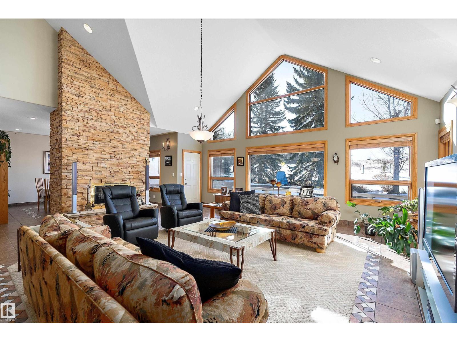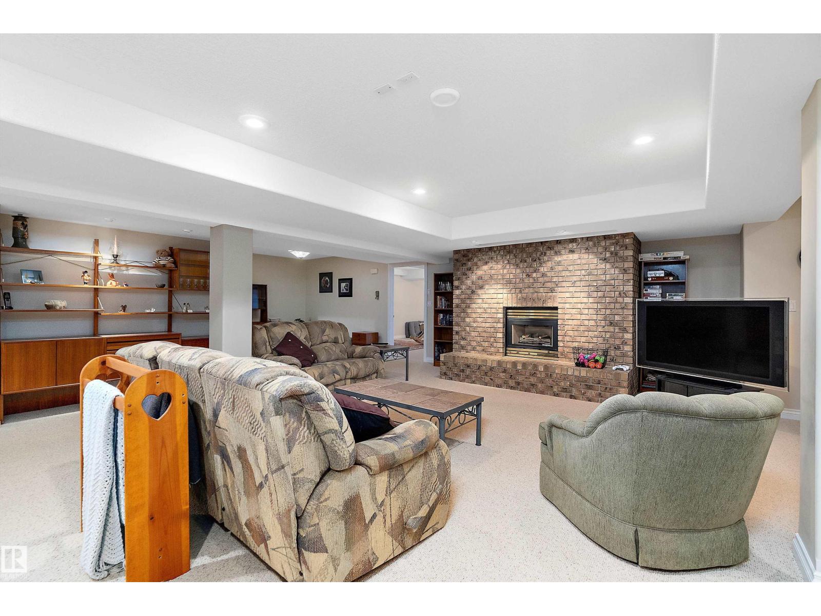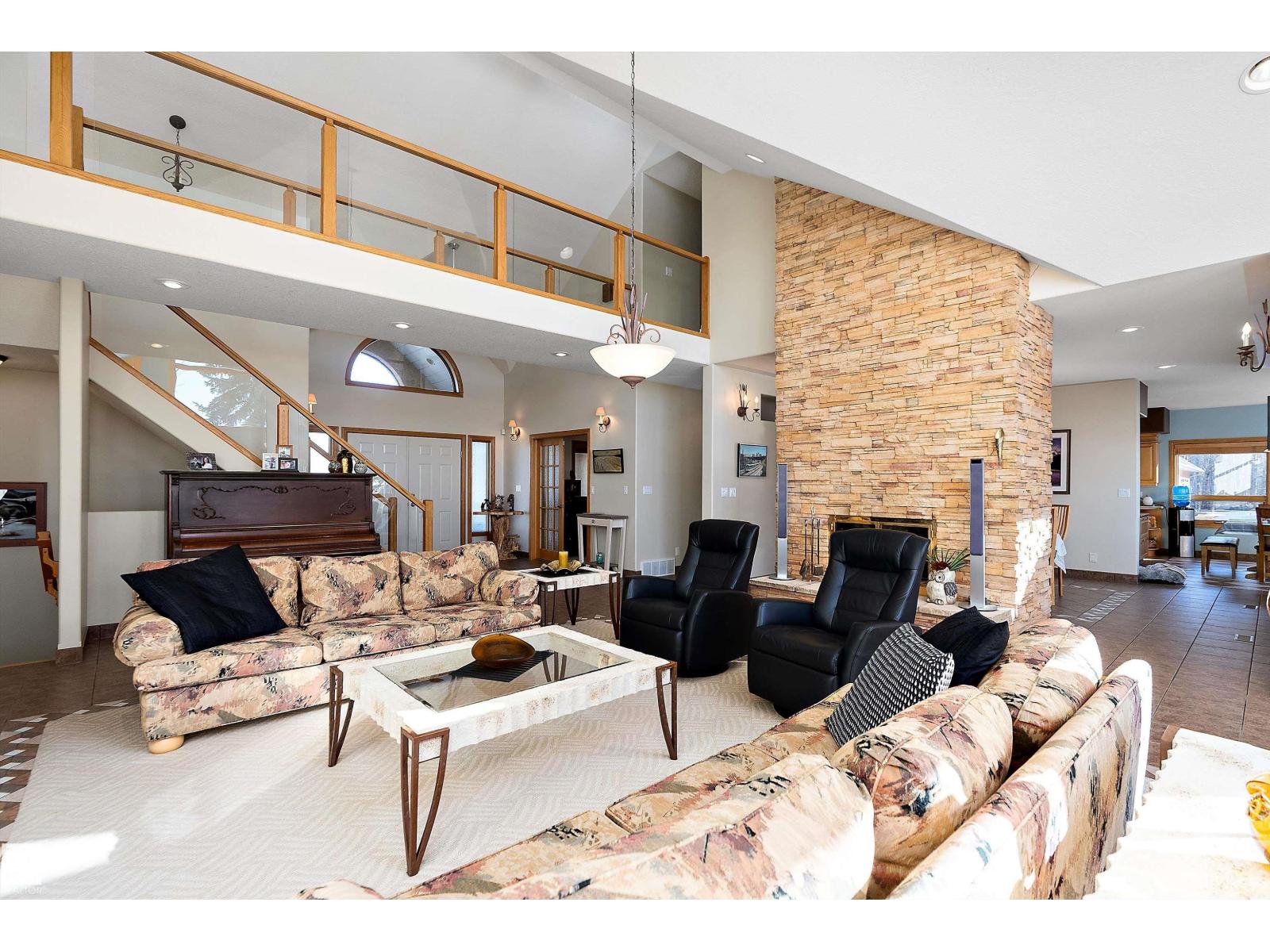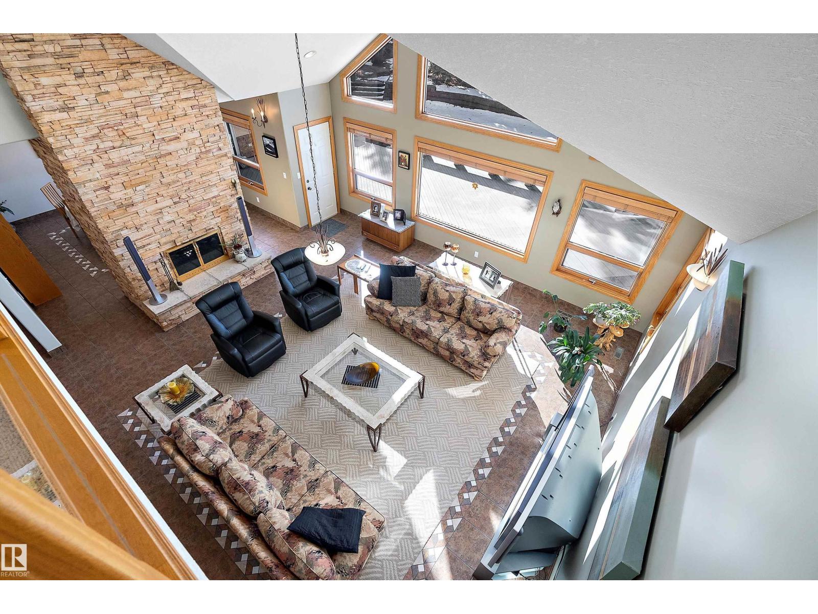 Welcome to a piece of paradise where land and lake come together! Just steps away, the lake calls to waterfront fun, pier and boat mooring. Beautiful backyard and deck exposure to the south of this home is where you’ll enjoy open space for those peaceful family days of game playing and nature watching experiences. Both worlds come together for a lakeside lifestyle you won’t want to miss! Inside, the living room has vaulted ceilings, and a full height two sided stone fireplace. The Primary bedroom has a 5 pc ensuite, walk-in closet, electric fireplace, and a patio door to the back composite deck. The exercise room has an indoor hot tub, and built in sauna. Another bedroom, 4 pc bath, 2 pc bath, and laundry room conclude the main level. The upper level hosts two bedrooms, 5 pc bath, den with a wet bar, and patio overlooking the landscaped yard. The basement has two bedrooms and a large family room with a gas fireplace. The finished garage has in-floor heat! This property must be appreciated in person! (id:63190)