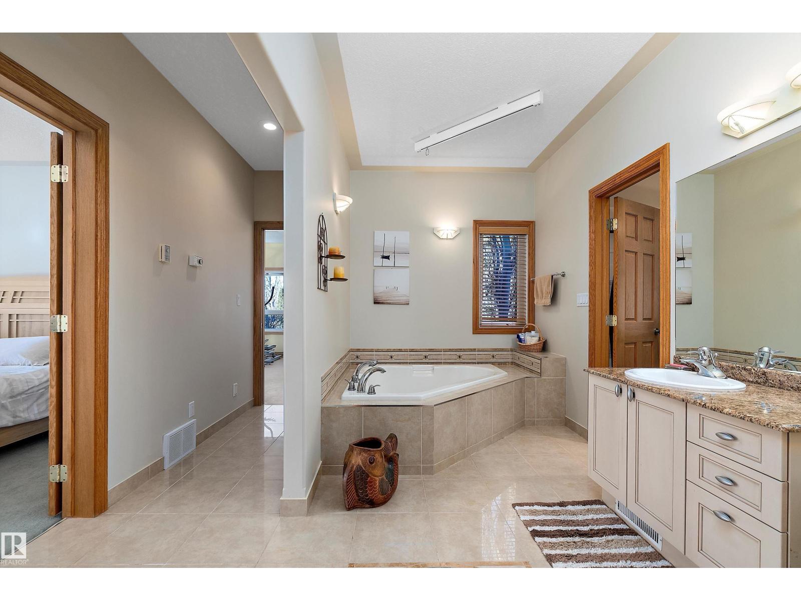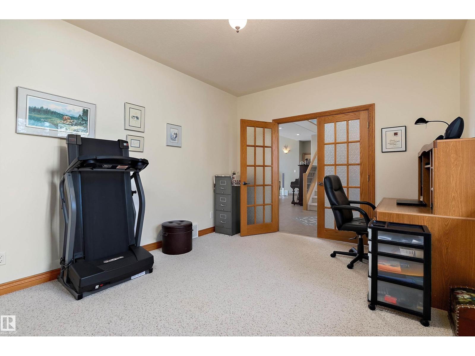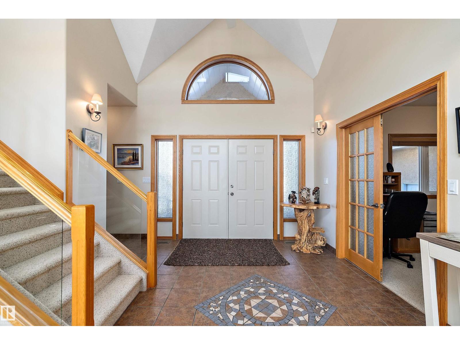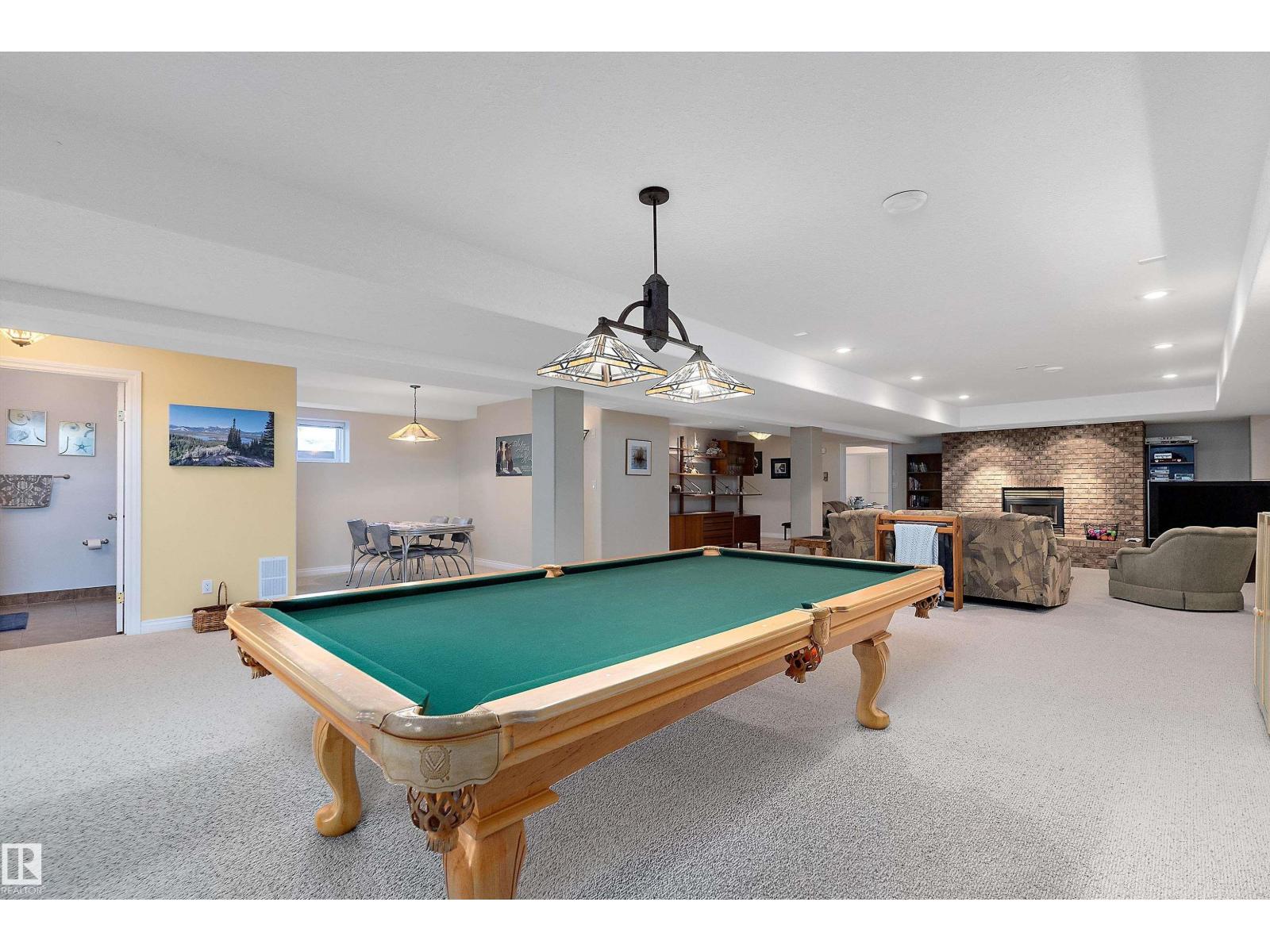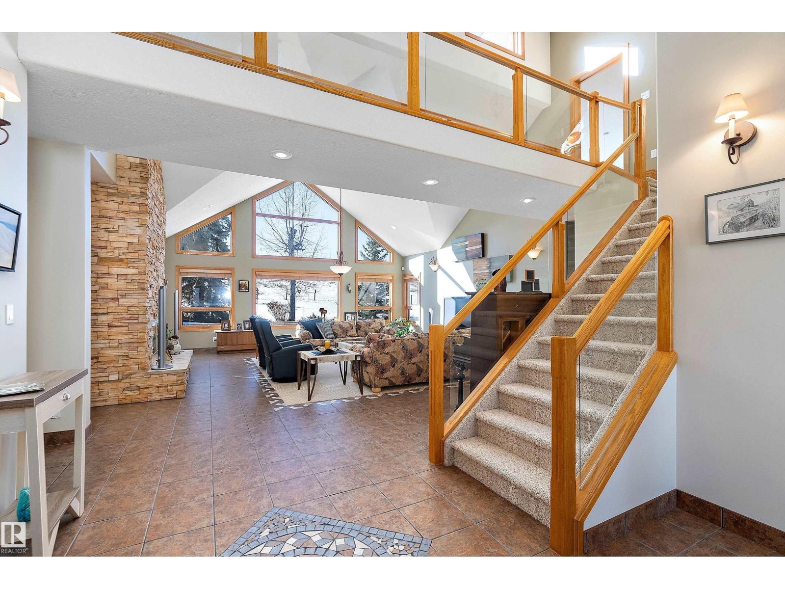 Welcome to a piece of paradise where land and lake come together! Just steps away, the lake calls to waterfront fun, pier and boat mooring. Beautiful backyard and deck exposure to the south of this home is where you’ll enjoy open space for those peaceful family days of game playing and nature watching experiences. Both worlds come together for a lakeside lifestyle you won’t want to miss! Inside, the living room has vaulted ceilings, and a full height two sided stone fireplace. The Primary bedroom has a 5 pc ensuite, walk-in closet, electric fireplace, and a patio door to the back composite deck. The exercise room has an indoor hot tub, and built in sauna. Another bedroom, 4 pc bath, 2 pc bath, and laundry room conclude the main level. The upper level hosts two bedrooms, 5 pc bath, den with a wet bar, and patio overlooking the landscaped yard. The basement has two bedrooms and a large family room with a gas fireplace. The finished garage has in-floor heat! This property must be appreciated in person! (id:63190)