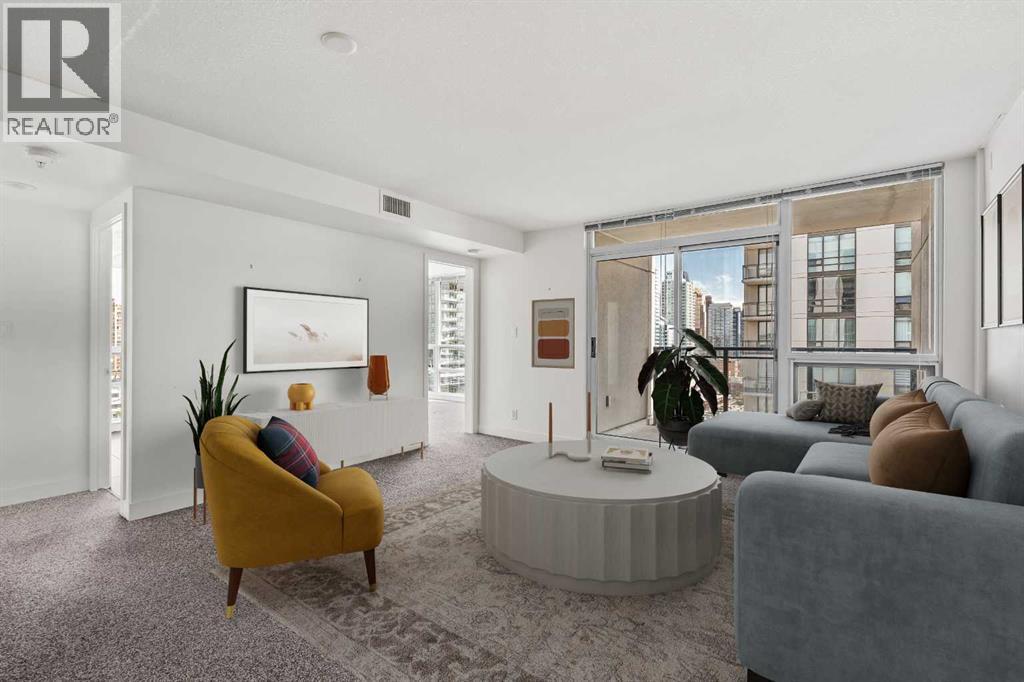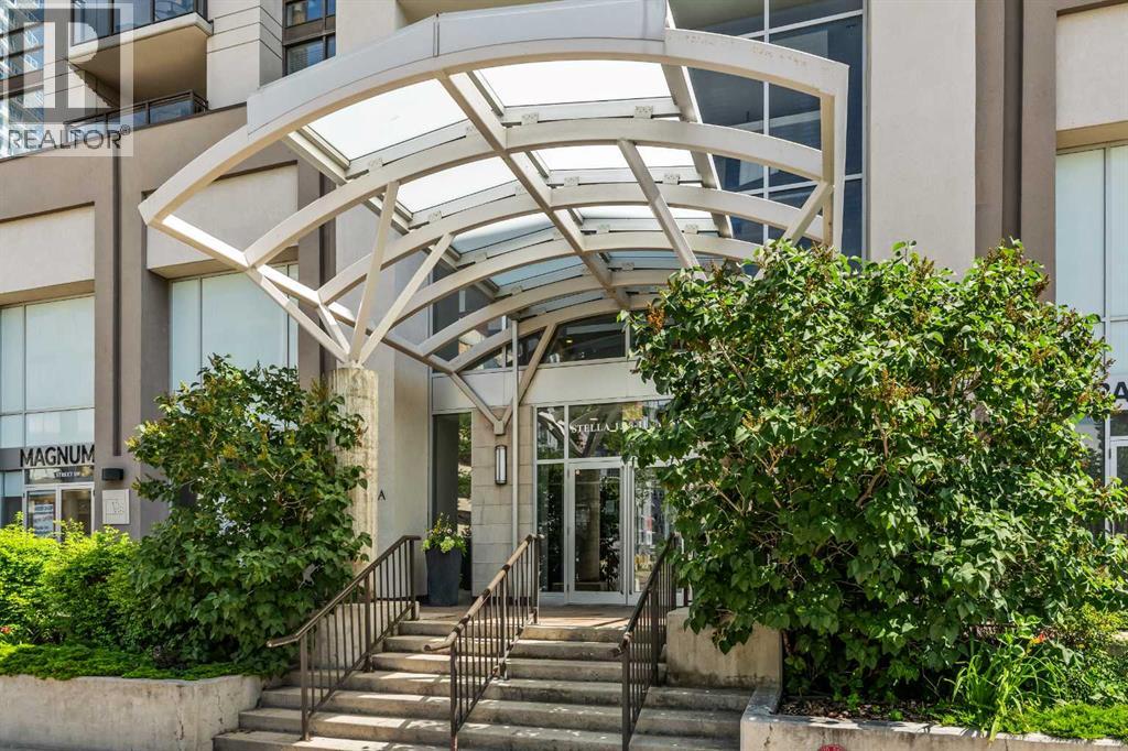 Gorgeous downtown views and maintenance-free urban living await in this sophisticated 2 bedroom end unit in the amenity-rich Stella Building. Located across from historic Connaught School, down the street from Co-op and mere steps to Calgary’s premier entertainment district with nightlife, dining, pubs, diverse shops and much more right at your doorstep. The open floor plan immediately impresses with seemingly endless natural light, sweeping downtown views and a modern, yet comfortable design. Culinary adventures are inspired in the neutral kitchen boasting granite countertops, stainless steel appliances and sleek full-height cabinets. Centring the open concept space is the dining room with clear sightlines promoting unobstructed conversations. Floor-to-ceiling glass in the living room showcases those stunning views while your time is spent relaxing. Host summer barbeques on the spacious balcony with the big city lights as the breathtaking backdrop. The spectacular views continue into the primary oasis with oversized, full-height windows to capture the view, a large walk-in closet and access to the well appointed 4-piece bathroom. The second bedroom is nearly as indulgent with a full-height window framing unbeatable views and an abundance of sunshine perfect for guests or an office and is conveniently situated near the 4-piece bathroom. In-suite laundry, titled parkade parking and a separate storage locker add to your comfort and convenience. This unbeatable location is an easy walk or bike ride to downtown and the river or stroll along 17th Ave taking in the variety of shops, cafés and award-winning restaurants then come home to a safe and quiet building. There’s nothing left to do but move right in! (id:63190)