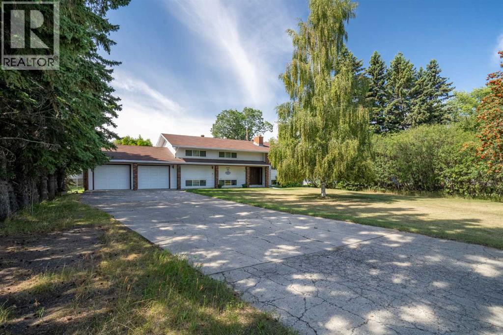 Discover the epitome of tranquil, spacious living with this stunning acreage in the charming town of Olds, Alberta. This beautifully maintained property offers the perfect retreat, blending serene rural living with convenient proximity to all the amenities Olds has to offer.The home is thoughtfully updated and well-appointed, featuring a new roof installed in 2012, new windows and doors added in 2014, and a brand-new hot water tank just this year. A modern dishwasher, installed in 2018, complements the well-designed kitchen, while efficient hot water heating ensures comfort throughout the year. The main floor laundry adds practical convenience, making daily tasks a breeze.Step inside to find a living space characterized by warmth and elegance. The living room showcases stunning brick masonry, providing a striking focal point and a cozy atmosphere. Two fireplaces add charm, though they have not been used by the current owners for some time (sold as-is). The expansive primary bedroom is a private sanctuary, complete with his and hers closets and a luxurious ensuite bathroom. The home offers three additional bedrooms on the upper level and two more in the basement, providing ample space for family and guests.The basement is also a standout feature, boasting a massive recreation room where you can enjoy leisure activities with an included pool table and accessories. Storage is plentiful throughout the home, ensuring all your belongings have a place.Outside, the property truly shines with its generous piece of land. There's ample space for outdoor activities, from running and playing to hosting large family reunions and gatherings. The yard is adorned with huge, mature trees in both the front and back, enhancing privacy and adding to the property's natural beauty. Included in the sale are three sheds, a delightful playhouse, and a greenhouse, providing endless possibilities for hobbies and storage.Experience peaceful living with incredible neighbors in a locati on that remains close to everything you need. With numerous extras included to help you settle into your new home, this acreage is more than just a property—it's a lifestyle. Don't miss this exceptional opportunity to make this your new home. This is truly a must-see! (id:63190)