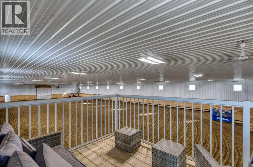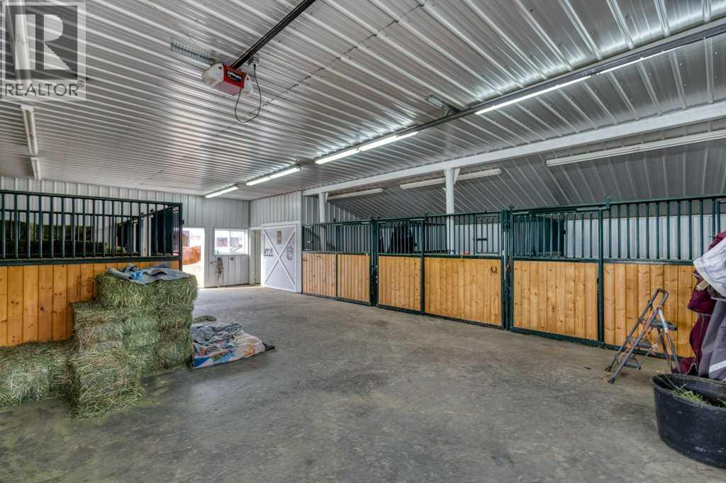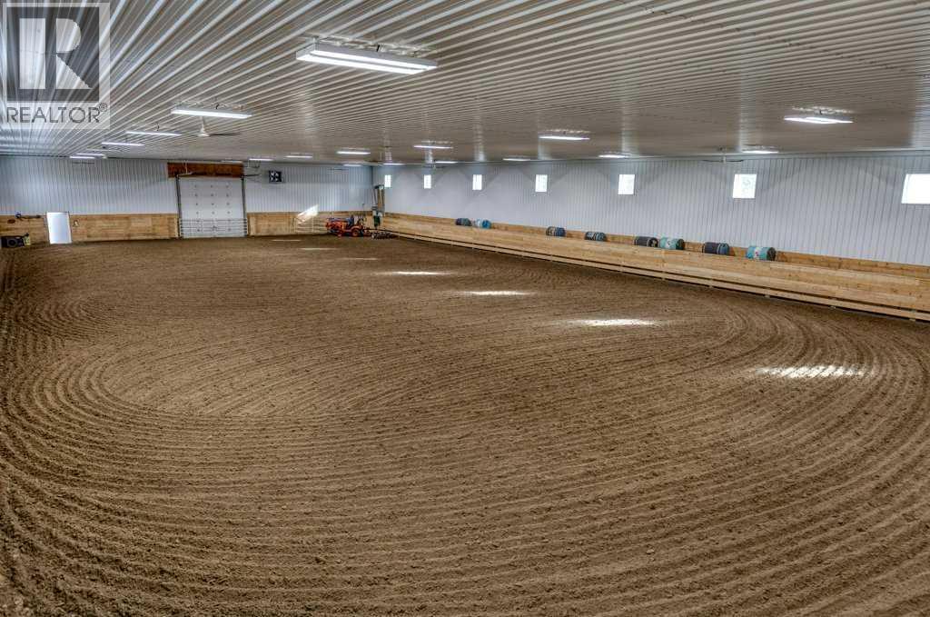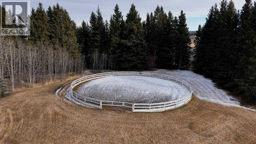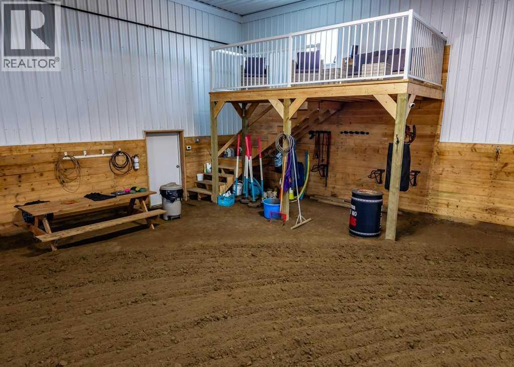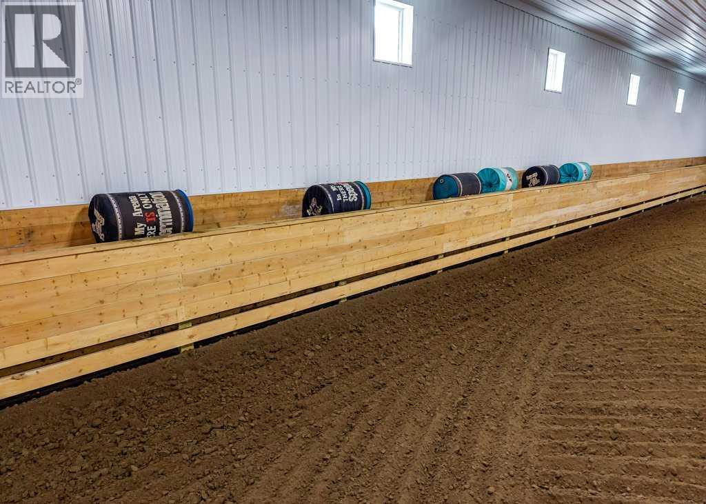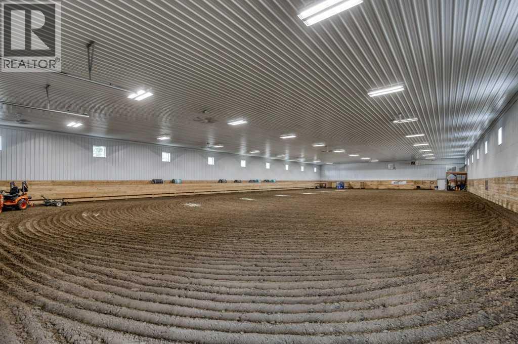 OPEN HOUSE SATURDAY, APRIL 25 2-4PM | WHISPERING GROVE RANCH | Where Natural Beauty Meets Equestrian ExcellenceSet against a breathtaking backdrop of mature forest & open pasture, this thoughtfully designed 43-acre equestrian estate just west of Bergen offers an exceptional blend of privacy, functionality, and natural beauty. The landscape features treed riding trails, practical paddocks, indoor & outdoor training facilities and a beautifully landscaped yard. A gated entrance creates a strong sense of arrival and provides security, opening to a well-planned yard with ample space for trailers, parking, and turnaround. At the heart of the property is the impressive 84’ x 180’ indoor heated riding arena with premium, dust-controlled footing. South-facing windows provide excellent natural light, while small and large overhead doors, a stripping chute, return alley, spacious tack-up area and spectator viewing deck make the setup ideal for roping and cowhorse work.The heated five-stall barn is equally well appointed with rubber-coated floors, rubber-matted stalls with safety-built walls, and a large tack room featuring a unique 360-degree revolving tack door for efficient daily use. Outdoor facilities include a professionally graded 110’ x 170’ outdoor arena beautifully sheltered by trees, a round pen, and six plank-fenced paddocks, one of which offers direct alley access to the indoor arena. The residence offers timeless appeal with a traditional layout and has been recently painted throughout. A wrap-around deck overlooks the grounds and includes a gas line for BBQs, while the lower patio—wired for a hot tub—creates a private outdoor retreat. The driveway and lower patio feature durable recycled rubber paving.Inside, the main floor includes a generous formal dining room, a spacious formal living room, and a charming south-facing sitting room with a wood-burning river rock fireplace—perfect for sun-filled morning coffees. The expansive kitchen features miles of oak c abinetry, a large island with breakfast bar, gas stove, and patio doors opening to the south deck. A boot room with main-floor laundry includes a GE Profile 2-in-1 washer/dryer combo and provides access to the oversized heated double attached garage. Upstairs are four bedrooms, including a massive primary suite. The fully developed basement with in-floor heat offers a media room, bar area, flex space for a gym or games room, and a fifth bedroom. Additional amenities include a 30’ x 56’ heated and insulated shop, RV gravel pad overlooking a picturesque pond, secluded she-shed and firepit area, and an impressive chicken coop with enclosed outdoor run, divided hen house, and automatic door. The property features a strong drilled well (5 GPM when last tested) and a whole-house reverse osmosis system. This is a rare opportunity to acquire a fully turn-key equestrian estate in an extraordinary property. (id:63190)