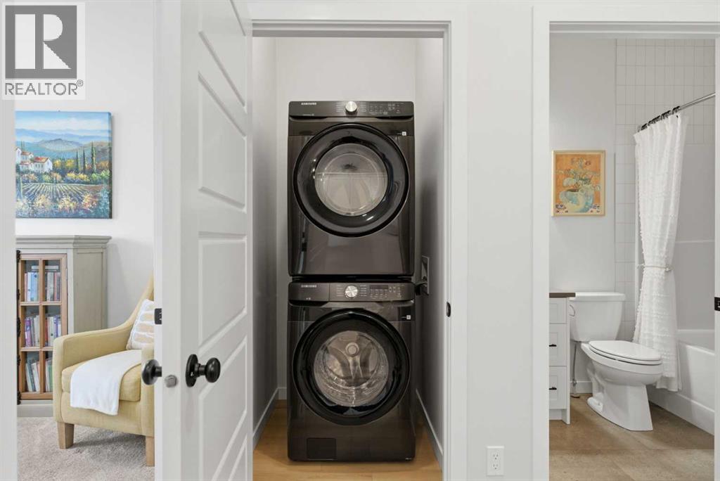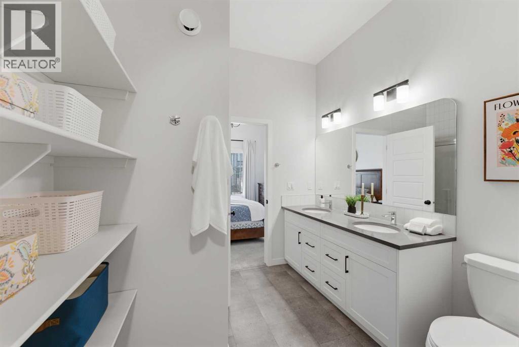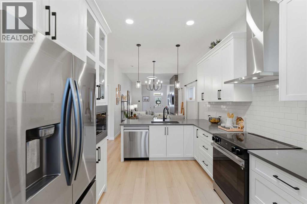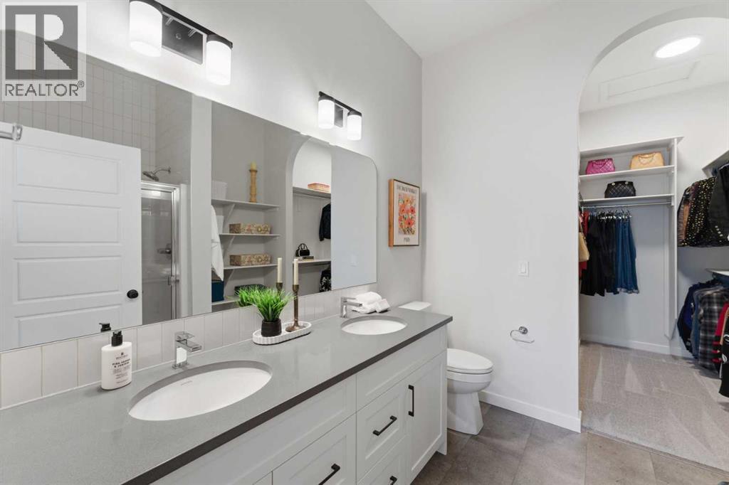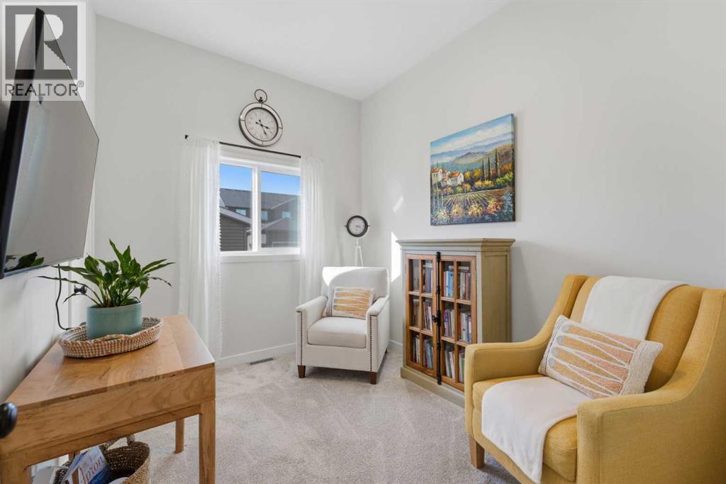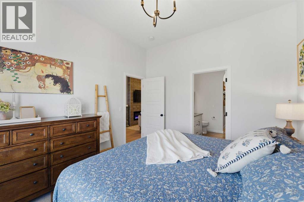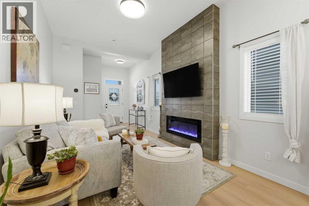 Welcome to an exceptional laned bungalow tucked into the award-winning community of Coopers Crossing in Airdrie where timeless design meets modern comfort in all the right ways.From the moment you arrive, this home makes a statement. Its charming laned configuration allows for a clean, welcoming front façade, while the rear double garage keeps the streetscape elegant and uncluttered. The low-maintenance landscaping frames the property beautifully, offering year-round curb appeal without demanding your weekends. Thoughtfully designed pathways and tidy greenery create a polished first impression that only gets better once you step inside.Open the front door and you’re greeted by soaring 10-foot ceilings on the main floor—an architectural feature that instantly enhances the sense of space and light. The expansive height amplifies every detail, from the modern lighting fixtures to the oversized windows that bathe the home in natural sunshine. The result is an airy, uplifting atmosphere that feels both luxurious and inviting.A Kitchen Designed to Impress. At the heart of the home lies a custom kitchen crafted for both everyday living and memorable entertaining. Beautiful cabinetry, sleek countertops, and thoughtful storage solutions combine style with functionality. A full set of appliances ensures you’re ready to host everything from intimate dinners to holiday gatherings. Whether you’re preparing a quiet morning coffee or a gourmet feast, this kitchen is as inspiring as it is practical.Above, a skylight draws in streams of natural light, adding warmth and brightness throughout the day. It’s the kind of detail that subtly transforms the mood of the entire living space—sunshine by day, soft stargazing ambiance by night.Comfortable & Cozy Living SpacesThe living area is anchored by a striking electric fireplace, offering both visual charm and effortless warmth. It’s the perfect focal point—ideal for cozy winter evenings or simply adding a touch of elegance to the ro om year-round.To ensure comfort in every season, the home is equipped with a central AC unit, keeping the interior refreshingly cool during Alberta’s warm summer months. Combined with the home’s thoughtful design, this creates an environment that feels just right, no matter the weather outside.Thoughtful Bedroom & Bathroom LayoutThis bungalow features 2 spacious bedrooms and 2 full bathrooms, all conveniently located on the main level for easy living.The primary suite is a private retreat—generous in size and designed for relaxation. Large windows provide natural light, while the adjoining full ensuite offers a spa-like experience with quality finishes and ample space to unwind.The second bedroom is perfect for guests, family, or even a stylish home office. A second full bathroom ensures comfort and privacy for everyone.Outdoor Living at Its FinestStep outside to discover a large rear deck—an extension of your living space that’s ideal for summer barbecues, morning coffee rituals, or quiet evenings (id:63190)