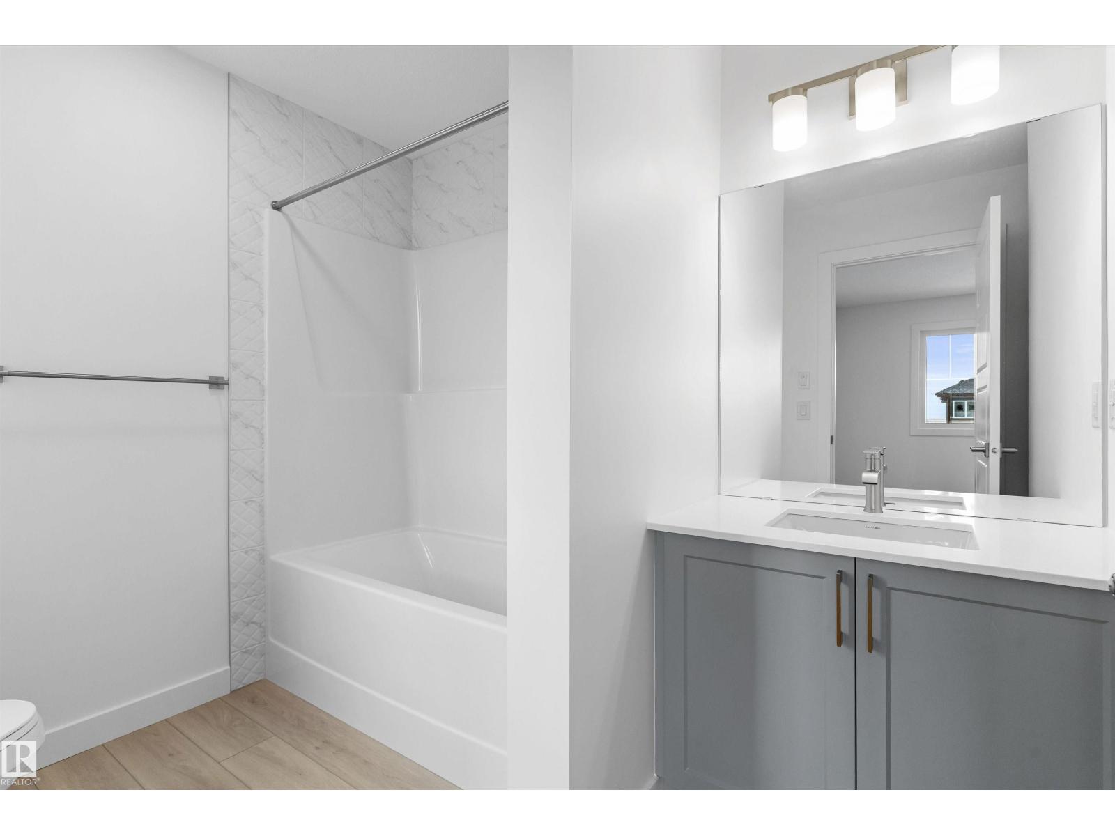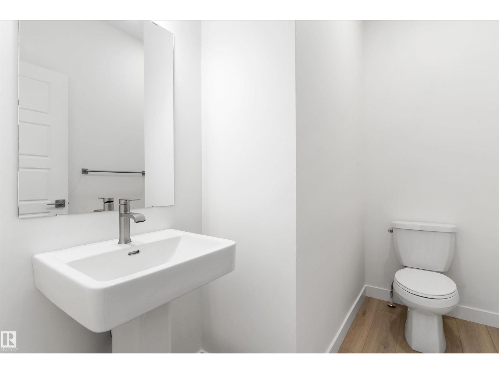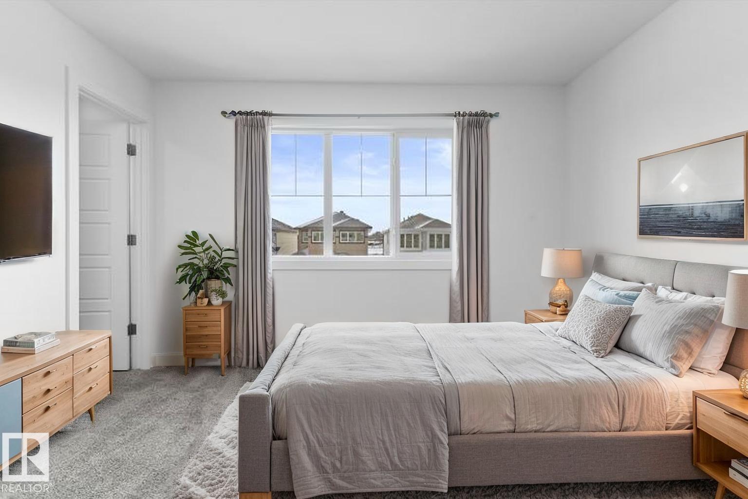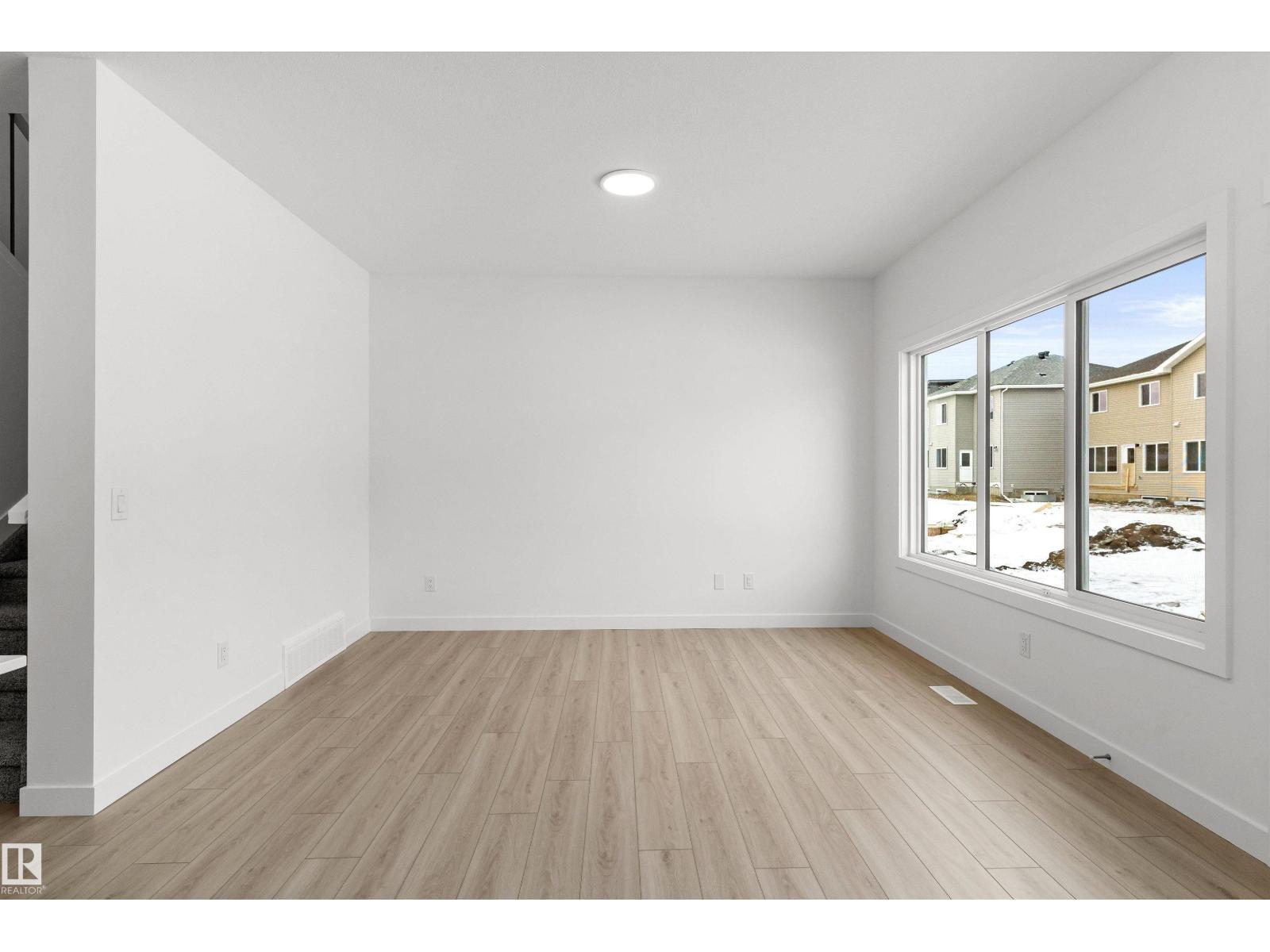 Built by Sterling Homes, this beautifully finished duplex in Aster offers bright, modern living in a Southeast Edmonton community close to schools, parks, and family-friendly amenities. Triple-pane windows and 9’ ceilings fill the main floor with natural light, creating a warm, welcoming feel. The kitchen features quartz countertops, a central island with seating, upgraded cabinetry, a corner pantry, full-height tile backsplash, and an over-the-range microwave—perfect for daily living and entertaining. Open dining and living areas feature large windows and a patio door leading to the future deck and backyard. Upstairs, a versatile bonus room adds extra space, while the primary suite includes a walk-in closet and 3-piece ensuite. Two additional bedrooms, a full bath, upper-floor laundry, luxury vinyl plank flooring, a separate side entrance, double attached garage with floor drain, and basement rough-ins complete this thoughtfully designed home. (id:63190)