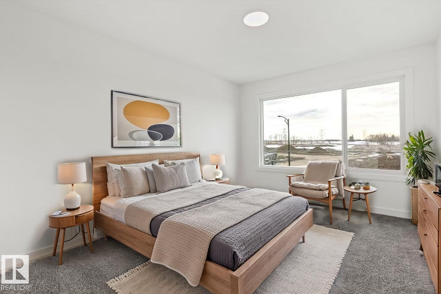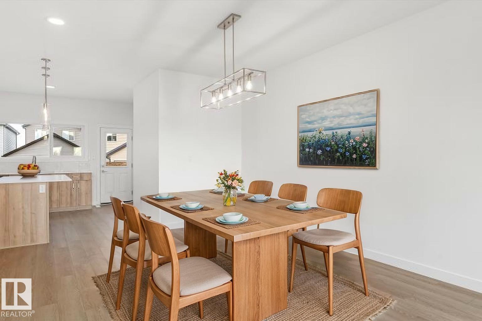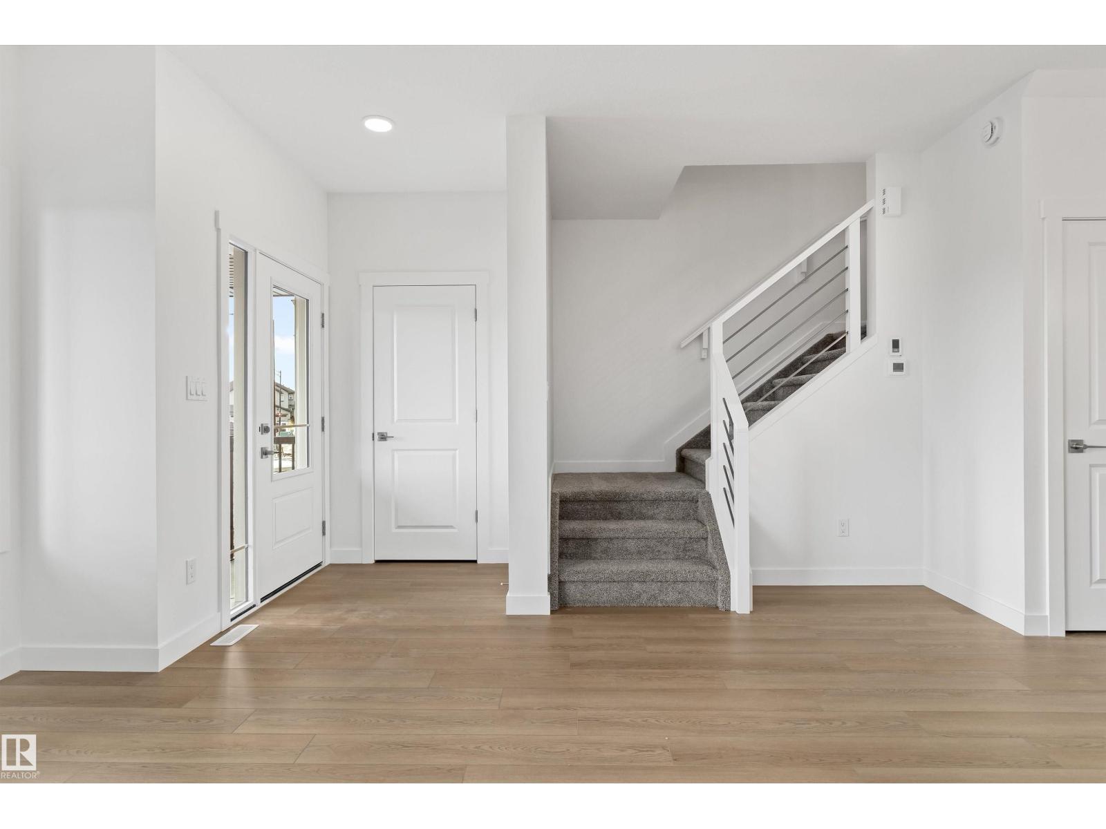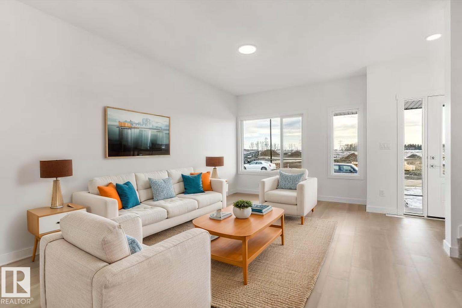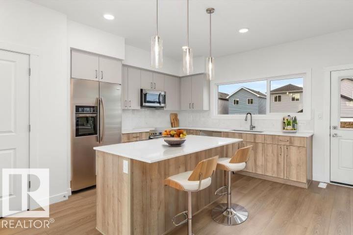 Built by Sterling Homes, this bright laned home in Aster offers a warm, functional layout in a vibrant southeast community near parks and schools. Triple pane windows and 9’ ceilings create an airy main floor with a sun-filled front living room. The rear kitchen overlooks the yard and features quartz counters, upgraded cabinetry, island with pendant lighting, and a large pantry. A tucked-away half bath and rear entry add convenience. Upstairs includes a loft, upper laundry, full bath, two bedrooms, and a primary suite with walk-in closet and 4-piece ensuite. Side entry and parking pad included. (id:63190)