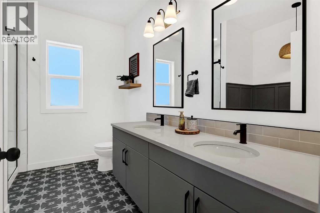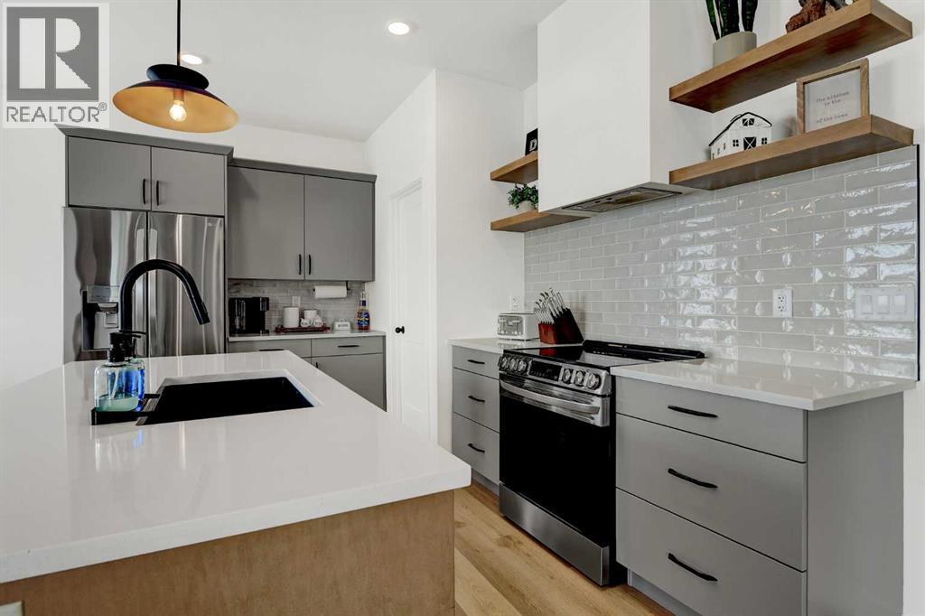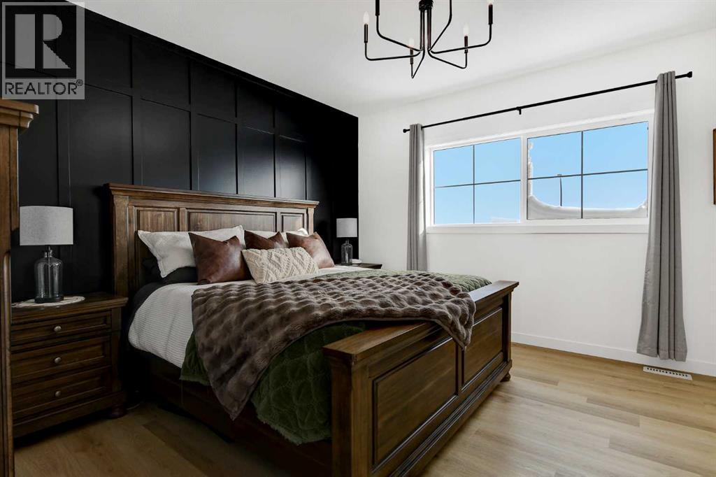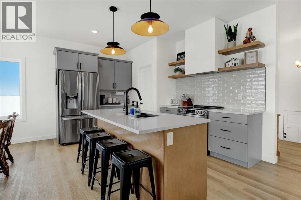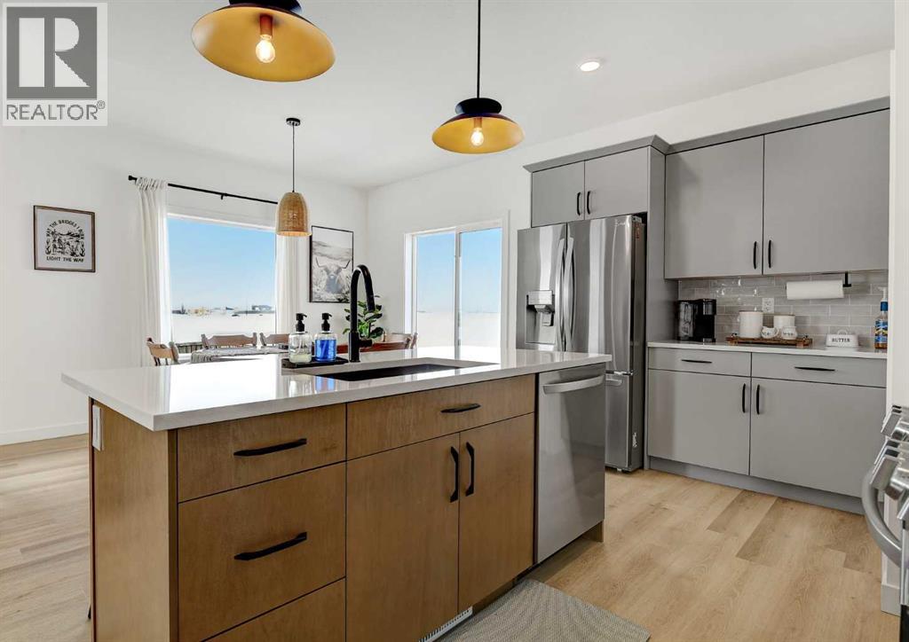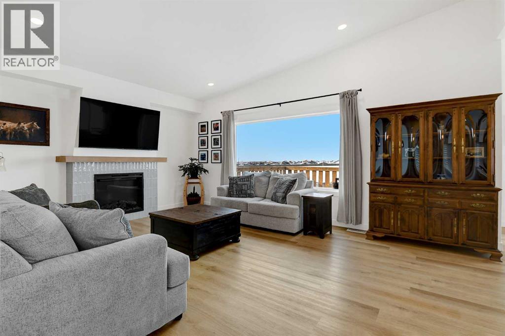 Better than new! Beautifully finished 5-bedroom, 3-bath executive Grande Built family home in the desirable Kensington Estates neighborhood, fully builder-developed inside, professionally landscaped, lightly lived in for just 16 months, steps from the pond and walking trails. This well-appointed property features quartz countertops, a cozy fireplace, and a spacious open-concept layout designed for everyday living and entertaining.The kitchen offers a large island, built-in range, walk-in pantry, and massive bright windows that fill the space with natural light all day long. The primary bedroom includes a generous walk-in closet with window and a private 5-piece ensuite featuring a tiled shower and deep soaker tub.Step outside to enjoy the fenced and landscaped yard with a large deck—perfect for relaxing or hosting guests. The yard also features a gravel pad and firepit area. With no neighbours to the back or side, you’ll enjoy added peace and privacy. The fully developed, builder-finished basement includes a dry bar with quartz counters and a fridge, creating an ideal entertainment space.Additional highlights include permanent Christmas lighting and smart home features with app control for year-round lighting—perfect for the holidays or playoff games with your favorite teams colors. The quality finishing in this home is evident throughout.The home also features a triple attached garage, offering ample space for vehicles and storage.A move-in-ready, better-than-new home that combines comfort, style, and location—perfect for families and professionals alike. (id:63190)