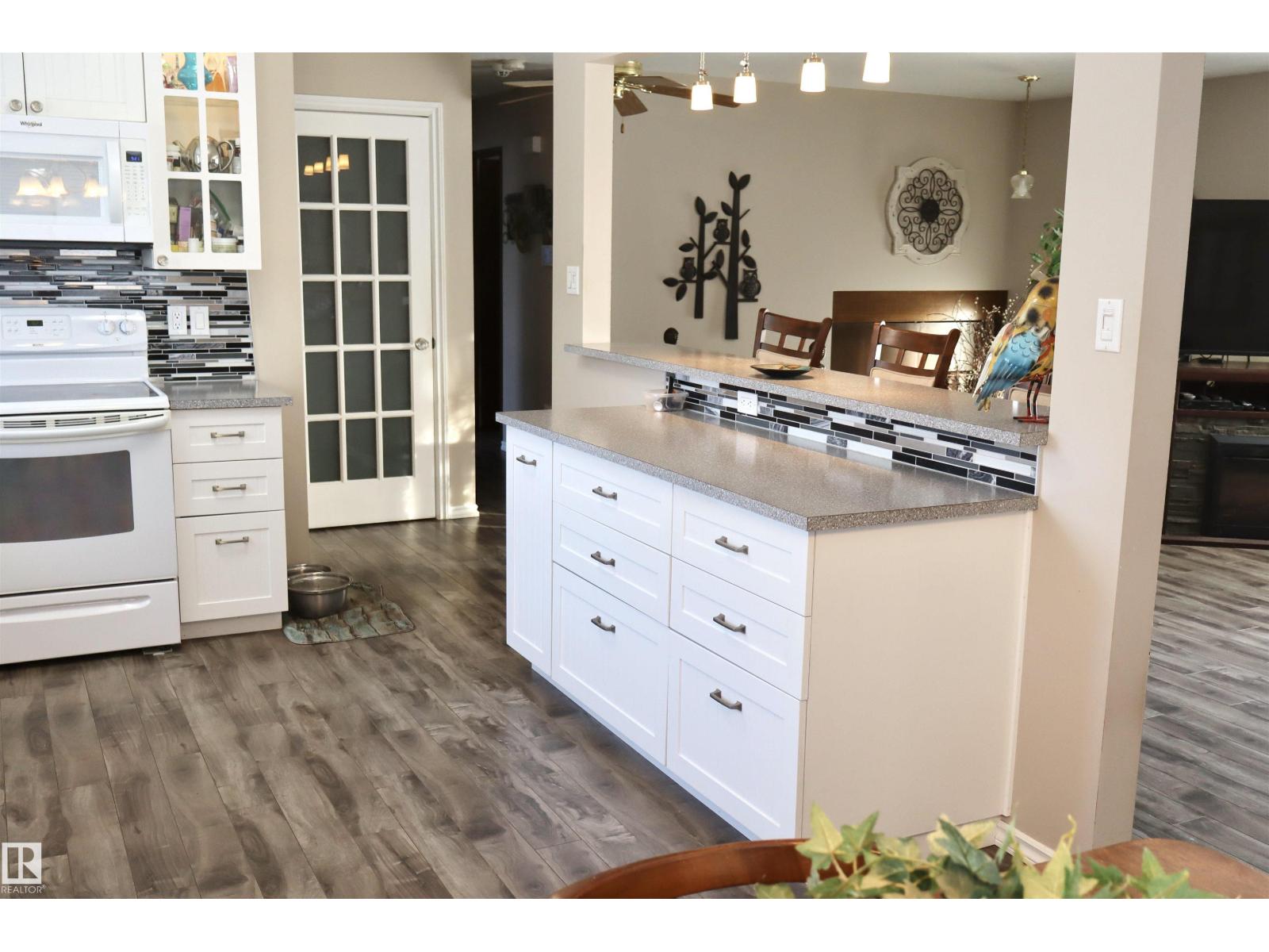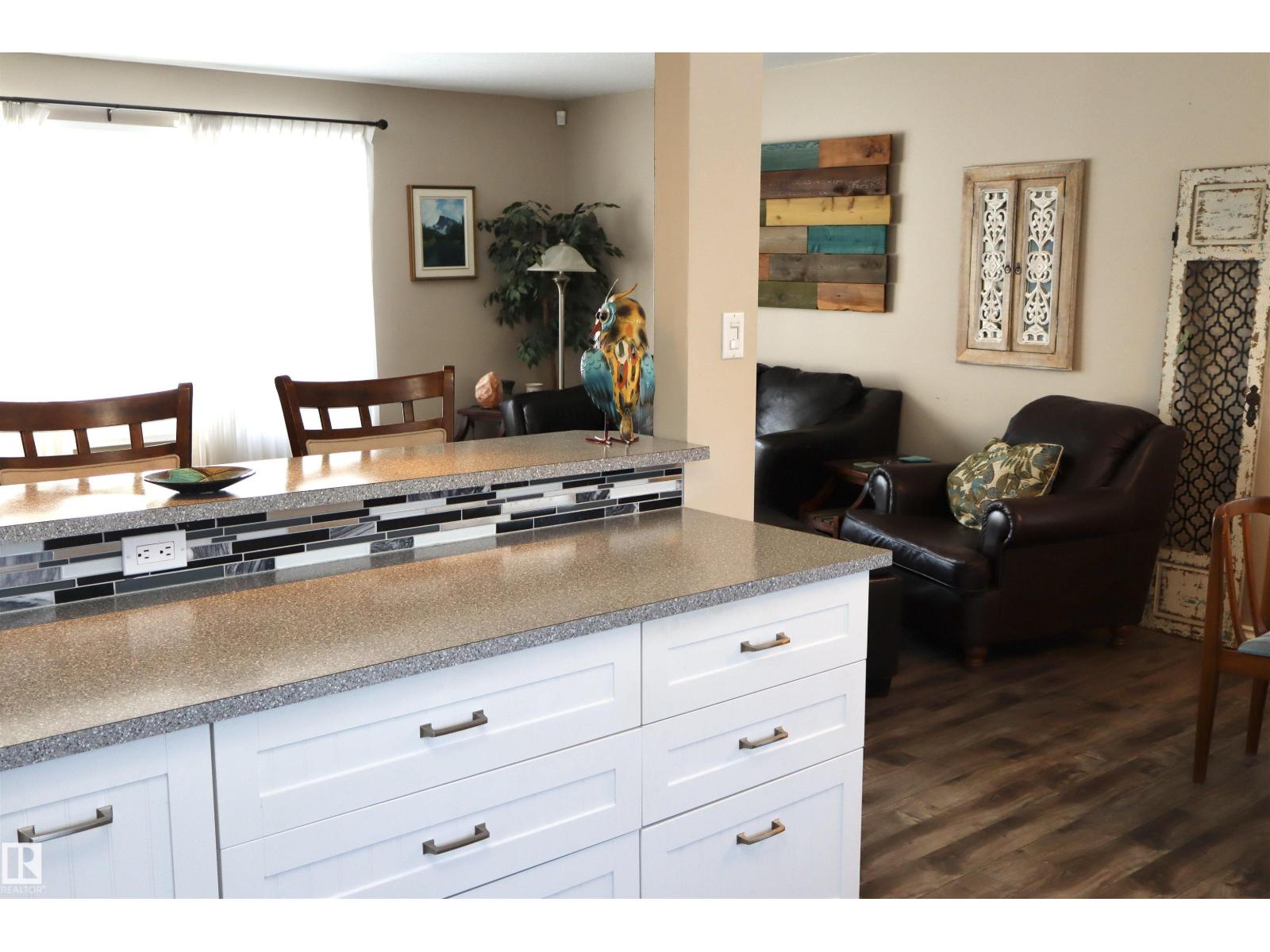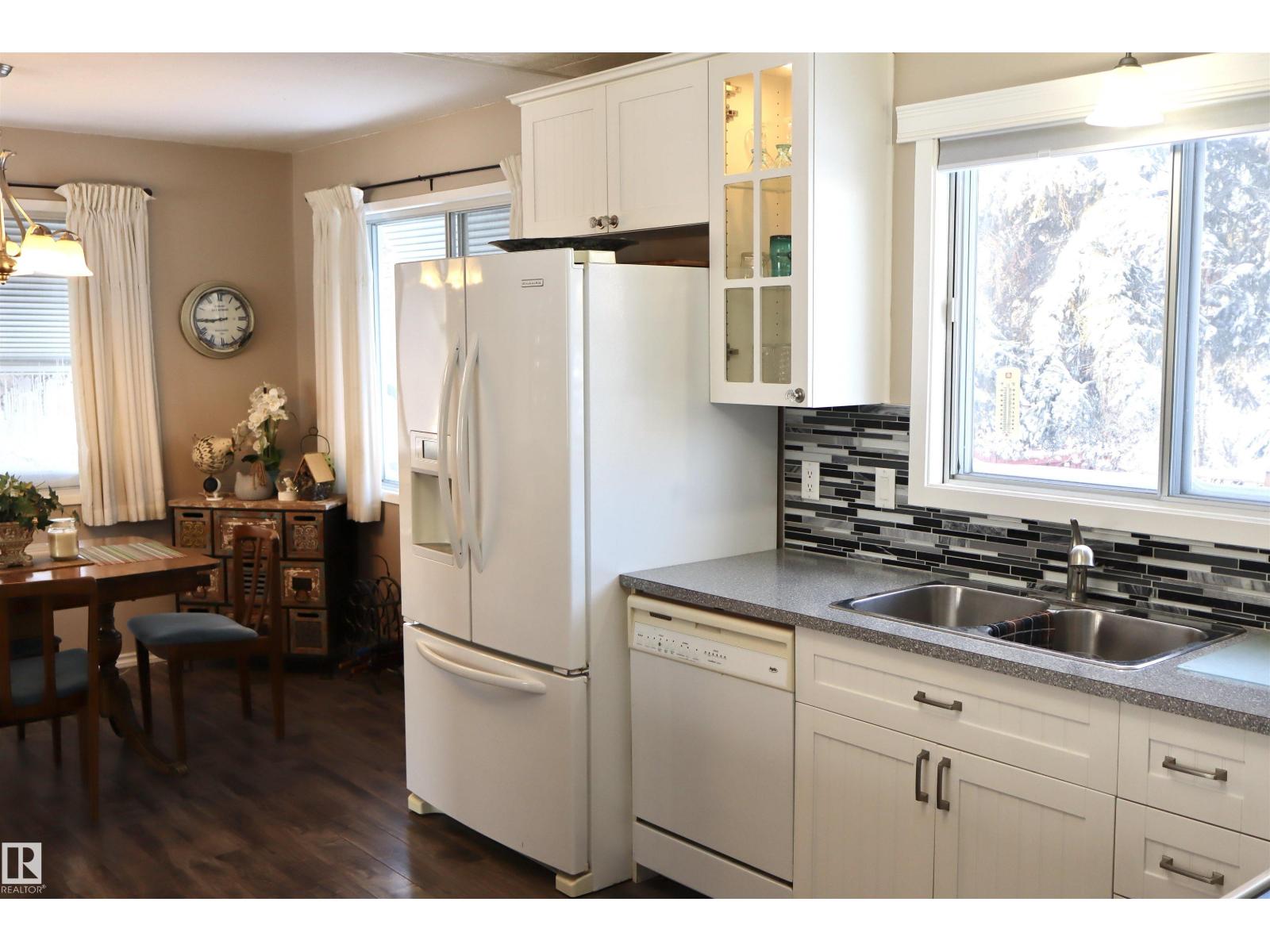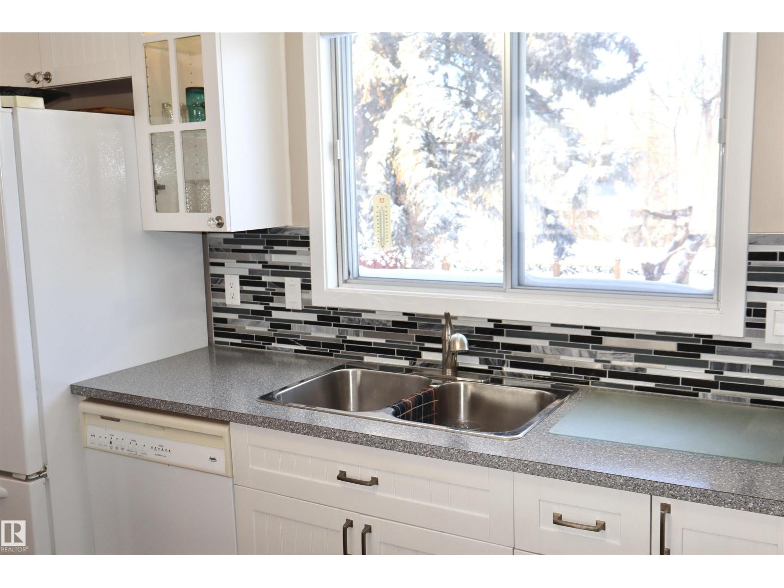 Welcome to this beautifully maintained bi-level home backing onto mature trees and scenic walking trails, offering privacy and a peaceful setting. Inside, you’ll find a stunning new kitchen with modern white cabinetry, sleek countertops, and stylish backsplash, perfectly designed for everyday living and entertaining.The upper level features two bedrooms and large family bathroom as well. Large windows fill the home with natural light, creating a warm and inviting atmosphere.The lower level has an abundance of potential and space! Step outside to an amazingly landscaped backyard retreat featuring a hot tub and cozy outdoor fireplace area—ideal for relaxing or hosting guests year-round. Completing the property is an oversized double detached garage with plenty of room for vehicles, storage, or workspace. A perfect blend of updated interior comfort and exceptional outdoor living in a sought-after location! A lovely home in a wonderful location and community! (id:63190)