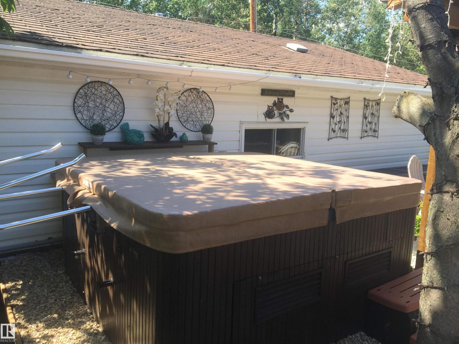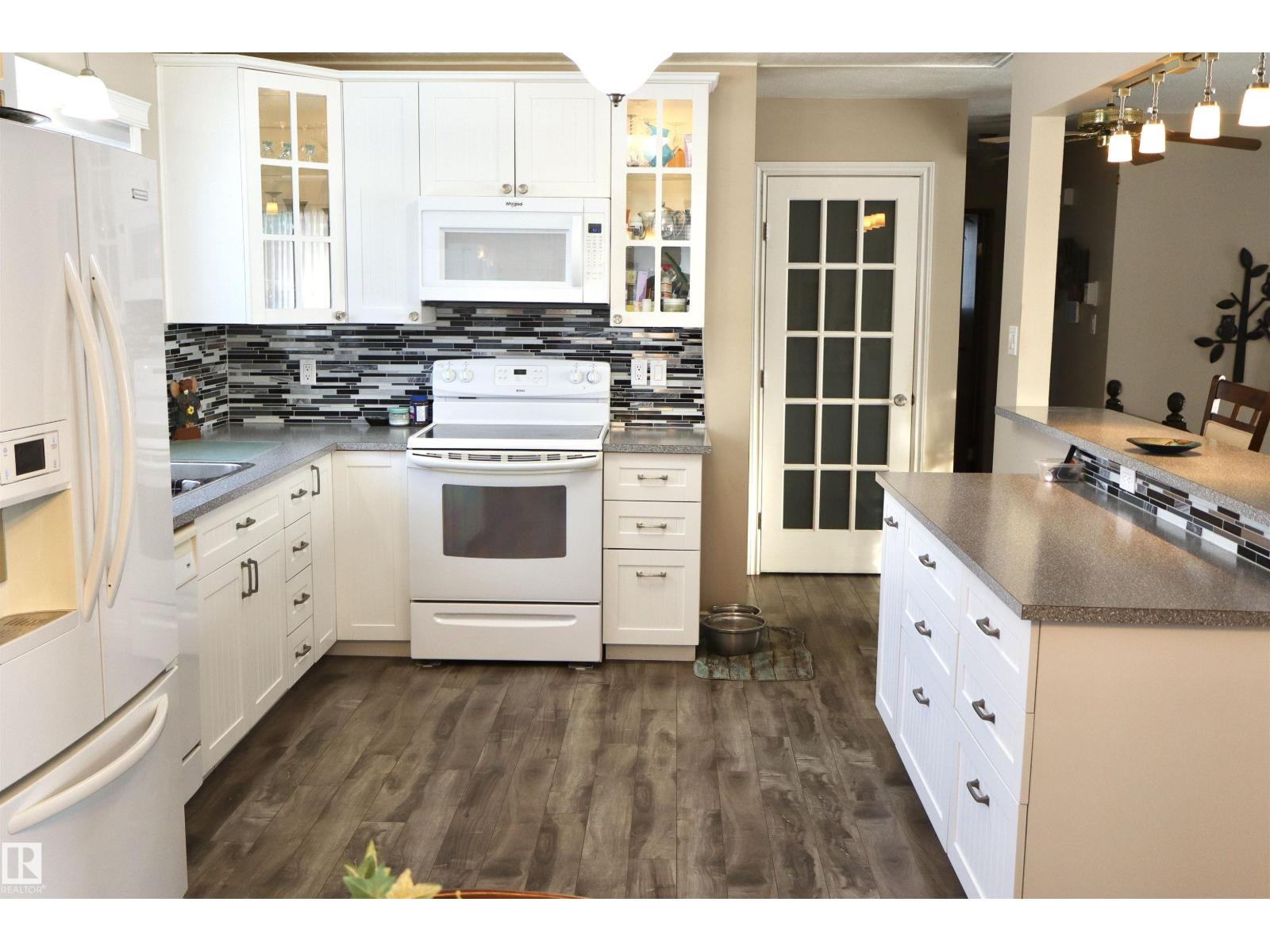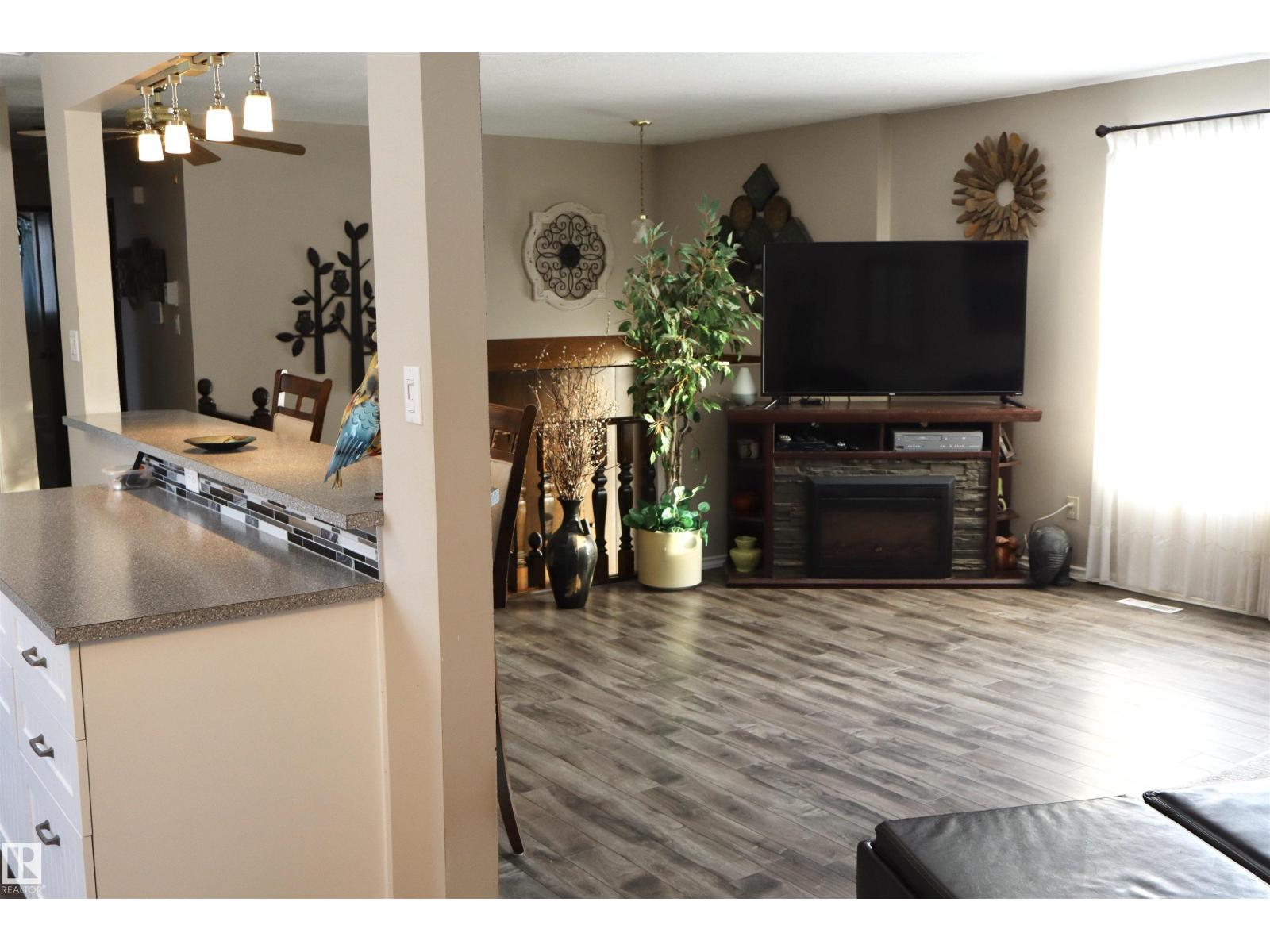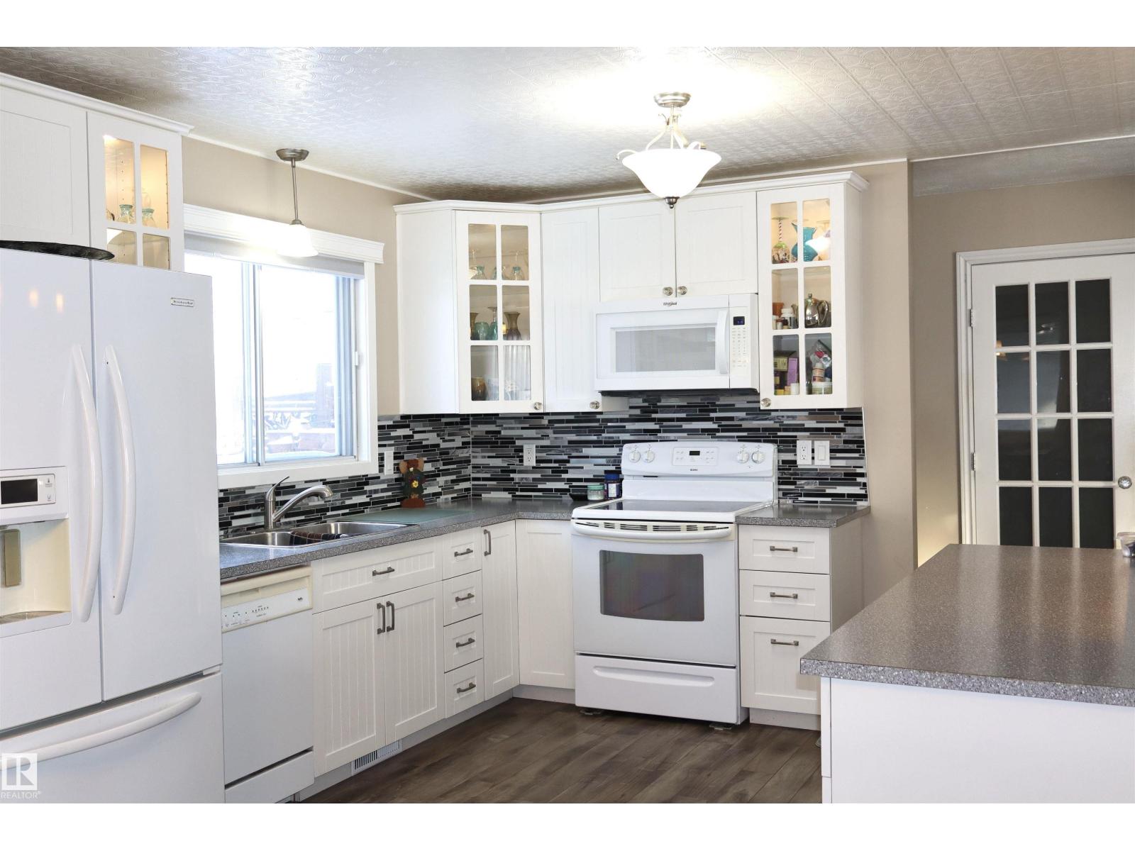 Welcome to this beautifully maintained bi-level home backing onto mature trees and scenic walking trails, offering privacy and a peaceful setting. Inside, you’ll find a stunning new kitchen with modern white cabinetry, sleek countertops, and stylish backsplash, perfectly designed for everyday living and entertaining.The upper level features two bedrooms and large family bathroom as well. Large windows fill the home with natural light, creating a warm and inviting atmosphere.The lower level has an abundance of potential and space! Step outside to an amazingly landscaped backyard retreat featuring a hot tub and cozy outdoor fireplace area—ideal for relaxing or hosting guests year-round. Completing the property is an oversized double detached garage with plenty of room for vehicles, storage, or workspace. A perfect blend of updated interior comfort and exceptional outdoor living in a sought-after location! A lovely home in a wonderful location and community! (id:63190)