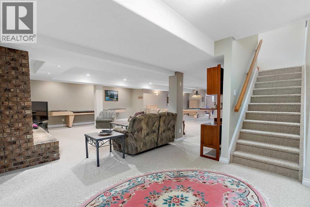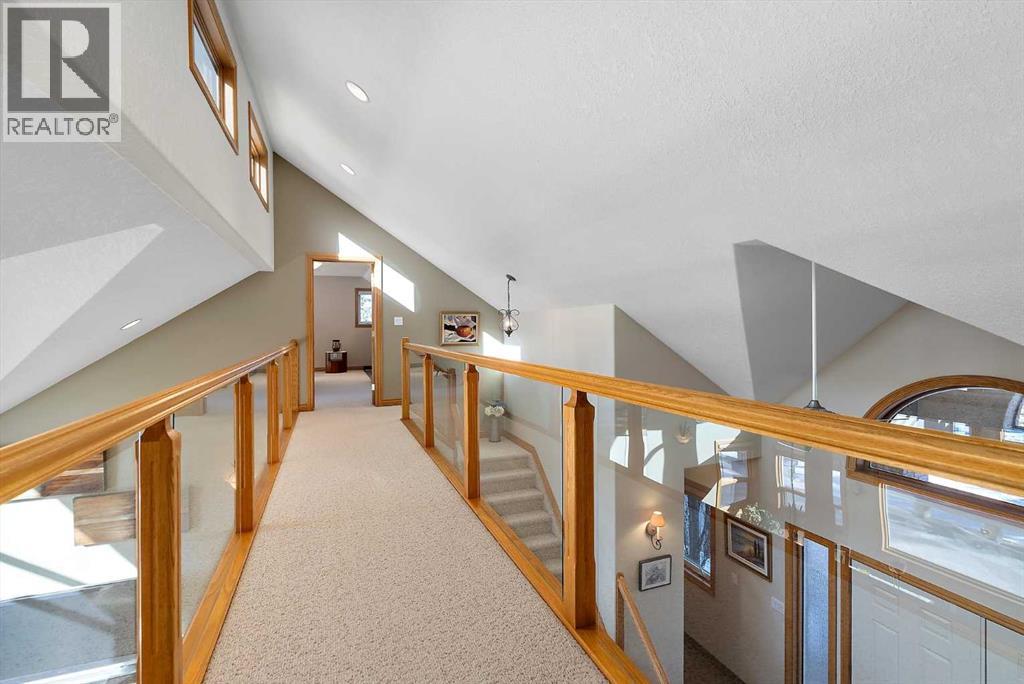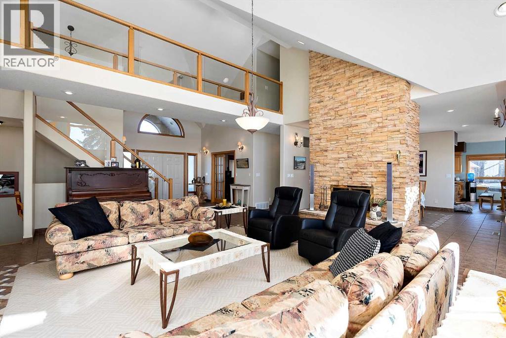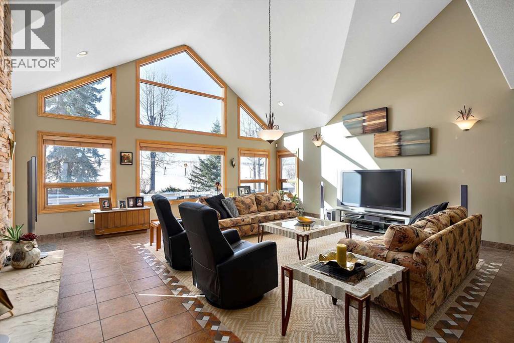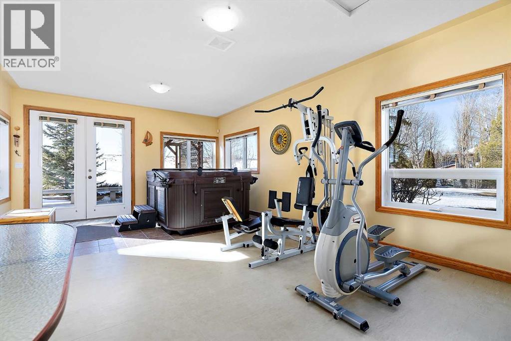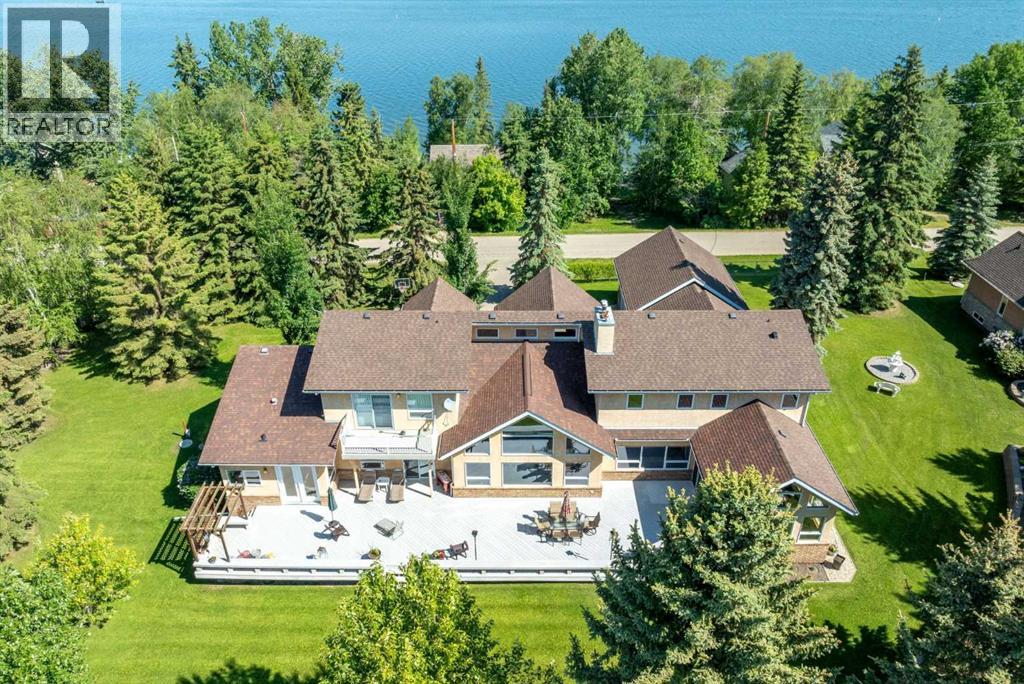 Welcome to a piece of paradise where land and lake come together! Just steps away, the lake calls to waterfront fun, pier and boat mooring. Beautiful backyard and deck exposure to the south of this home is where you’ll enjoy open space for those peaceful family days of game playing and nature watching experiences. Both worlds come together for a lakeside lifestyle you won’t want to miss! Inside, the living room has vaulted ceilings, and a full height two sided stone fireplace. The Primary bedroom has a 5 pc ensuite, walk-in closet, electric fireplace, and a patio door to the back composite deck. The exercise room has an indoor hot tub, and built in sauna. Another bedroom, 4 pc bath, 2 pc bath, and laundry room conclude the main level. The upper level hosts two bedrooms, 5 pc bath, den with a wet bar, and patio overlooking the landscaped yard. The basement has two bedrooms and a large family room with a gas fireplace. The finished garage has in-floor heat! This property must be appreciated in person! (id:63190)