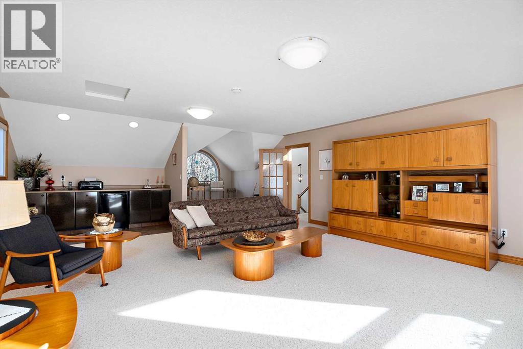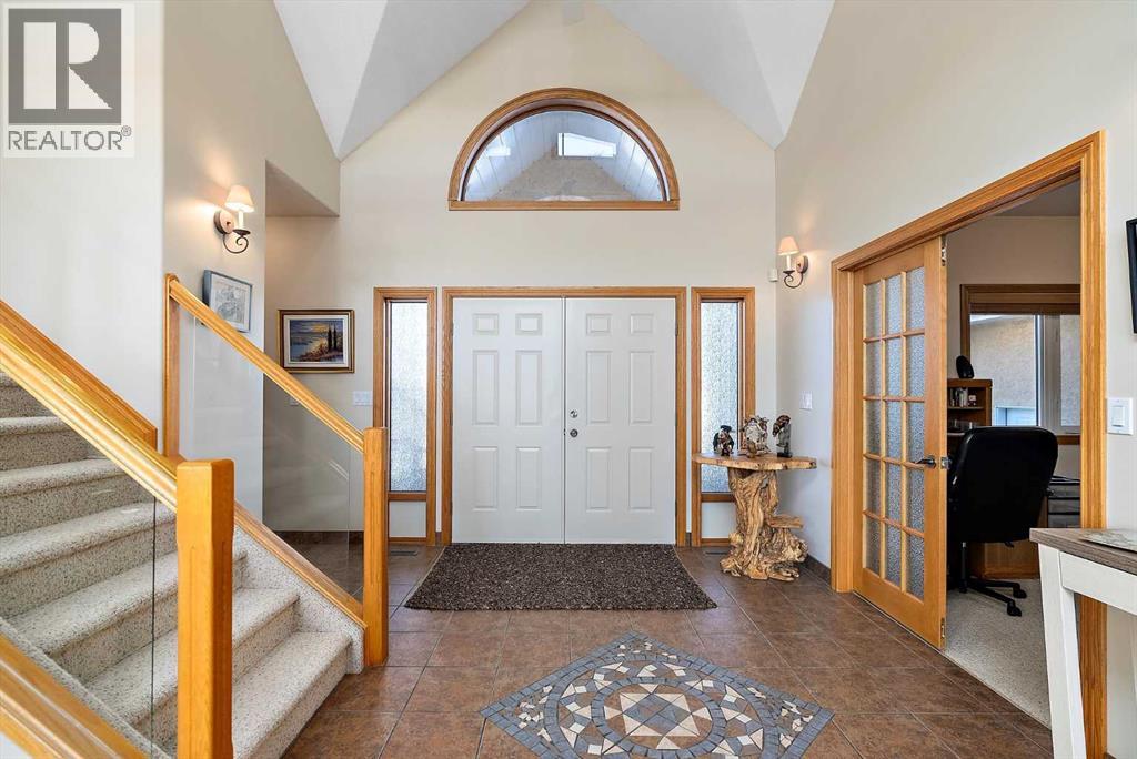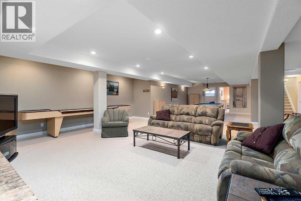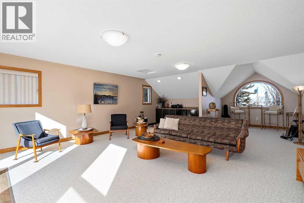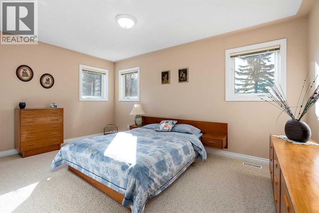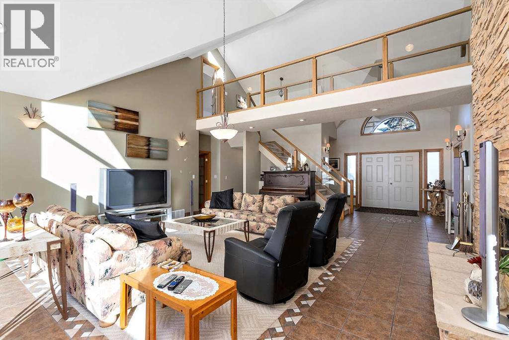 Welcome to a piece of paradise where land and lake come together! Just steps away, the lake calls to waterfront fun, pier and boat mooring. Beautiful backyard and deck exposure to the south of this home is where you’ll enjoy open space for those peaceful family days of game playing and nature watching experiences. Both worlds come together for a lakeside lifestyle you won’t want to miss! Inside, the living room has vaulted ceilings, and a full height two sided stone fireplace. The Primary bedroom has a 5 pc ensuite, walk-in closet, electric fireplace, and a patio door to the back composite deck. The exercise room has an indoor hot tub, and built in sauna. Another bedroom, 4 pc bath, 2 pc bath, and laundry room conclude the main level. The upper level hosts two bedrooms, 5 pc bath, den with a wet bar, and patio overlooking the landscaped yard. The basement has two bedrooms and a large family room with a gas fireplace. The finished garage has in-floor heat! This property must be appreciated in person! (id:63190)