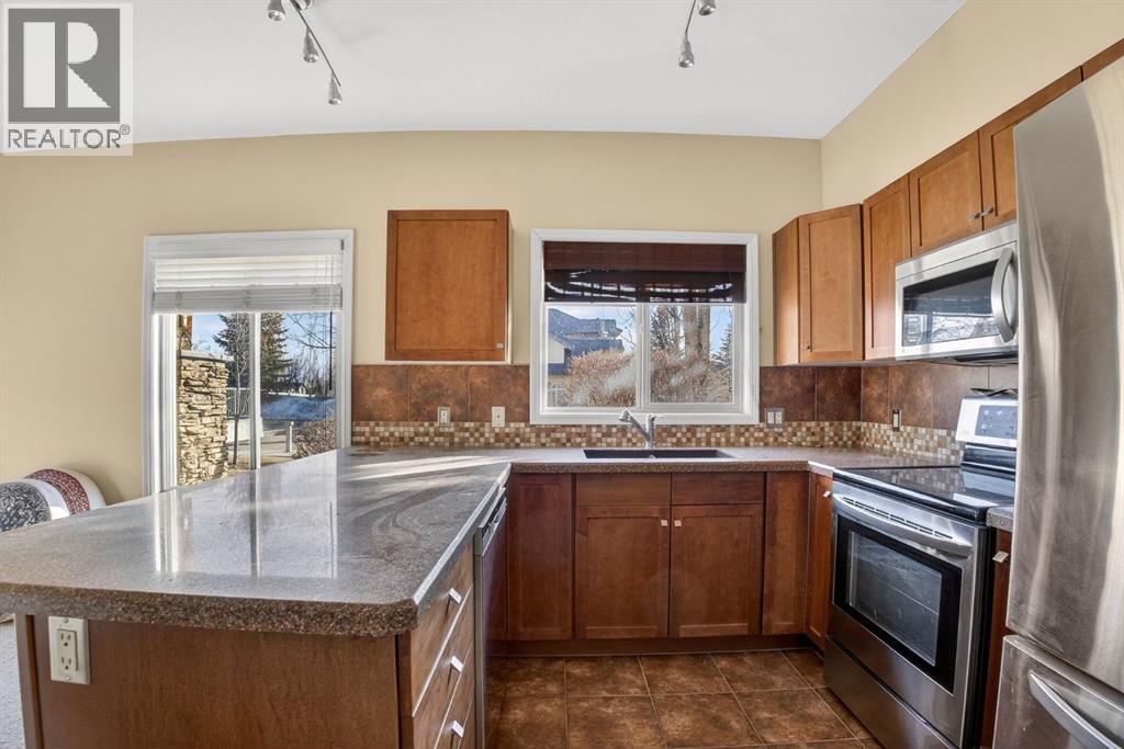 Welcome to this ground-floor corner unit in the heart of Okotoks, offering the perfect blend of comfort, convenience, and lifestyle. With 921 sq ft of thoughtfully designed living space, 9’ ceilings, and an abundance of natural light, this 2-bedroom condo feels open, bright, and inviting from the moment you step inside. The functional layout seamlessly connects the kitchen, dining, and living areas, creating an ideal space for both everyday living and entertaining. The kitchen features stainless steel appliances, ample cabinetry, and generous counter space, making meal prep effortless. Large windows enhance the airy feel while the corner-unit location provides added privacy and extra light. The spacious primary bedroom offers plenty of room to unwind, while the second bedroom is perfect for guests, a home office, or additional family space. Enjoy the convenience of in-suite laundry and ample storage throughout. One of the standout features of this home is the rare offering of TWO titled parking stalls — a valuable bonus for couples or guests. Step outside and embrace the lifestyle that makes this community so desirable. With lake access included, you can enjoy year-round recreation right at your doorstep. The building’s amenities further elevate your living experience, featuring a fully equipped gym, steam room, hot tub, and an entertainment/lounge area perfect for hosting or relaxing.Whether you’re a first-time buyer, downsizer, or investor, this move-in ready condo offers low-maintenance living in a vibrant, amenity-rich community close to shopping, dining, and scenic pathways. Condo living at its best — with space, style, and lifestyle all in one. (id:63190)