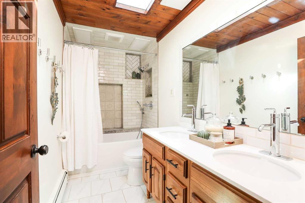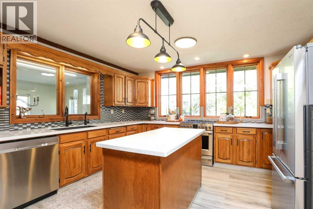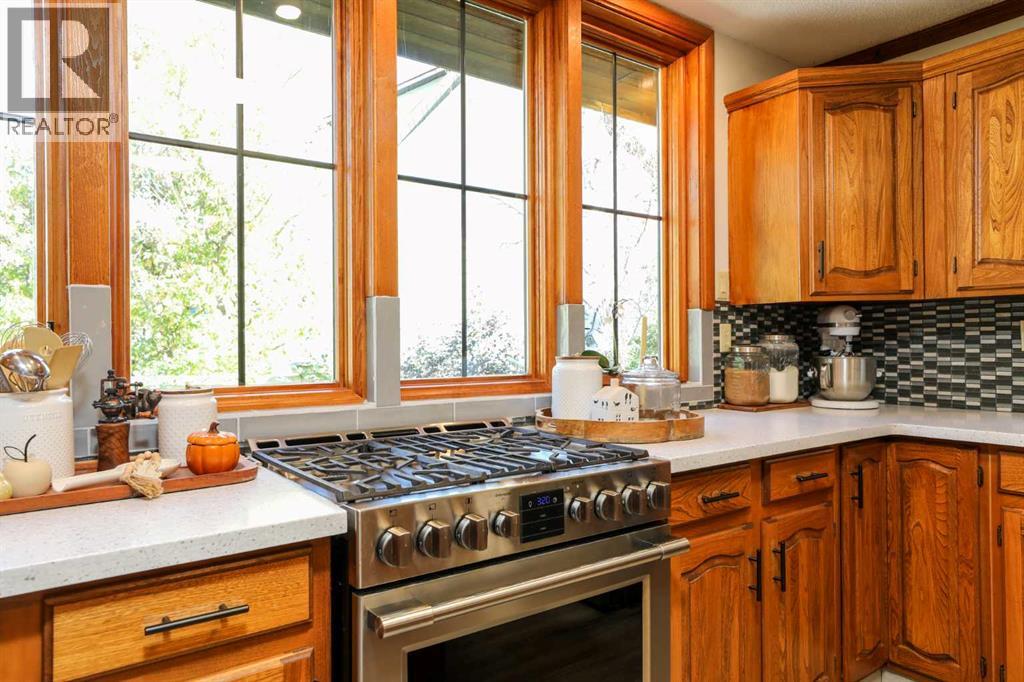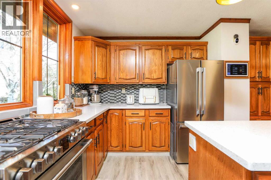 Discover a truly exceptional property offering the perfect blend of privacy, expansive living space, and an unparalleled location. Rarely does a home hit the market where the "invisible" details have been as cared for as the aesthetics. This nearly 3,000 sq ft residence has undergone a comprehensive structural and cosmetic overhaul, including a newer roof truss system, reinforced joists, improved insulation, and a complete electrical update. The heating system has been modernized with a high-efficiency radiant hot water setup featuring individual touchscreen zone controls, complemented by Split/Mini AC units for year-round climate perfection. Step inside the stunning 2-Storey foyer where where bespoke reclaimed fir accents set a tone of rustic elegance and high-end craftsmanship. The main level is designed for both grand entertaining and cozy family life. The massive updated kitchen is a chef's dream, boasting abundant cabinetry, sleek Corian countertops, modern appliances, and a central island. Four newly installed windows are perfectly situated to capture year-round morning sunrises, flooding the space with warm, natural light. The expansive dining room provides ample space for hosting large gatherings, and the adjacent sitting room is a cozy haven with a charming wood-burning fireplace. The true showstopper is the immense TV room, featuring dramatic 12-foot ceilings and oversized windows that flood the space with natural light and offer picturesque views of the park. This versatile room is ideal for a home theater, studio, or a vibrant playroom. Upstairs, the well-designed layout offers three spacious bedrooms, including a master suite with a 3pc ensuite. All bathrooms have been modernized with new fixtures, finishes, and improved ventilation. Outside, the property is secured by an attractive 7-foot stucco perimeter wall, ensuring your over 9,000 sq ft lot remains a silent sanctuary. For the buyer who demands both architectural beauty and mechanical excellence, this park-backing estate is unparalleled. Schedule your private showing today! (id:63190)