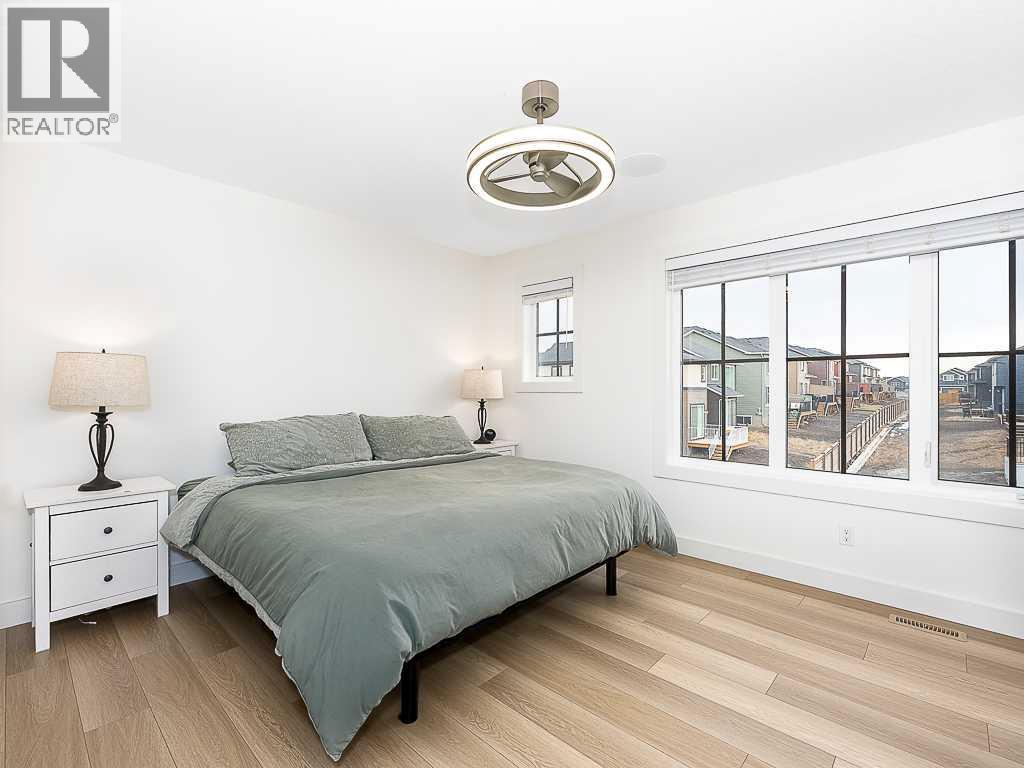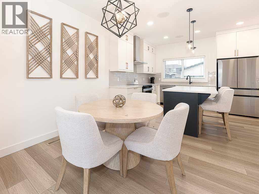 Beautifully upgraded single-family home by McKee Homes, combining modern style, comfort, and functionality. The bright main floor features a front living room with large windows, a spacious dining area, and a stunning rear kitchen with an island, quartz countertops, stainless steel appliances, and luxury vinyl plank flooring throughout. The open-concept layout creates a seamless flow, perfect for everyday living and entertaining. Upstairs offers three generous bedrooms, two full bathrooms, with the private primary suite offering a four-piece ensuite. Convenient upper-level laundry adds to the practical design, while the unfinished basement with a separate side entrance provides excellent future development potential. Step outside to a sunny south-facing deck and a fully fenced yard with a smart irrigation system. Gemstone lights wrap the home with soft, easy-maintenance lighting. The oversized detached garage features dual overhead doors and a 60-amp subpanel, ideal for car enthusiasts or hobbyists. Thoughtfully upgraded and move-in ready, this exceptional home in Airdrie perfectly balances modern design with everyday practicality. Book your private showing today! (id:63190)