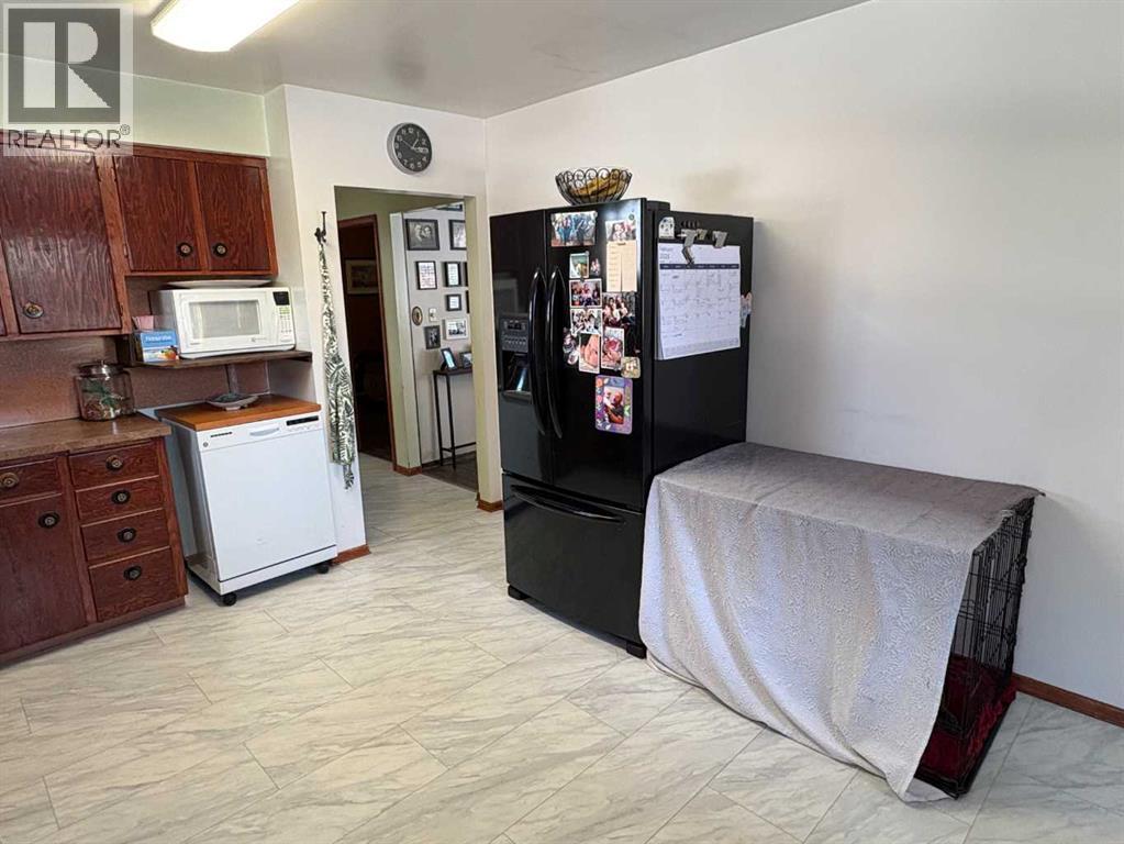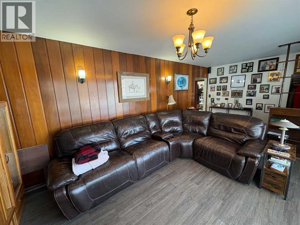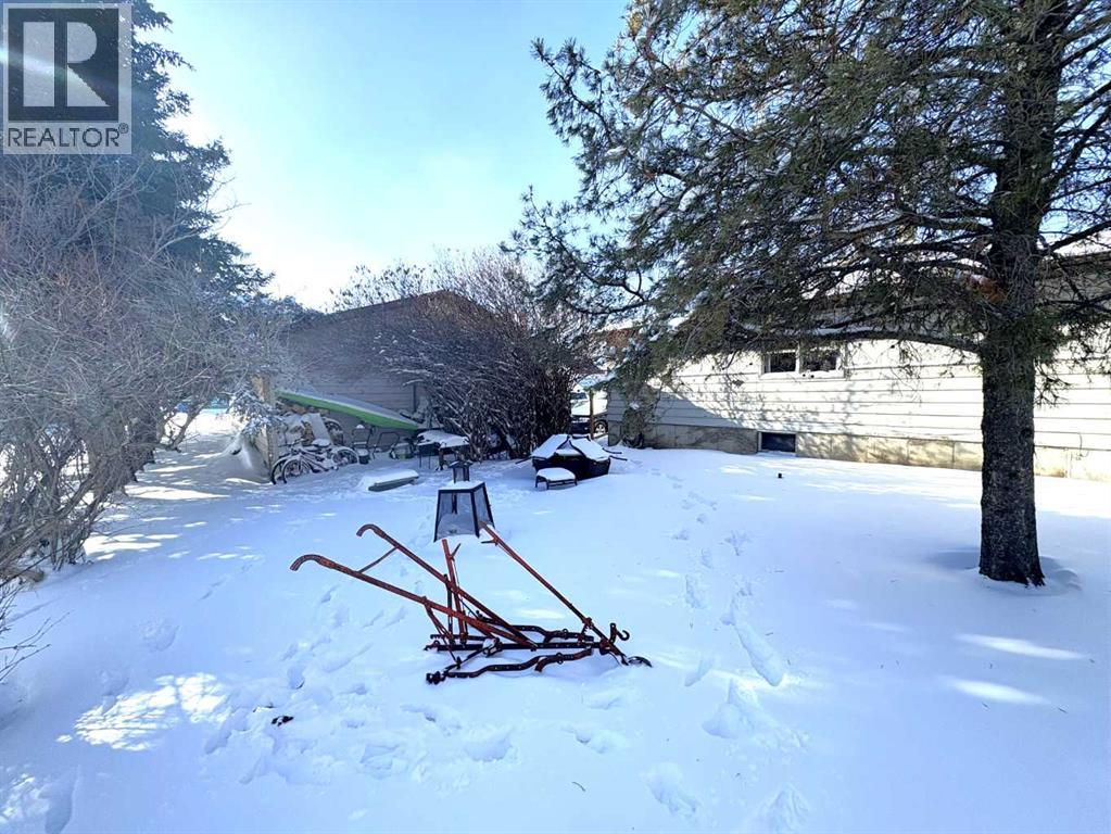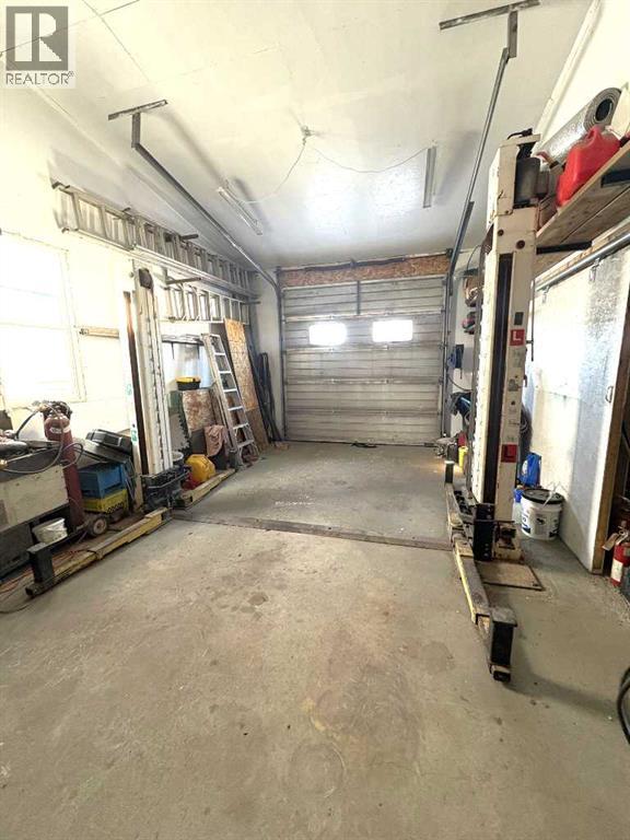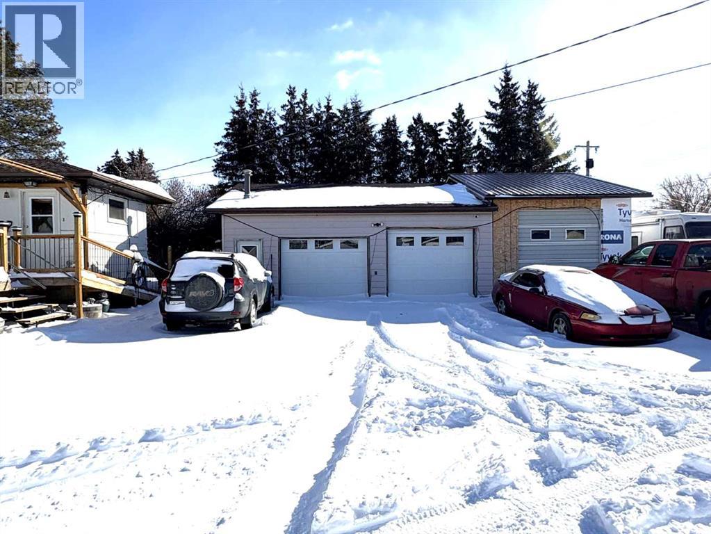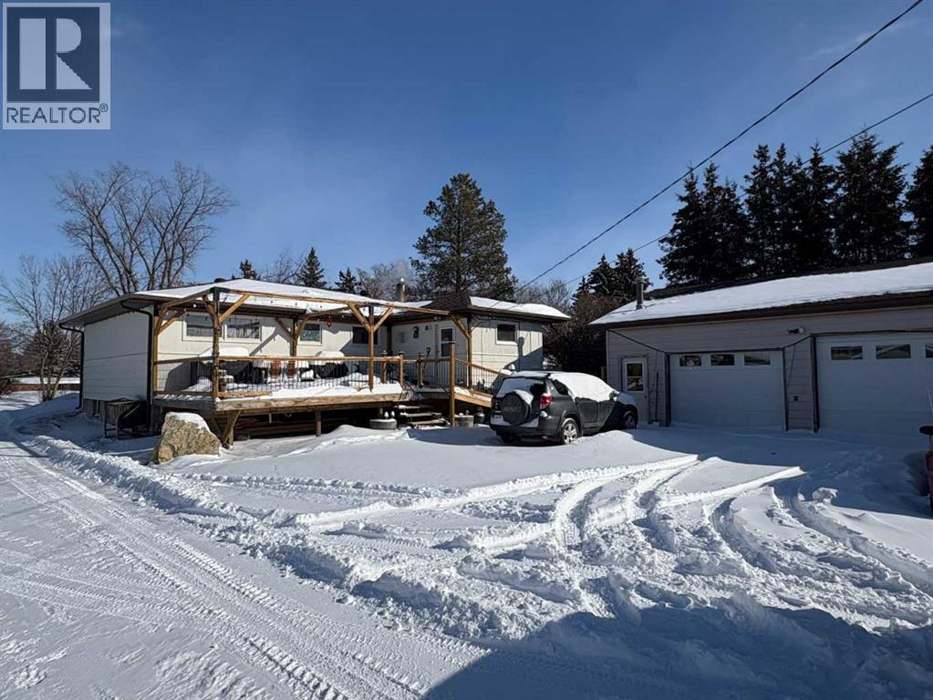 TAKE A LOOK AT THIS AFFORDABLE FAMILY HOME. 1002 SQFT. BUNGALOW, THE MAIN FLOOR FEATURES A BRIGHT LIVING ROOM WITH LARGE PICTURE WINDOW TO LET IN ALL THE SUNLIGHT. THE SPACIOUS KITCHEN HAS ROOM FOR AN ISLAND OR COFFEE BAR, NICE EATING AREA, 2 GOOD SIZE BEDROOMS. 4PC BATH WITH NEW RENOS. LARGE BACK ENTRY HAS UTILITY SINK AND PLENTY OF ROOM FOR COATS AND BOOTS. THE PARTIAL FINISHED BASEMENT HAS MANY POSSIBILITIES FOR YOUR PERSONAL TOUCH AND NEW CARPET JUST INSTALLED. LARGE FAMILY ROOM, 1 MORE BEDROOM, 2PC BATH, ONE MORE LARGE ROOM. SPACIOUS LAUNDRY AREA WITH MORE THAN ENOUGH STORAGE SPACE. THERE IS A POSSIBILITY FOR A SECOND BASEMENT BEDROOM. OUTSIDE YOU WILL FIND A NEW DECK TO ENJOY YOUR MORNING COFFEE. FENCED SIDE YARD. NOW LETS TALK ABOUT THAT DREAM TRIPLE GARAGE. 28'X49,' HEATED, 220 V. TWO REGULAR OVERHEAD DOORS AND ONE OVER SIZED DOOR WITH A 2 POST 9000lb. HOIST AND VAULTED CEILING. PERFECT FOR WORKING ON YOUR VEHICLE OR STACKING TWO FOR ADDITIONAL INSIDE PARKING. MORE THAN ENOUGH ROOM TO PARK AND STORE ALL YOUR TOYS WITH THE ADDED BONUS OF A HUGE DRIVEWAY. THERE IS ALSO EXTRA SPACE FOR RV PARKING WITH SIDE AND BACK LANE ACCESS. ALL OF THIS IS WAITING FOR YOU IN THE FRIENDLY COMMUNITY OF FORESTBURG, K-12 SCHOOL, ARENA, POOL, GOLF COURSE AND GREAT RESTAURANTS AND STORES (id:63190)