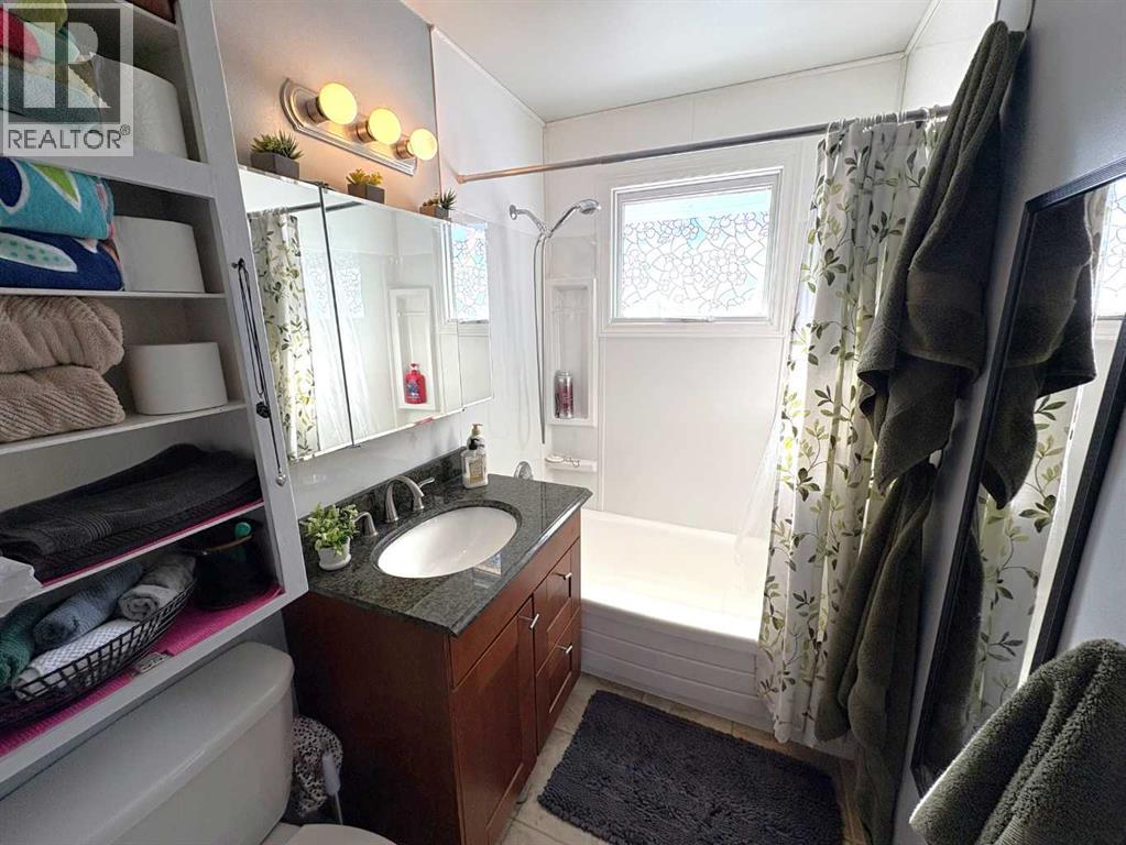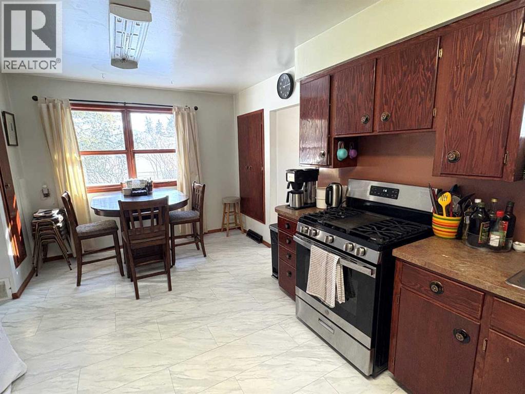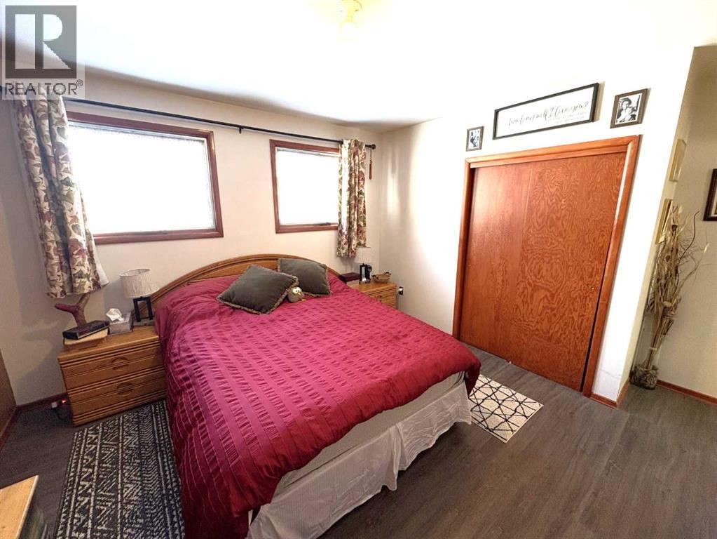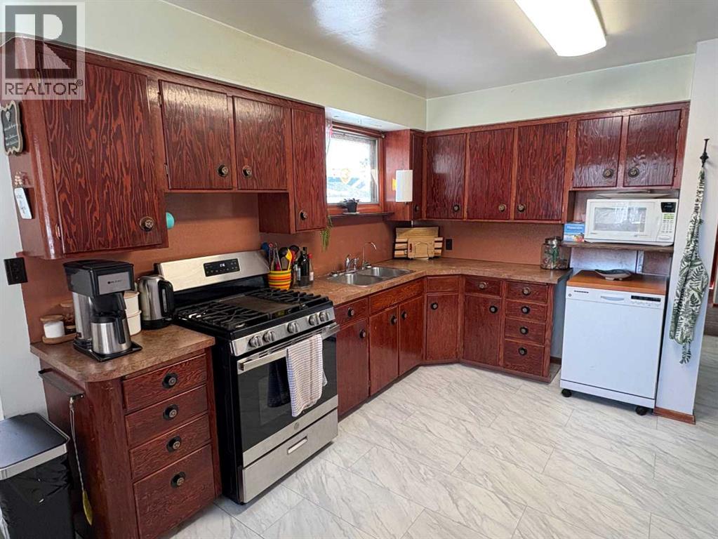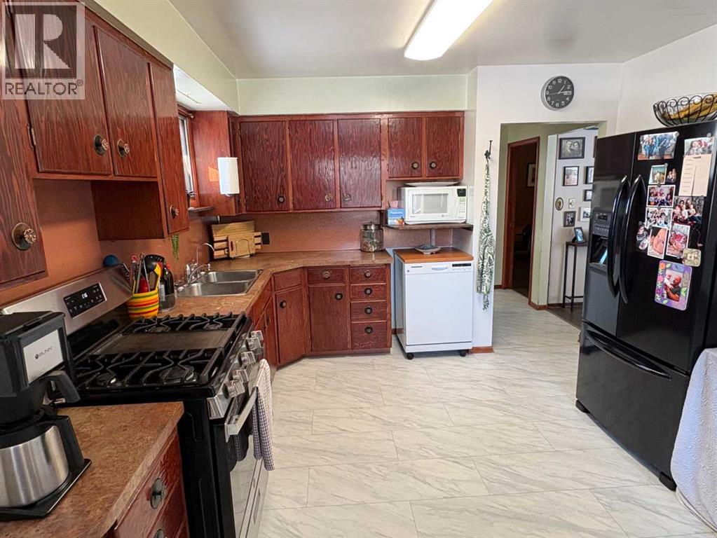 TAKE A LOOK AT THIS AFFORDABLE FAMILY HOME. 1002 SQFT. BUNGALOW, THE MAIN FLOOR FEATURES A BRIGHT LIVING ROOM WITH LARGE PICTURE WINDOW TO LET IN ALL THE SUNLIGHT. THE SPACIOUS KITCHEN HAS ROOM FOR AN ISLAND OR COFFEE BAR, NICE EATING AREA, 2 GOOD SIZE BEDROOMS. 4PC BATH WITH NEW RENOS. LARGE BACK ENTRY HAS UTILITY SINK AND PLENTY OF ROOM FOR COATS AND BOOTS. THE PARTIAL FINISHED BASEMENT HAS MANY POSSIBILITIES FOR YOUR PERSONAL TOUCH AND NEW CARPET JUST INSTALLED. LARGE FAMILY ROOM, 1 MORE BEDROOM, 2PC BATH, ONE MORE LARGE ROOM. SPACIOUS LAUNDRY AREA WITH MORE THAN ENOUGH STORAGE SPACE. THERE IS A POSSIBILITY FOR A SECOND BASEMENT BEDROOM. OUTSIDE YOU WILL FIND A NEW DECK TO ENJOY YOUR MORNING COFFEE. FENCED SIDE YARD. NOW LETS TALK ABOUT THAT DREAM TRIPLE GARAGE. 28'X49,' HEATED, 220 V. TWO REGULAR OVERHEAD DOORS AND ONE OVER SIZED DOOR WITH A 2 POST 9000lb. HOIST AND VAULTED CEILING. PERFECT FOR WORKING ON YOUR VEHICLE OR STACKING TWO FOR ADDITIONAL INSIDE PARKING. MORE THAN ENOUGH ROOM TO PARK AND STORE ALL YOUR TOYS WITH THE ADDED BONUS OF A HUGE DRIVEWAY. THERE IS ALSO EXTRA SPACE FOR RV PARKING WITH SIDE AND BACK LANE ACCESS. ALL OF THIS IS WAITING FOR YOU IN THE FRIENDLY COMMUNITY OF FORESTBURG, K-12 SCHOOL, ARENA, POOL, GOLF COURSE AND GREAT RESTAURANTS AND STORES (id:63190)