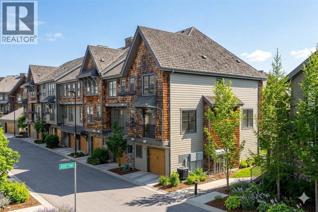 Welcome to 455 Ascot Circle SW, offered for the very first time, this beautifully appointed end-unit home in the heart of sought-after Aspen Woods — one of Calgary’s most prestigious west-side communities. This end-unit with its higher ground placement allows for an abundance of natural light that fills the home throughout the day, creating a bright and airy atmosphere rarely found in comparable units.Featuring 3 bedrooms, 2 full bathrooms, and 1 half bath, this thoughtfully designed residence delivers the perfect blend of upscale design and functional family living. From the moment you arrive, the curb appeal sets the tone. Inside, expansive windows highlight the brand new main level entire hardwood flooring and plush new carpet throughout, elevating the warmth and freshness of every space.The open-concept main floor seamlessly connects the kitchen, dining, and living areas — ideal for everyday family life and effortless entertaining. The chef-inspired kitchen offers quality cabinetry, generous counter space, and a central island that anchors the home — perfect for morning coffee, homework sessions, or hosting friends.Upstairs, spacious bedrooms provide comfort and flexibility, while the primary retreat offers a serene escape complete with a well-appointed ensuite and walk-in closet.One of the standout features is the extra wide heated tandem garage (17’7” x 36’1”) with additional storage areas, setting this unit apart from others in the complex. Whether you need space for two vehicles, mountain gear, bikes, or seasonal storage, the extra depth and versatility add significant value.Situated within The Enclave, the community offers a peaceful, mountain-inspired atmosphere reminiscent of Canmore or Banff, with beautifully maintained walking paths and green space throughout. With quick access to Stoney Trail, weekend escapes to the Rockies are effortless.Families will appreciate proximity to leading schools, walking distance to Webber Academy and Calgary Academy , the future Catholic High School, Guardian Angel and Roberta Bondar schools. Easy access to the boutiques and dining at Aspen Landing Shopping Centre. Downtown access is equally seamless, offering the perfect balance of retreat and connectivity.Specifics for this unit include all the upgrades offered from the original builder with finished ceilings, electric fireplace, stainless steel appliances & gas stove, quartz counters with under cupboards lighting, primary ensuite 10mm walk-in shower, gas bbq line.Further add-ons include: air conditioning, upgraded closets, bedroom black out window coverings, and ring door bell.This home is like new, move in ready with all new flooring, new paint and all home maintenance just completed. (id:63190)