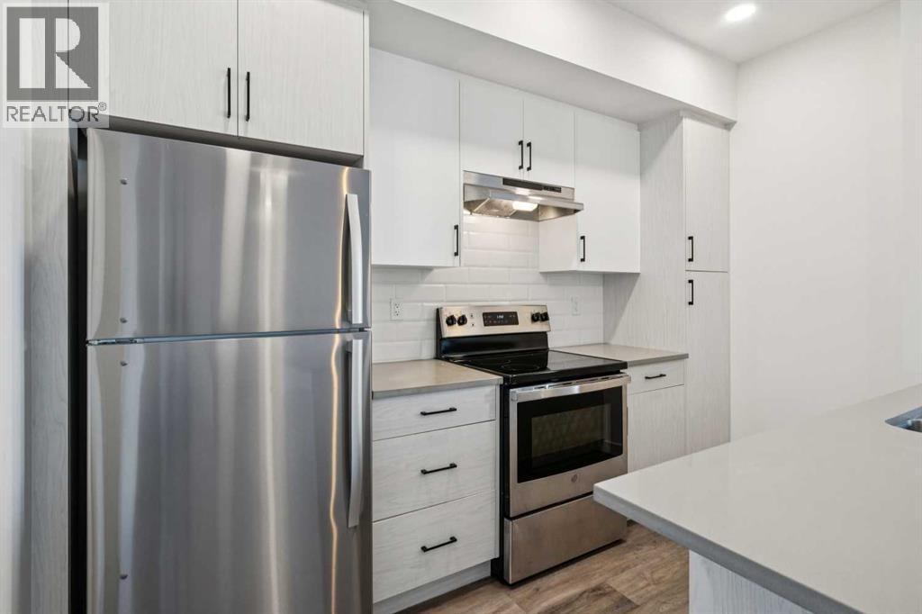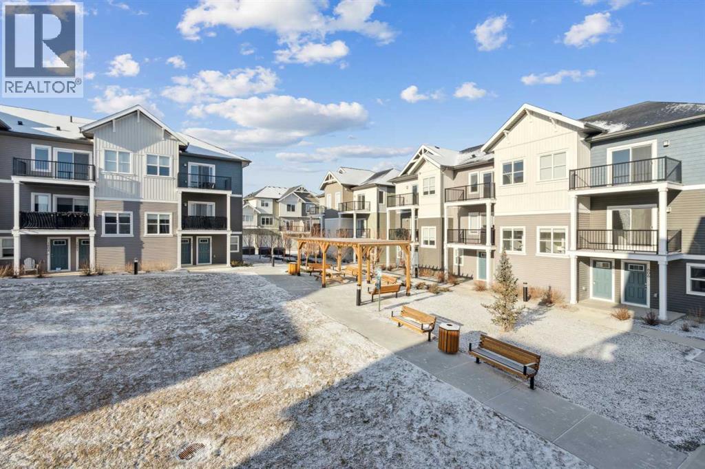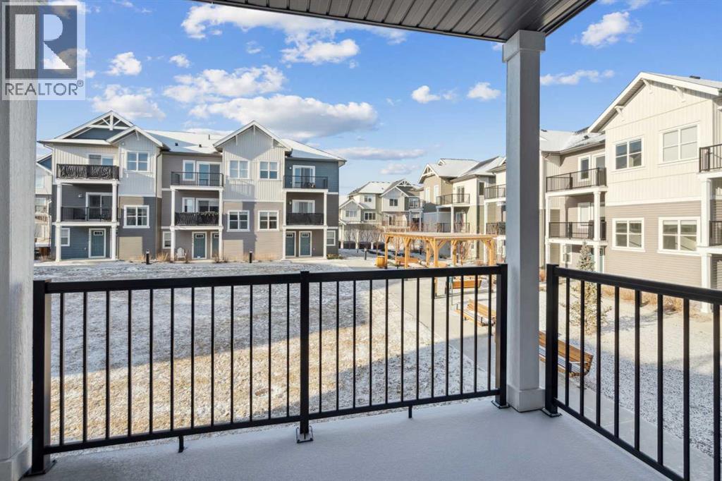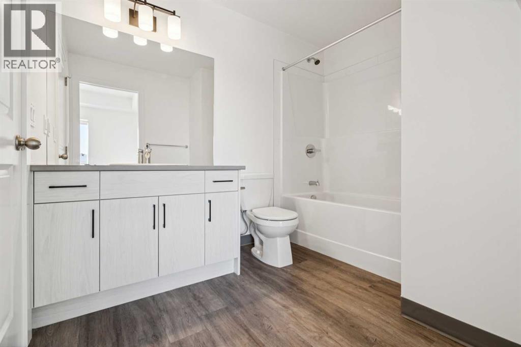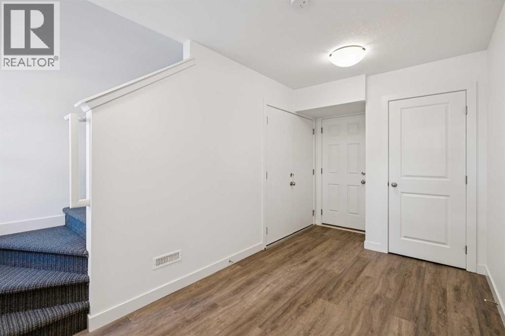 Discover the charm of contemporary living in this thoughtfully designed townhome. Filled with natural light from ample windows, the open-concept layout spans three inviting levels and offers beautiful mountain views. The stylish kitchen includes sophisticated white cabinetry, quartz counters, a generous island, and stainless steel appliances. Offering 1 bedroom, 1 bath, and a cheerful, versatile den, this home provides flexible living spaces. The primary bedroom boasts ample storage and direct access to the main bath featuring a luxurious 4 piece bathroom. Features include vinyl plank floors, upper-level laundry, complete blinds, a single garage, and driveway plus street parking. Enjoy nearby pathways, local shopping, and convenient access to both Calgary and mountain adventures. (id:63190)
