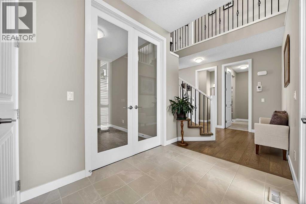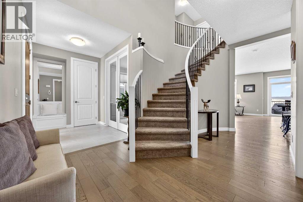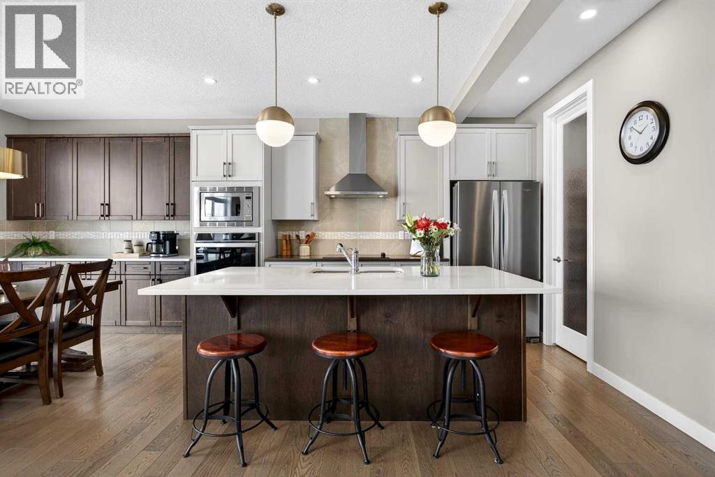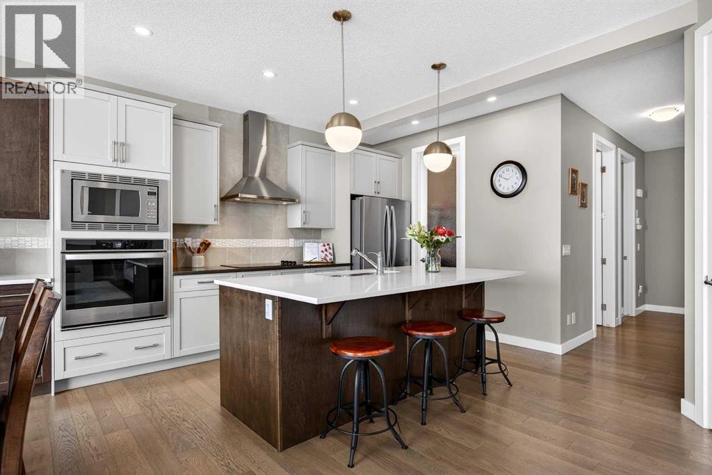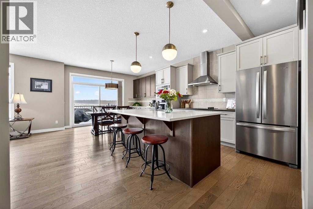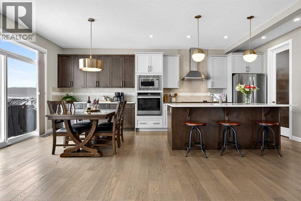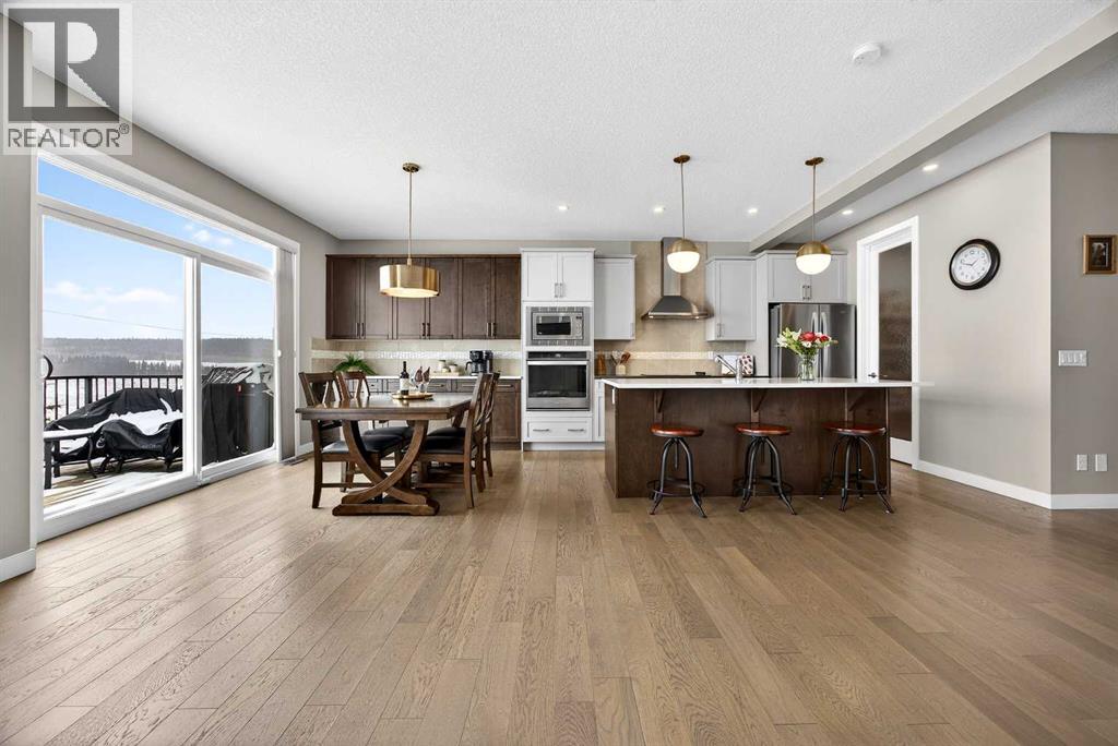 Welcome to the best value in Sunset Ridge! As you step into this beautiful home, you’re welcomed by gleaming hardwood floors and an abundance of natural light. The open-concept floor plan is perfect for entertaining and extends seamlessly to an east-facing balcony and a fenced, irrigated backyard that backs onto expansive green space—offering the privacy of no rear neighbours. The main floor features a private den with glass French doors, ideal for working from home. The chef-inspired kitchen showcases a large island with quartz countertops and bar seating, a stainless steel French-door refrigerator, and built-in microwave and oven. Extended cabinetry into the dining area provides exceptional storage, while the convenient walkthrough pantry connects the mudroom directly to the kitchen. The inviting living room features a cozy gas-burning fireplace, and a two-piece powder room completes the main level. Up the elegant curved staircase with wrought-iron spindles, is the primary bedroom This retreat offers a luxurious five-piece ensuite with dual sinks and a stand-alone soaker tub, along with a walk-through closet that leads directly to the laundry room for ultimate convenience. Two additional bedrooms, a generous bonus room and a four-piece bathroom complete the upper floor. The fully finished walkout basement is designed for entertaining, featuring two additional bedrooms, a four-piece bathroom, and beautiful views of the backyard and surrounding green space. Additional highlights include a double attached garage and central air conditioning. Ideally situated close to schools, parks, scenic walking trails, and shopping, this exceptional home combines comfort, style, and an unbeatable location. (id:63190)