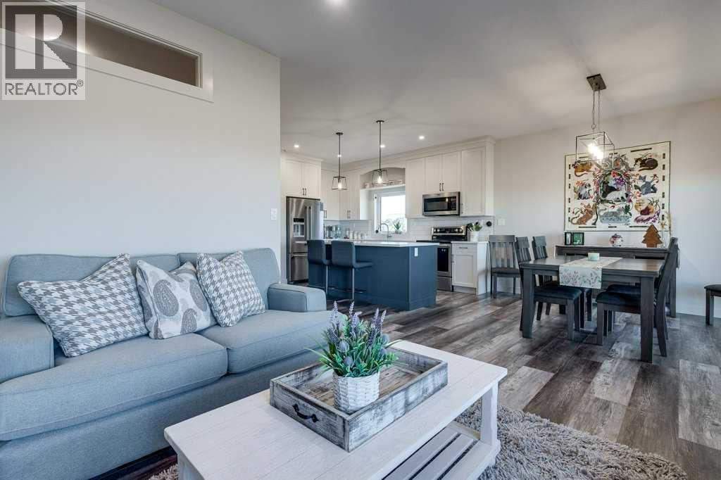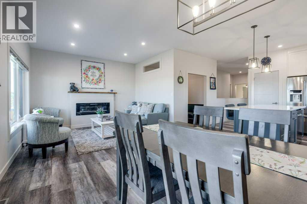 Move-in ready and beautifully finished, this 5-bedroom bungalow offers the space, style, and function today’s families are looking for. With over 2,400 sq ft of fully developed living space, this home blends modern design with thoughtful upgrades throughout. The main floor welcomes you with a bright, spacious entry and an open-concept layout designed for everyday living and entertaining. The kitchen is the heart of the home, featuring quartz countertops, an undermount sink, and a large island with room for seating. The living and dining areas are filled with natural light from west-facing windows and anchored by a cozy electric fireplace. You’ll also find two bedrooms on the main level, including a generous primary suite with a walk-in closet and private ensuite with walk-in shower. Main floor laundry and a versatile flex room—ideal for a home office or playroom—add to the convenience. Downstairs, 9-foot ceilings create an airy feel in the fully finished basement, complete with a large family room, dry bar, three additional bedrooms, and a 4-piece bath—perfect for teens or guests. Roughed-in in-floor heat and central A/C provide year-round comfort. Outside, enjoy a fully landscaped yard with underground sprinklers, a tiered west-facing deck (partially covered for all-weather use), and direct access to neighborhood walking paths. The attached heated double garage includes 220 wiring for a potential EV charger. Located close to schools, shopping, and dining, this well-cared-for home offers modern comfort in a convenient location. A fantastic opportunity for buyers seeking space, quality, and value. (id:63190)