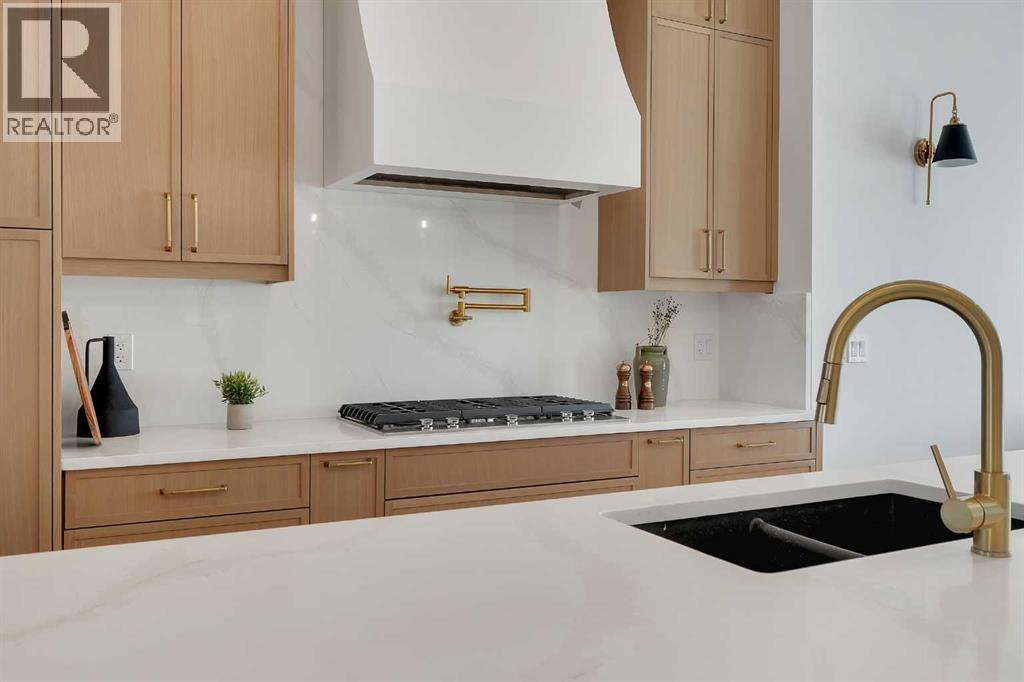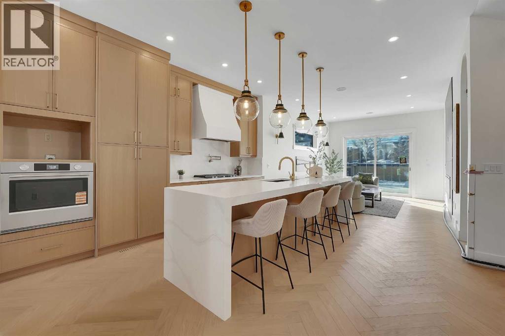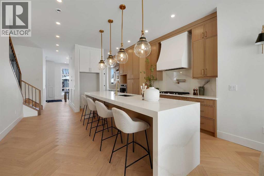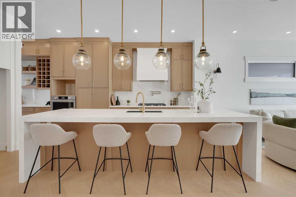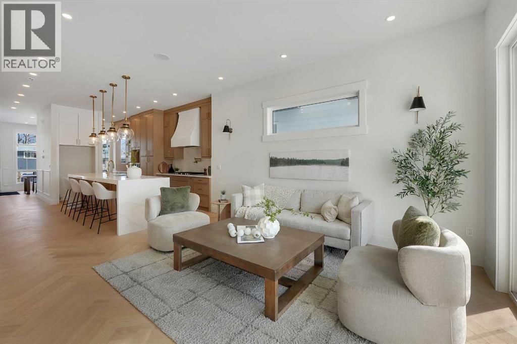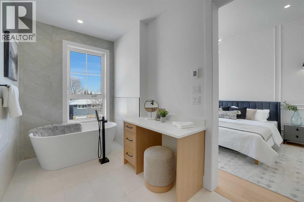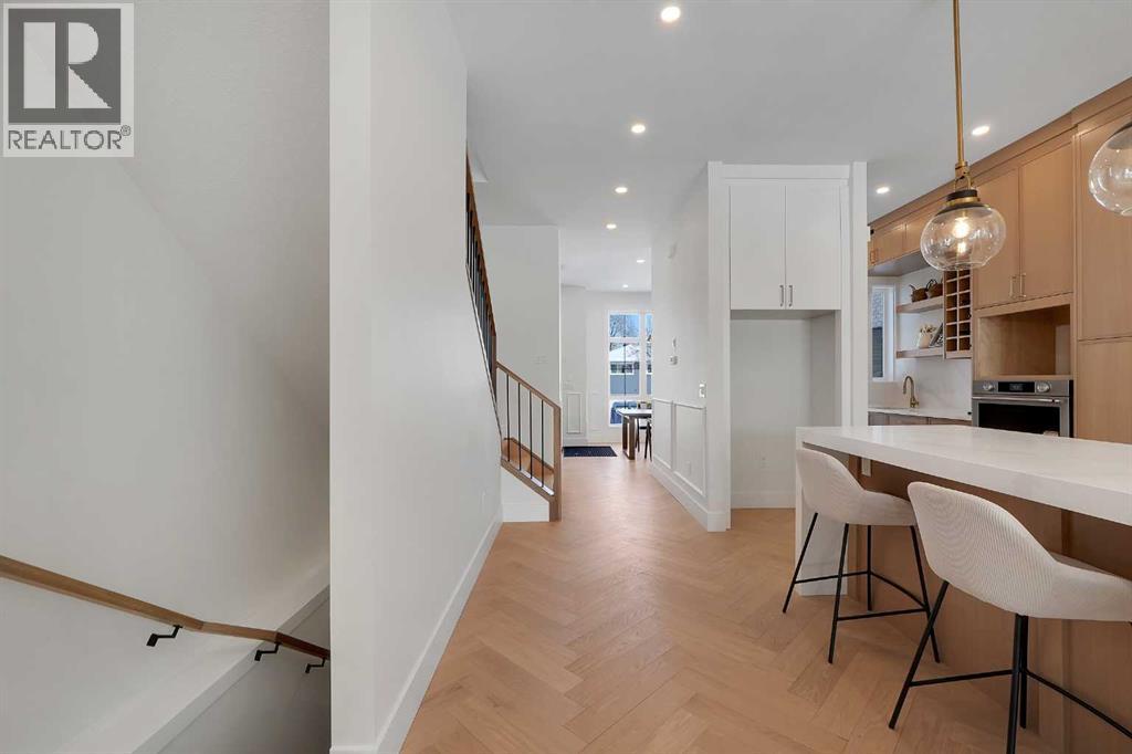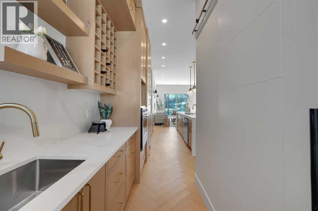 Introducing an exceptional modern infill in the highly sought-after community of Banff Trail, perfectly located on a quiet street just minutes from SAIT, McMahon Stadium, the University of Calgary, Confederation Park, and vibrant local amenities. This thoughtfully designed home offers outstanding craftsmanship, high-end finishes, double detached garage and a legal basement suite—ideal for multi-generational living or added income potential. The upper level, featuring 9ft ceilings, contains three spacious bedrooms, each complete with its own walk-in closet & private en-suite, providing comfort and privacy for the whole family. The luxurious primary retreat is truly impressive, showcasing a spa-inspired 5 pc en-suite, a large walk-in closet, and even a convenient wet bar - a rare and elegant touch. The laundry room is also located upstairs for ultimate convenience. The main floor is designed for both daily living and entertaining, highlighted by a massive chef's kitchen equipped with premium finishes, an oversized island, and a full butler's pantry. A bright living room with cozy gas fireplace, stylish dining area, and a versatile main floor den create the perfect balance of function and flow. Enjoy the 10 foot ceilings throughout this level!The fully developed basement offers a LEGAL SUITE with a separate side entry, complete with two bedrooms, a full bathroom, a comfortable living room, and a fully equipped kitchen all under 9 ft ceilings—ideal for rental income or extended family use.With exceptional design, unmatched convenience, and a prime inner-city location, this stunning home offers everything today’s buyers are looking for. A must-see opportunity! (id:63190)