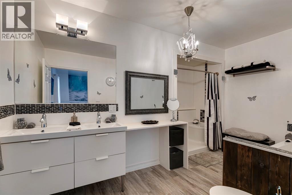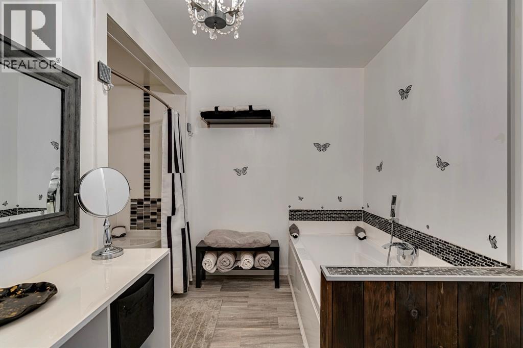 Set on a massive 10,500 sq. ft. estate-style lot in Newcastle, this fully finished bungalow offers rare space, utility, and long-term value in the heart of Drumheller.At approximately 1,840 sq. ft. above grade, this single-level home provides comfortable, functional living with the convenience today’s buyers are prioritizing, no stairs required. The property features an oversized 22x24 double garage, RV parking with 30-amp hookup, dual driveways, and room for tools, toys, trailers, or a home-based setup.For buyers relocating from larger centres, this is an opportunity to trade density for space, enjoy a ¼-acre residential lot, privacy, and secure storage while remaining minutes from town amenities and tourism landmarks.Inside, recent renovations blend warmth and modern utility. The kitchen features extended custom cabinetry, quartz peninsula workspace, soft-close drawers, ceramic apron-front sink, and updated LG appliances. The living space showcases upgraded finishes, new flooring, fresh paint, and a distinctive wood feature wall.The primary suite includes a whirlpool tub, tiled shower with seating, and double vanity. In total, the home offers 4 bedrooms and 3 bathrooms, providing flexibility for families, guests, or work-from-home needs.Efficiency and durability are standout features:Steel roofing on both home and garage.Rockwool insulation & R60 attic insulation.Pellet stove heating up to 2,000 sq. ft.New electrical panel & wiring.Heated, insulated crawlspace.New doors & windows.Outdoor living is equally impressive with multiple deck areas, an 18x27 patio with fire pit, gazebo lounge space, established apple trees and berry bushes, and a fully fenced yard designed for low maintenance.Backing near the world-recognized Passion Play site and just minutes to trails, parks, live theatre, and the Royal Tyrrell Museum, this property blends lifestyle, land value, and long-term usability.For buyers seeking lot size, garage capacity, and functional space at a price point rarely found in larger centres, this is a compelling opportunity.Book your private viewing today. (id:63190)