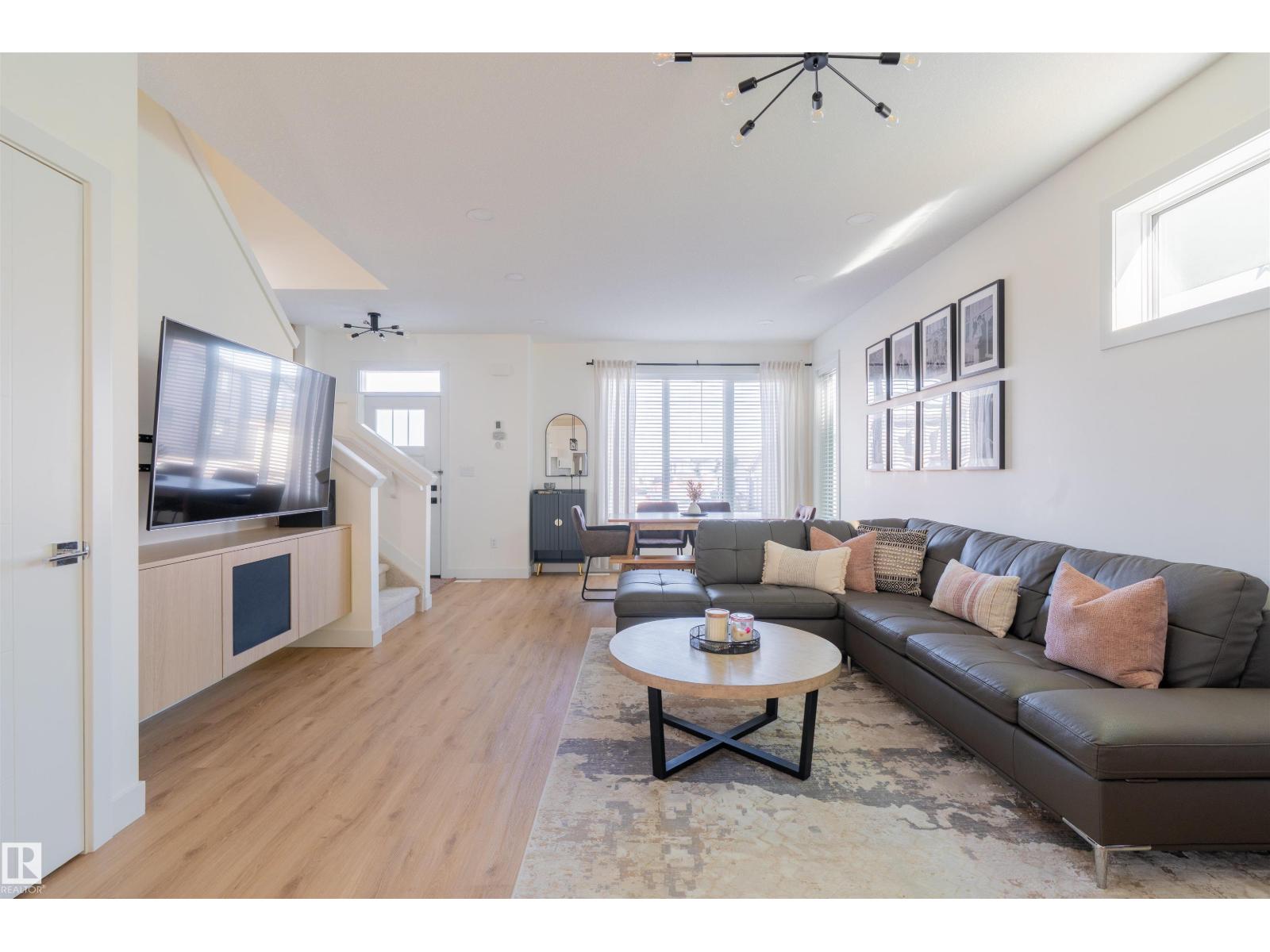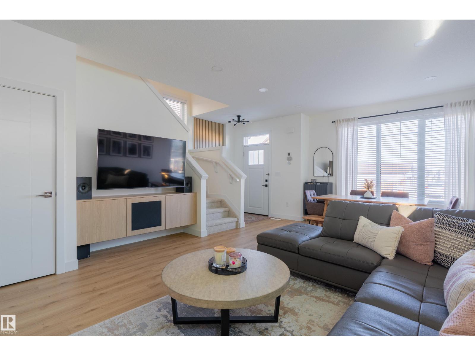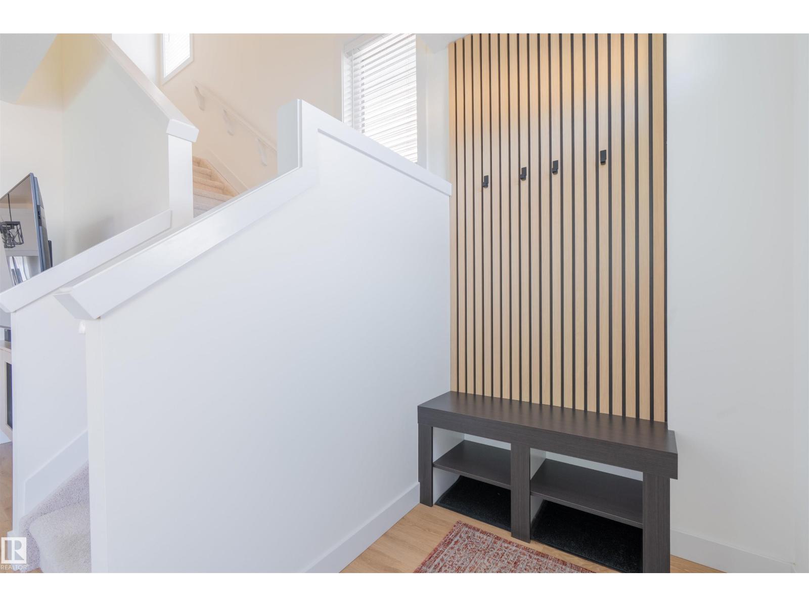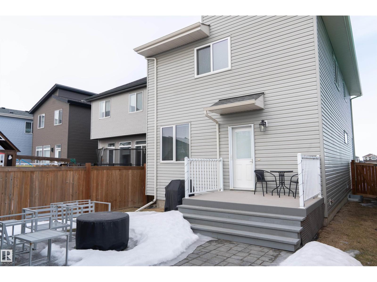 This modern 2-storey 1711 sq. ft. home located in Crystalina Nera, has had plenty of additional upgrades. The 9ft ceiling open-concept main floor boasts tons of natural light in the dining and living room area, with built-in living room shelving and a floating media console. The bright kitchen features stainless steel appliances adjacent to the walk-in pantry and den/bedroom, along with a 4-piece bathroom. The main floor also features functional wood slat storage feature walls in both the foyer and mudroom. Upstairs, the primary bedroom has custom wainscoting, a built-in walk-in closet, and a 5-pc ensuite. Additionally, the second floor hosts 2 more bedrooms, a 4-pc bathroom, and a laundry room. The unfinished basement has 2 windows and a separate entrance, perfect for future development into a legal suite, earning extra monthly income.This home also has air conditioning and has been fully landscaped, with a flower bed added in front and a deck and stone pathway leading to a double garage in the back. (id:63190)