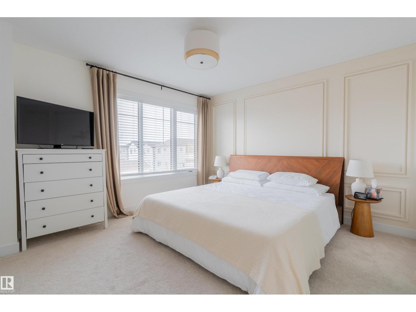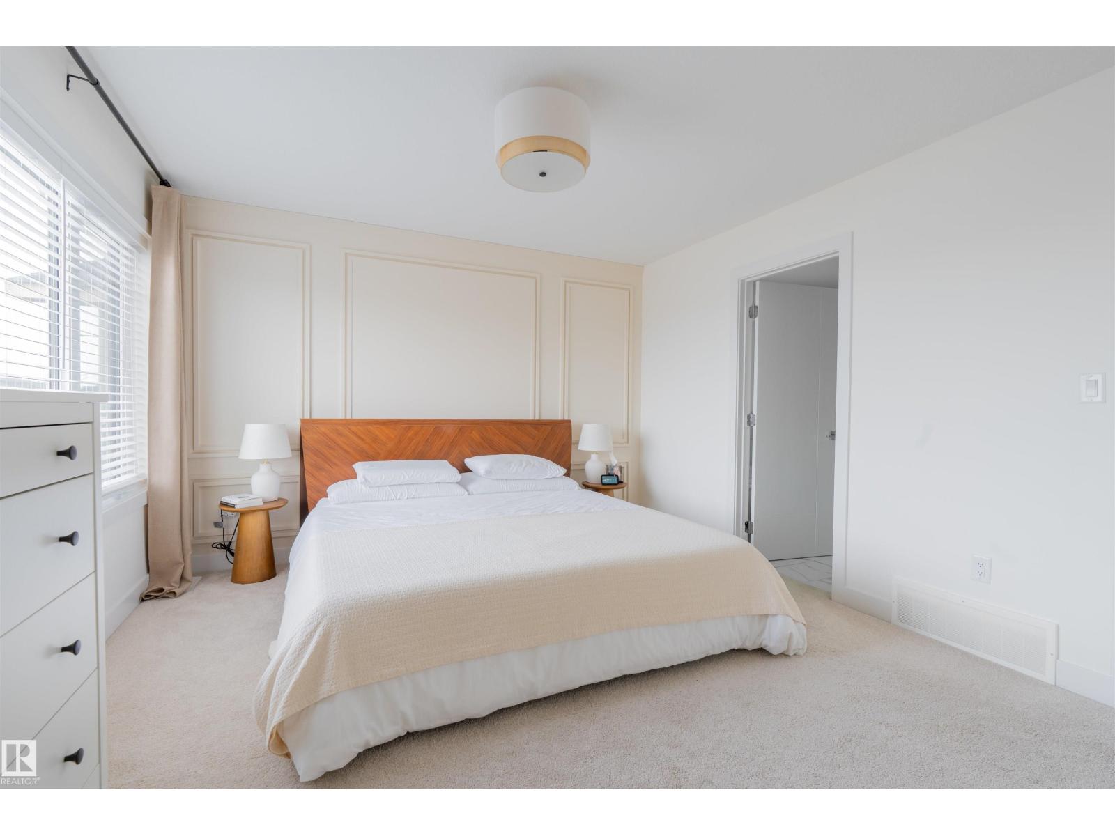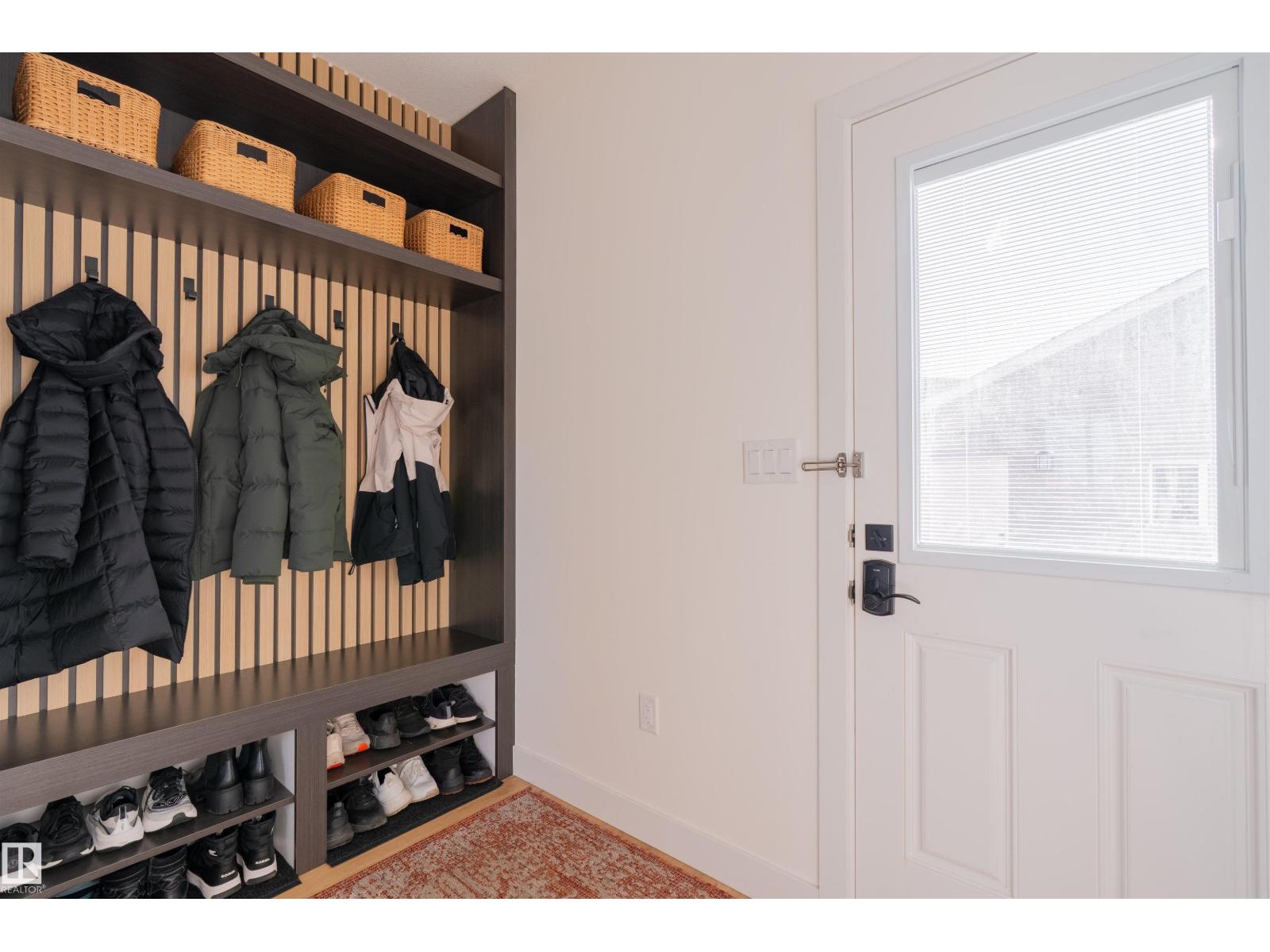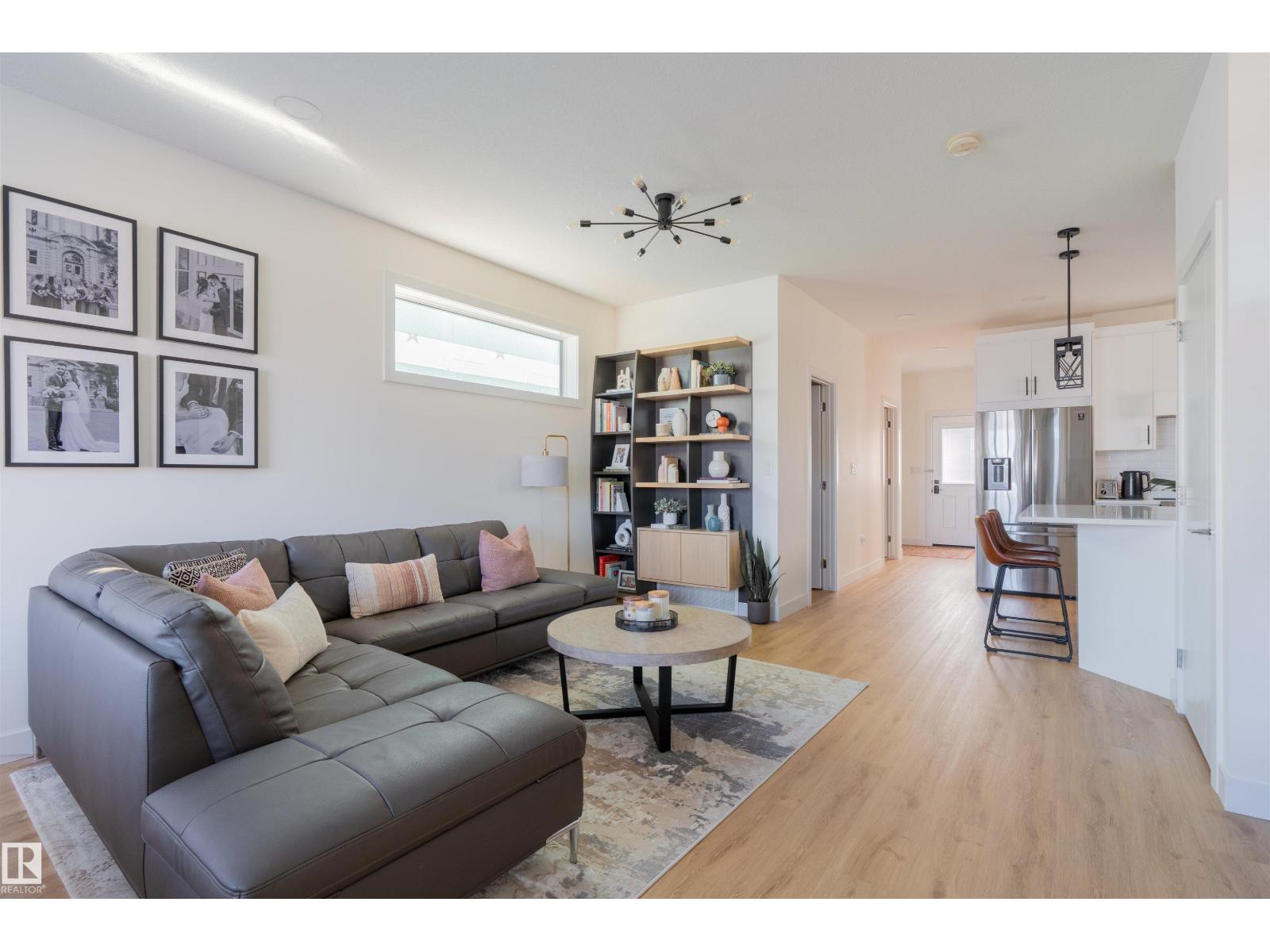 This modern 2-storey 1711 sq. ft. home located in Crystalina Nera, has had plenty of additional upgrades. The 9ft ceiling open-concept main floor boasts tons of natural light in the dining and living room area, with built-in living room shelving and a floating media console. The bright kitchen features stainless steel appliances adjacent to the walk-in pantry and den/bedroom, along with a 4-piece bathroom. The main floor also features functional wood slat storage feature walls in both the foyer and mudroom. Upstairs, the primary bedroom has custom wainscoting, a built-in walk-in closet, and a 5-pc ensuite. Additionally, the second floor hosts 2 more bedrooms, a 4-pc bathroom, and a laundry room. The unfinished basement has 2 windows and a separate entrance, perfect for future development into a legal suite, earning extra monthly income.This home also has air conditioning and has been fully landscaped, with a flower bed added in front and a deck and stone pathway leading to a double garage in the back. (id:63190)