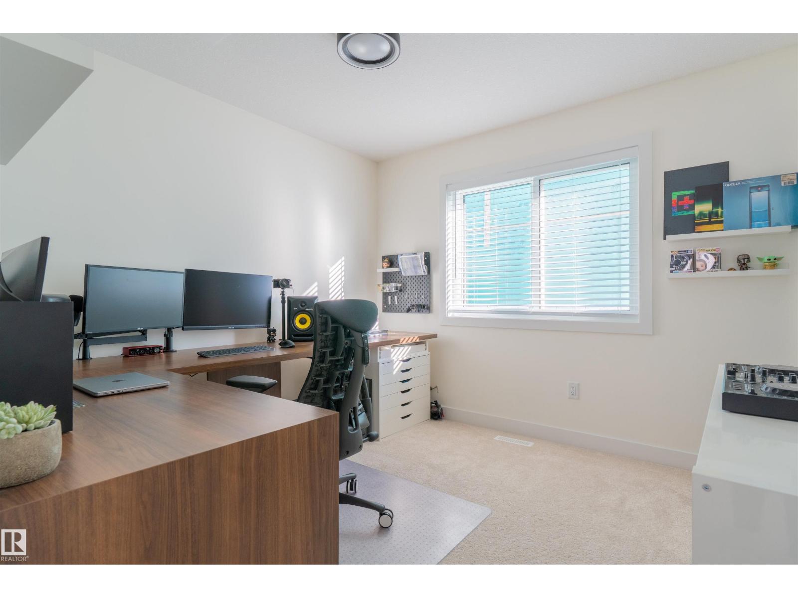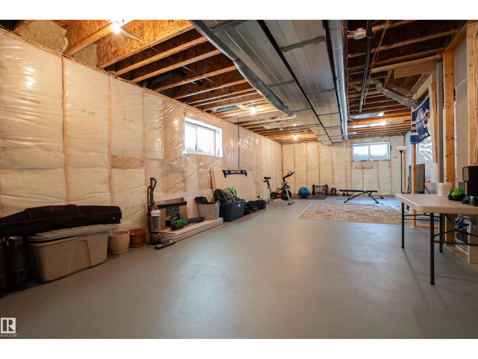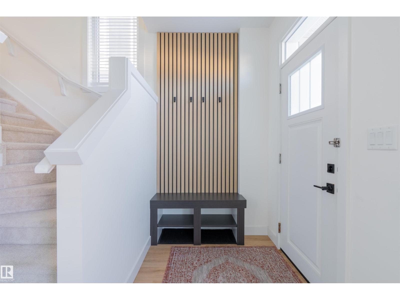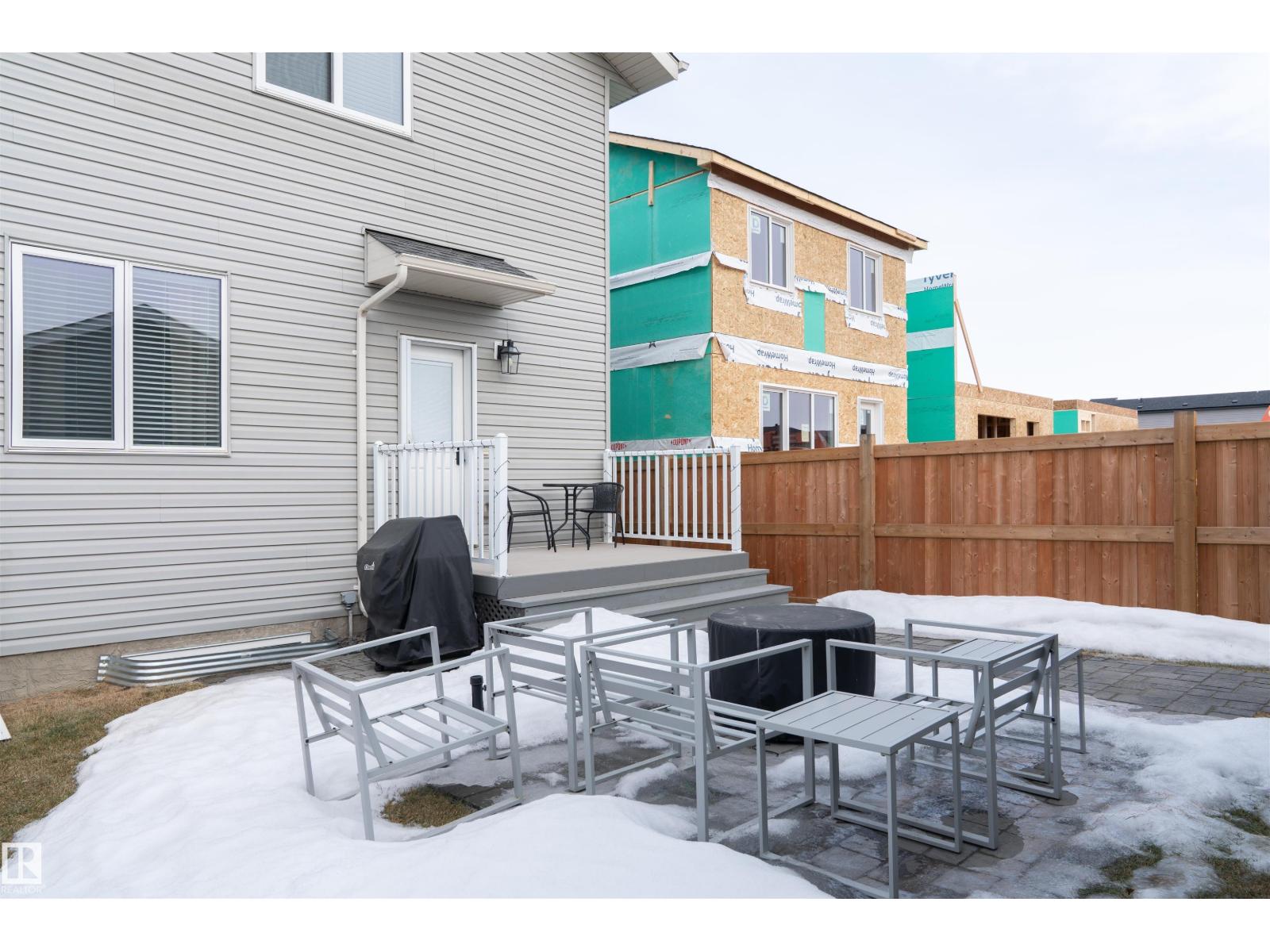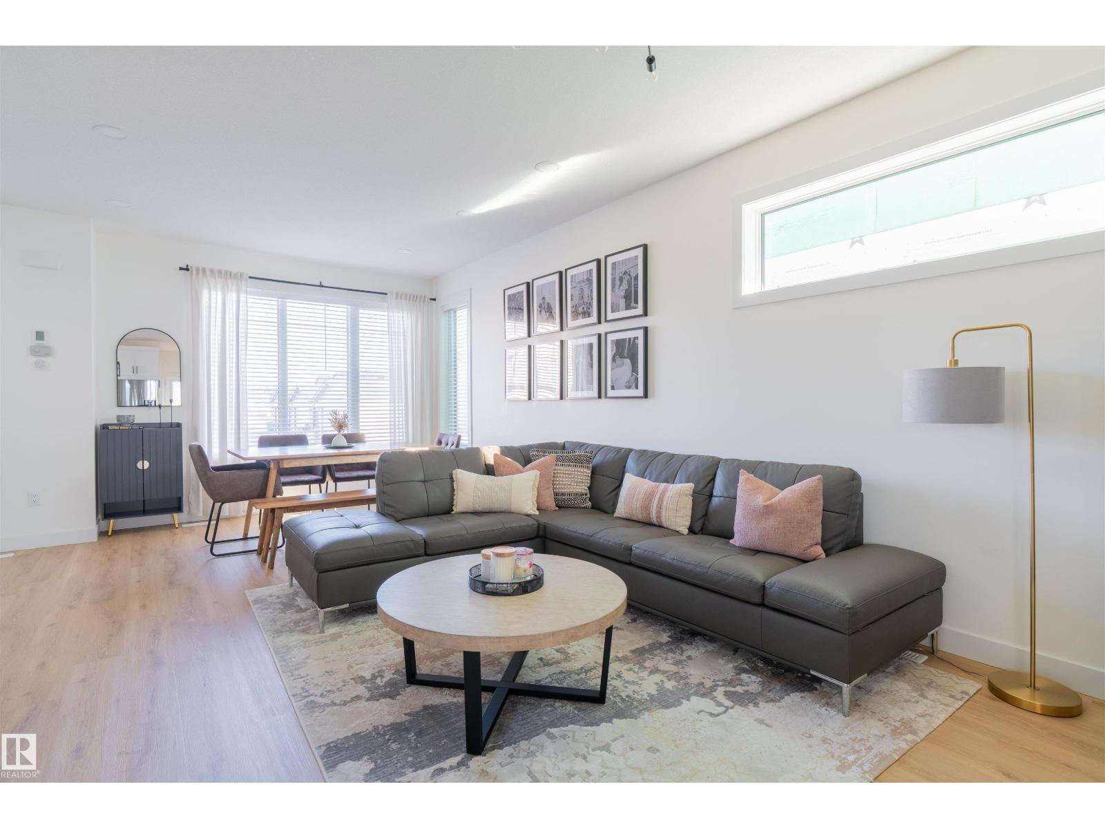 This modern 2-storey 1711 sq. ft. home located in Crystalina Nera, has had plenty of additional upgrades. The 9ft ceiling open-concept main floor boasts tons of natural light in the dining and living room area, with built-in living room shelving and a floating media console. The bright kitchen features stainless steel appliances adjacent to the walk-in pantry and den/bedroom, along with a 4-piece bathroom. The main floor also features functional wood slat storage feature walls in both the foyer and mudroom. Upstairs, the primary bedroom has custom wainscoting, a built-in walk-in closet, and a 5-pc ensuite. Additionally, the second floor hosts 2 more bedrooms, a 4-pc bathroom, and a laundry room. The unfinished basement has 2 windows and a separate entrance, perfect for future development into a legal suite, earning extra monthly income.This home also has air conditioning and has been fully landscaped, with a flower bed added in front and a deck and stone pathway leading to a double garage in the back. (id:63190)