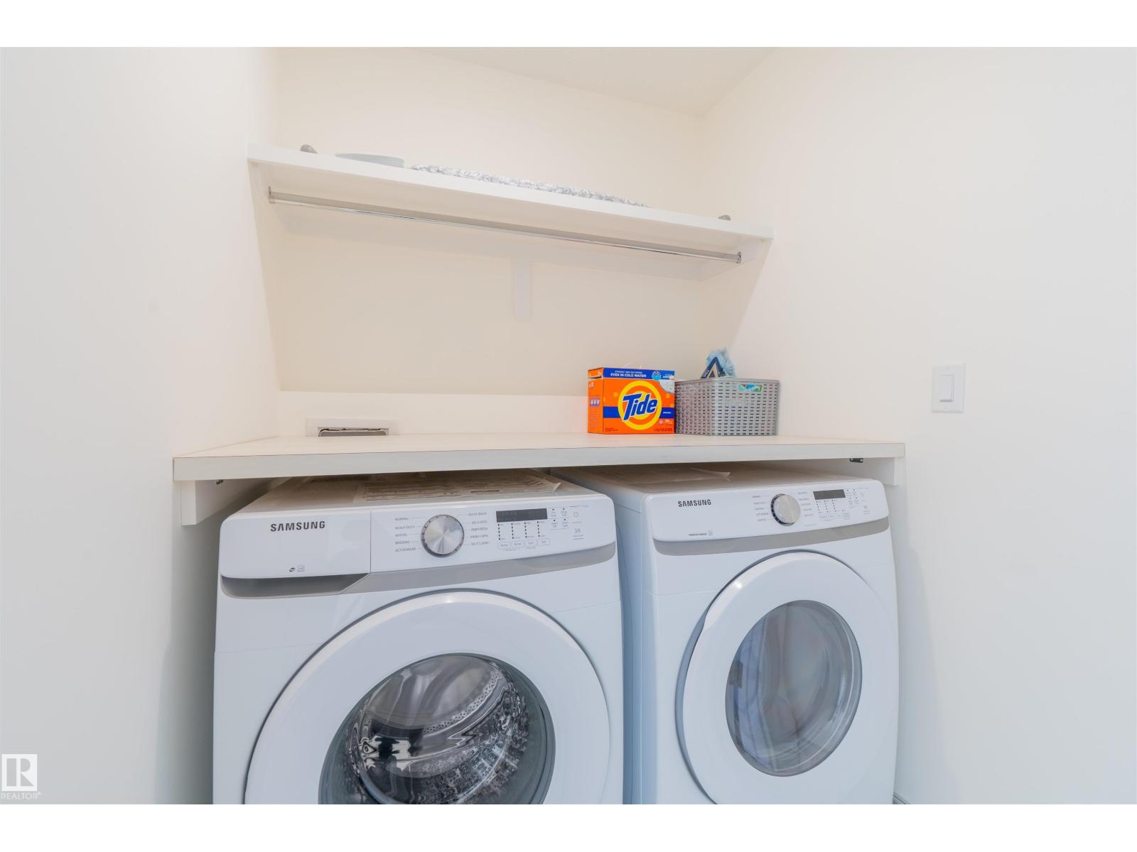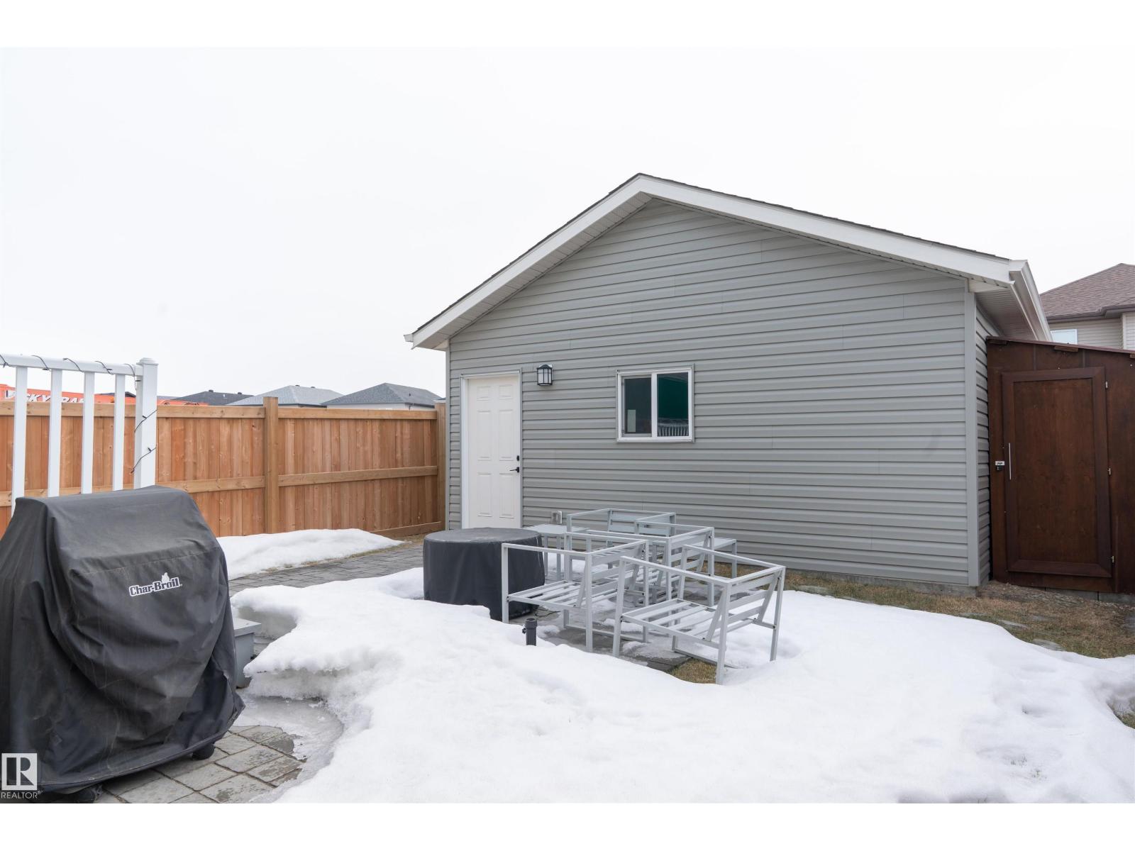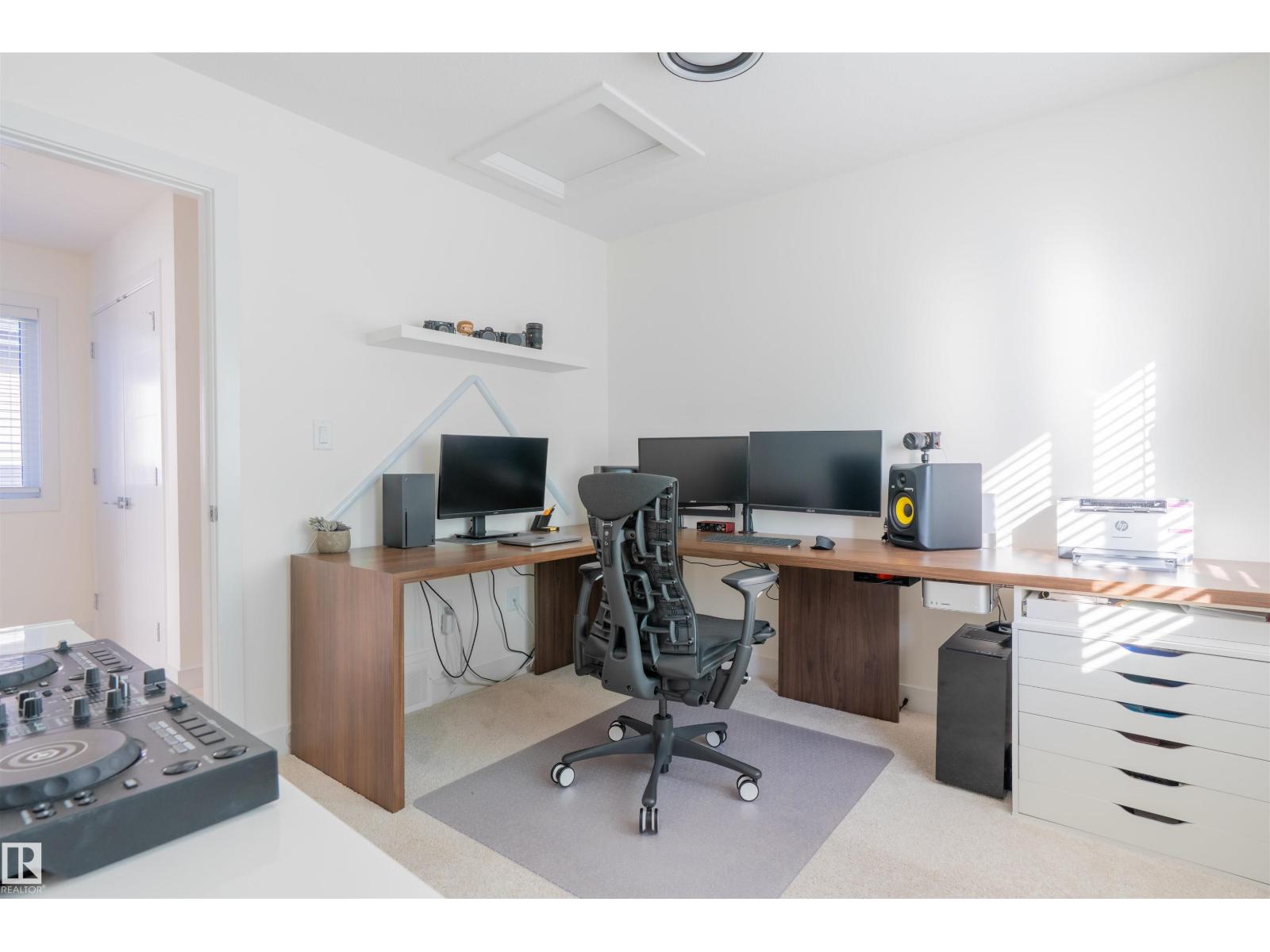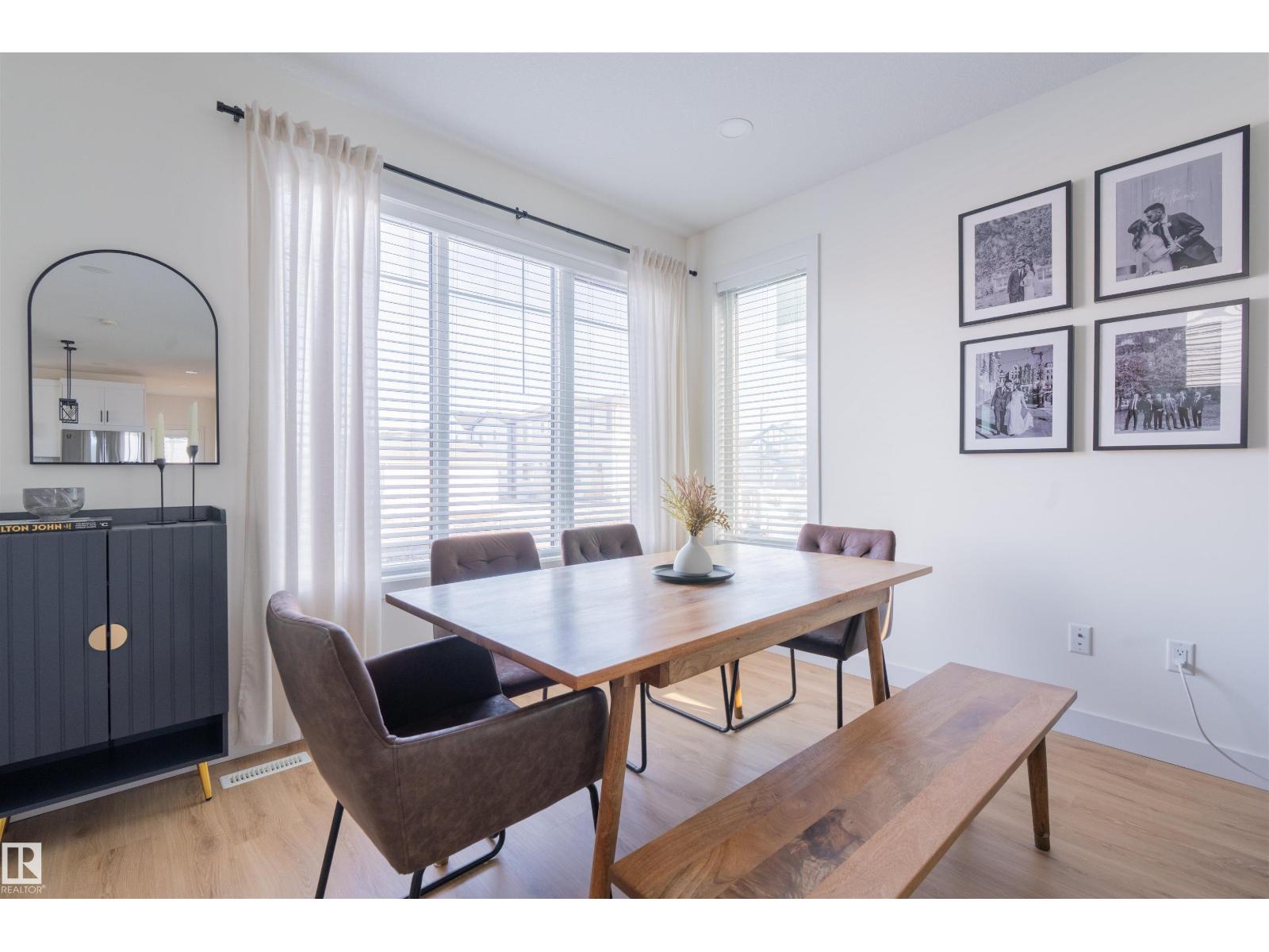 This modern 2-storey 1711 sq. ft. home located in Crystalina Nera, has had plenty of additional upgrades. The 9ft ceiling open-concept main floor boasts tons of natural light in the dining and living room area, with built-in living room shelving and a floating media console. The bright kitchen features stainless steel appliances adjacent to the walk-in pantry and den/bedroom, along with a 4-piece bathroom. The main floor also features functional wood slat storage feature walls in both the foyer and mudroom. Upstairs, the primary bedroom has custom wainscoting, a built-in walk-in closet, and a 5-pc ensuite. Additionally, the second floor hosts 2 more bedrooms, a 4-pc bathroom, and a laundry room. The unfinished basement has 2 windows and a separate entrance, perfect for future development into a legal suite, earning extra monthly income.This home also has air conditioning and has been fully landscaped, with a flower bed added in front and a deck and stone pathway leading to a double garage in the back. (id:63190)