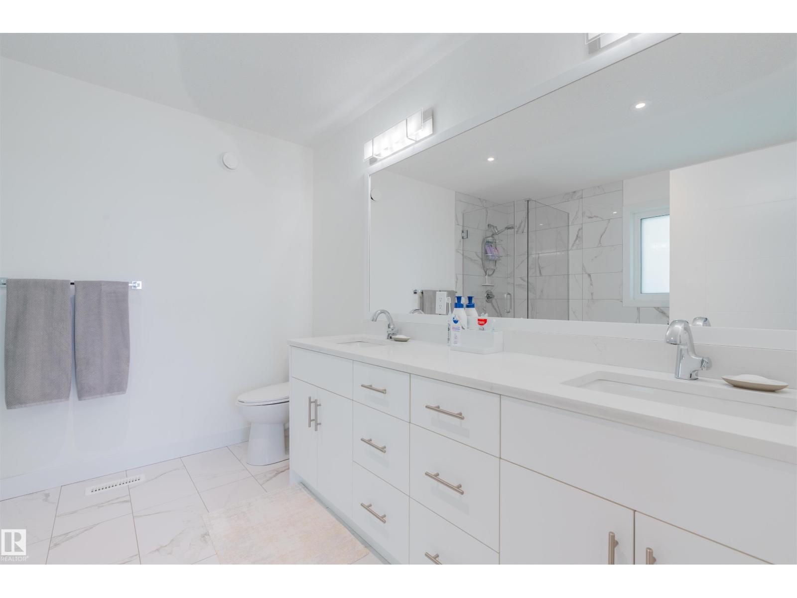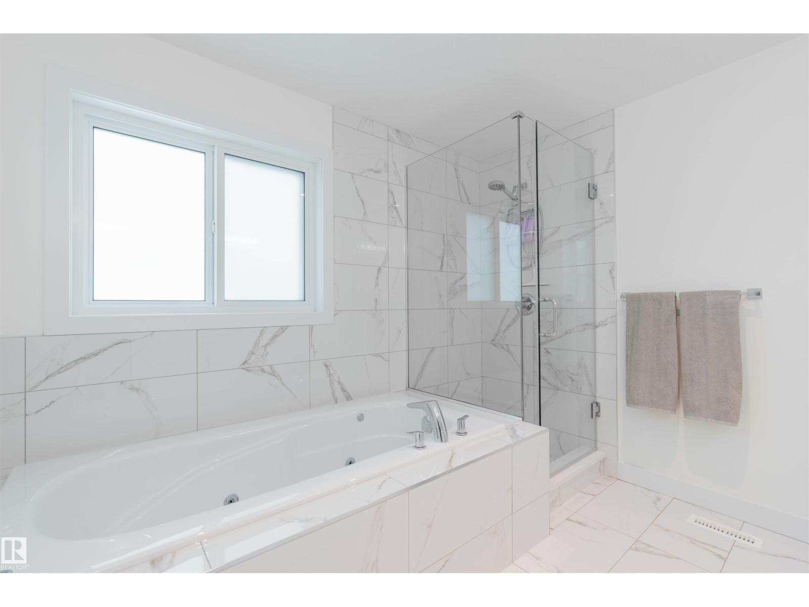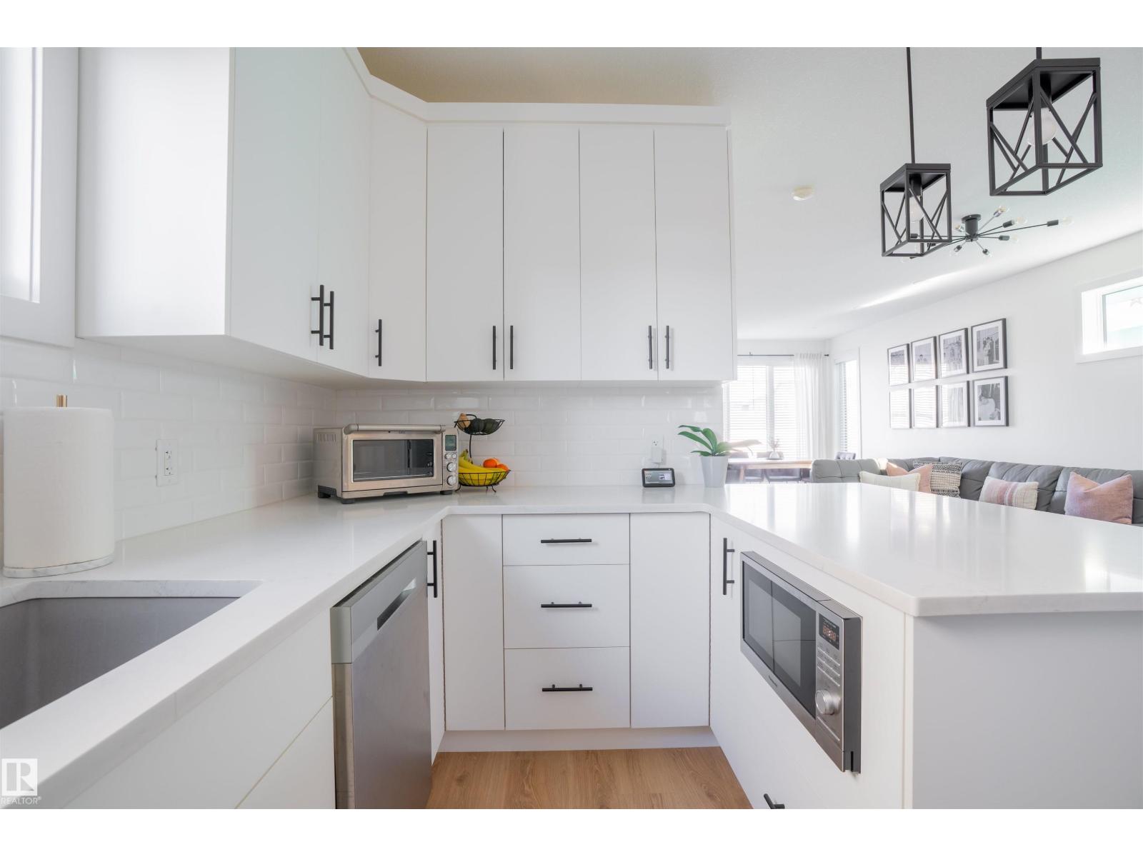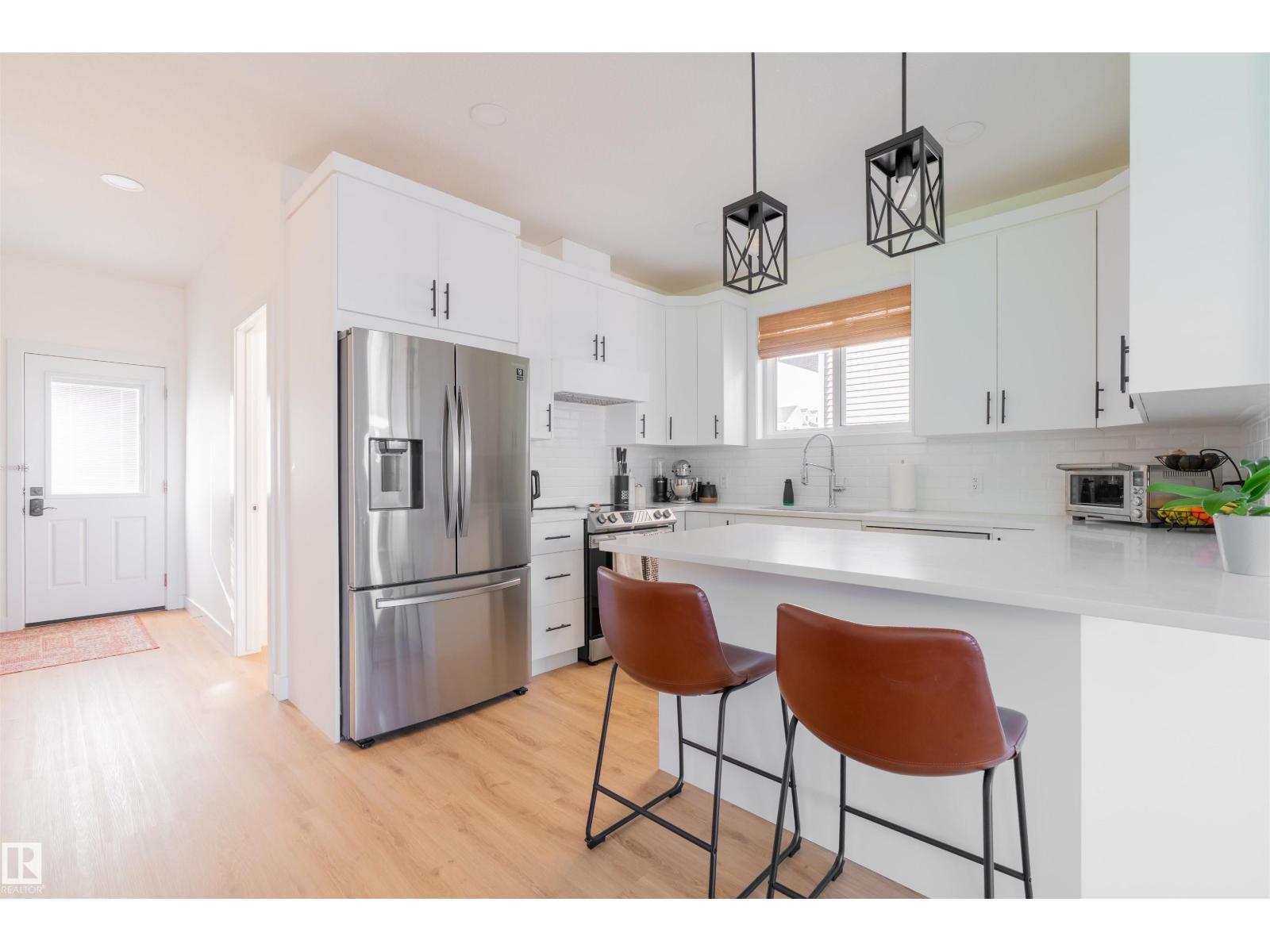 This modern 2-storey 1711 sq. ft. home located in Crystalina Nera, has had plenty of additional upgrades. The 9ft ceiling open-concept main floor boasts tons of natural light in the dining and living room area, with built-in living room shelving and a floating media console. The bright kitchen features stainless steel appliances adjacent to the walk-in pantry and den/bedroom, along with a 4-piece bathroom. The main floor also features functional wood slat storage feature walls in both the foyer and mudroom. Upstairs, the primary bedroom has custom wainscoting, a built-in walk-in closet, and a 5-pc ensuite. Additionally, the second floor hosts 2 more bedrooms, a 4-pc bathroom, and a laundry room. The unfinished basement has 2 windows and a separate entrance, perfect for future development into a legal suite, earning extra monthly income.This home also has air conditioning and has been fully landscaped, with a flower bed added in front and a deck and stone pathway leading to a double garage in the back. (id:63190)