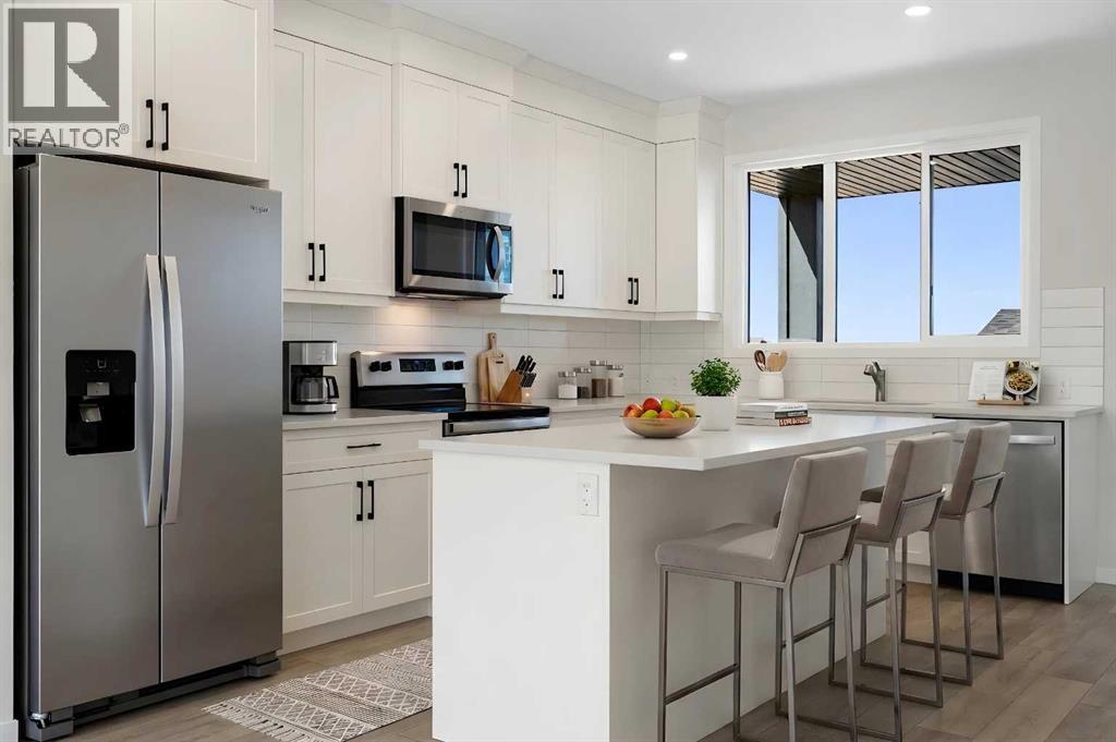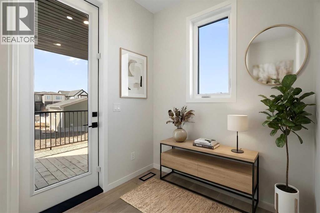 **Photos are from the show home/previous builds to demonstrate quality of construction & finishes and may not be an exact representation of this home**. Blending functionality and charm, the Sutton is a welcoming home designed for real life—equally perfect for entertaining friends or settling in for a cozy night at home. The open-concept main floor feels bright and spacious, featuring luxury vinyl plank flooring throughout, quartz countertops, and a warm electric fireplace that anchors the living space. The classic L-shaped kitchen is as practical as it is polished, with a central island for prep and gatherings, plus a kitchen window overlooking the backyard—ideal for keeping an eye on kids, pets, or the BBQ while you cook. A walk-in butler’s pantry adds the “everything-but-the-butler” convenience: well-lit, organized storage just steps from where you’ll need it most. Daily routines are made easier with a rear mudroom complete with additional storage and built-in lockers—perfect for shoes, backpacks, coats, and all the little essentials that tend to pile up. A modern wood railing and statement slat-wall detail add bold style in all the right places, creating an eye-catching focal point while still keeping safety and function front of mind. Upstairs, the thoughtful layout continues with a central bonus room that creates a comfortable buffer between the primary suite and the secondary bedrooms—giving everyone space to spread out, connect, or unwind. The winged bedroom configuration enhances privacy, while second-floor laundry keeps day-to-day living efficient. The primary bedroom feels like a true retreat with a vestibule-style entrance and a spacious ensuite offering a dual vanity and a wet room option—bringing spa-worthy comfort to your everyday. A 9’ foundation adds valuable lower-level height and flexibility, and the home is solar ready with 200-amp service, a 64-panel breaker, and conduit roughed-in to the roof—built with the future in mind. Enjoy outdoor living with a deck already in place, ready for summer dinners and relaxed evenings. Set in Calgary’s “new west,” Alpine Park is designed around New Urbanist principles—meaning walkability, people-first streetscapes, and a community layout built to encourage connection. At the heart of it all is the planned Village Centre, envisioned as an amenity core with everyday conveniences (think grocery/pharmacy and more) plus places to linger like restaurants and coffee spots—intentionally planned so many daily needs are within an easy walk. The community also highlights design touches like couplet roads that help diffuse traffic and support a more comfortable, walkable feel, along with parks and green connections such as Midway Park that link the Village Centre through the neighbourhood. And when you do want to get out and explore, Alpine Park’s location pairs quick access to Calgary via Stoney Trail with easy escapes toward nature—plus Fish Creek Provincial Park is close by for walks, rides, and weekend resets. (id:63190)