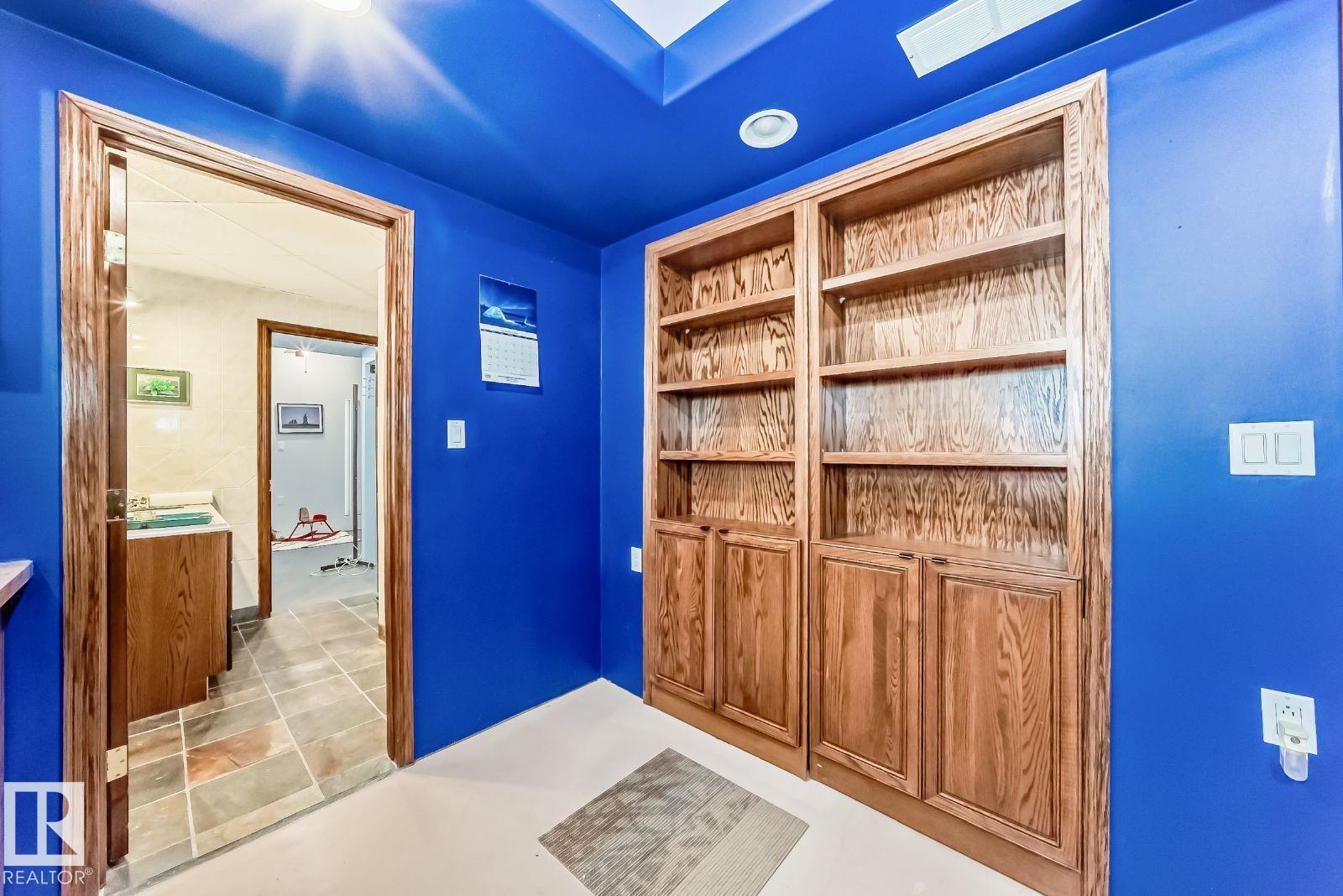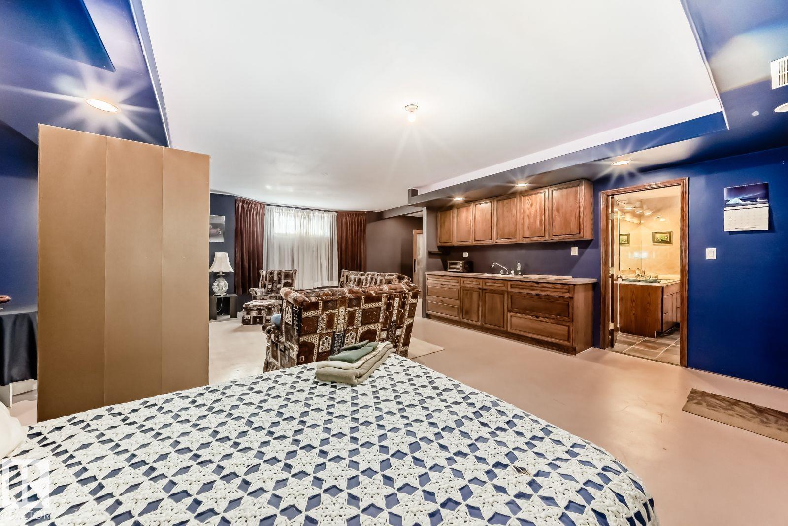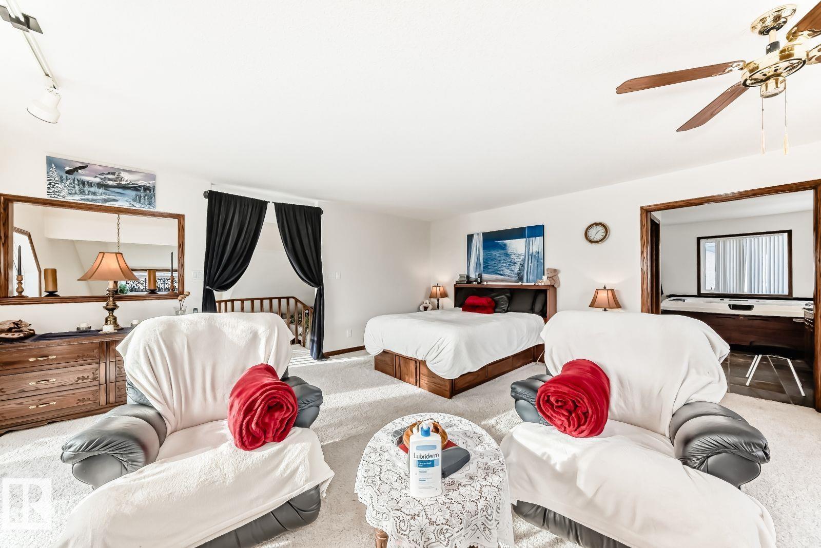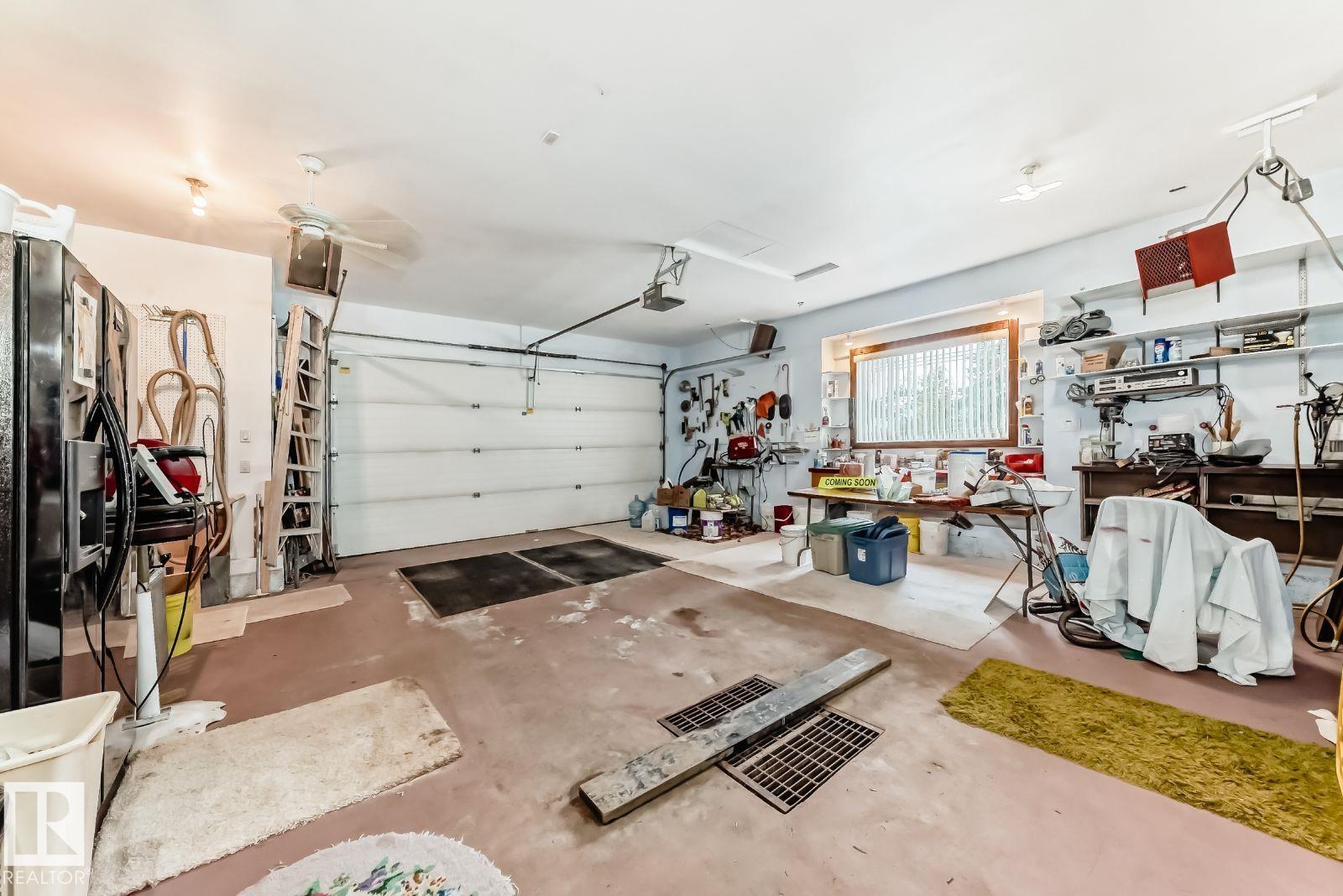 Custom-built 2,206 sqft 1.5 storey home with 1,400 sqft fully finished basement (potential of 2 bedrooms) and a 945 sqft 3+ car heated garage with 8’ insulated doors and parking for 8 vehicles. Main floor offers open-concept kitchen, dining & family room, formal living, formal dining (could convert to bedroom), bedroom with 4pc bath, and pantry/laundry with extra fridge. Upstairs features a 520 sqft primary retreat with walk-in closet, 4pc ensuite, sitting area with gas fireplace & coffee bar, plus east-facing deck with park views. Basement includes rumpus room with kitchenette, bedroom, office/bedroom, hobby room, 3pc bath, in-floor heat, sound-insulated ceiling & storage. TRIPLE garage fully insulated (incl. floor) with 220V, hot/cold water, floor drain & natural gas hookup. Highlights: central A/C with ducting for summer cooling and winter fresh air to keep basement dry, spa-inspired ensuite with steam shower, laundry chute, 2 decks, professional landscaping, quiet park location with ample wildlife. (id:63190)