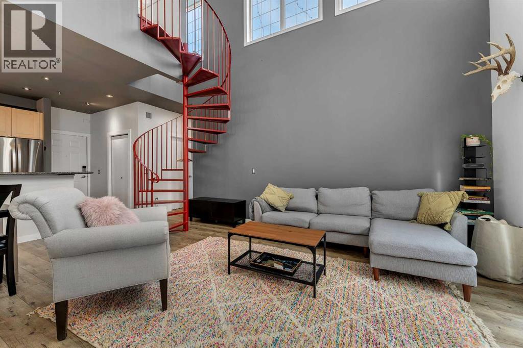 Welcome to your next chapter in the vibrant heart of Downtown Calgary! This isn’t just another condo—it’s a one-of-a-kind PENTHOUSE LOFT that perfectly blends modern luxury with urban character. Step inside and be immediately impressed by the 20-foot vaulted ceilings, expansive windows, and sun-soaked south-facing balcony that fill the space with natural light. The open-concept design creates an effortless flow between living, dining, and entertaining areas—anchored by a cozy gas fireplace that sets the tone for Calgary’s crisp winter nights. The kitchen is both stylish and functional, featuring granite countertops, stainless steel appliances, and a large eating bar that’s perfect for morning coffee or evening wine with friends. Retreat to your primary suite, complete with a custom walk-in closet and a 4-piece ensuite designed for relaxation. The second bedroom offers flexibility for guests, roommates, or an at-home workspace—whatever suits your lifestyle best. But the real showstopper? The spiral staircase leading to your very own private loft and rooftop patio with panoramic downtown skyline views. Whether you envision a creative studio, fitness space, or peaceful retreat under the stars, this loft delivers endless possibilities. Enjoy the convenience of in-suite laundry, a titled parking stall, and underground storage—rare perks in the Beltline. With over 1,100 sq. ft. of thoughtfully designed living space, this penthouse is more than a home—it’s an experience. Don’t wait—book your private showing today and discover the lifestyle you’ve been dreaming of. (id:63190)