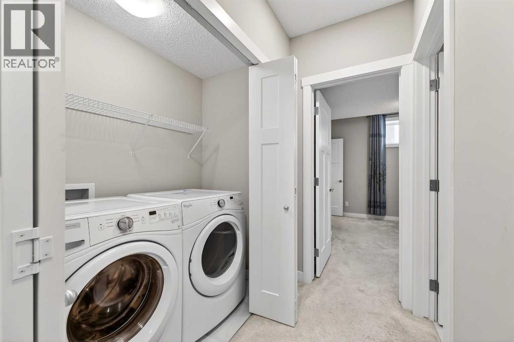 Beautifully designed 4 bedroom home offering over 2,000 sq. ft. of fully developed living space. With three bedrooms upstairs and one in the fully finished lower level, this thoughtfully laid out property combines modern finishes with functional design, perfect for families or those seeking flexible living space. A welcoming foyer opens to a bright, open concept main floor featuring 9 foot ceilings and luxury vinyl plank flooring. The stylish kitchen showcases an extended island, stainless steel appliance package, soft close cabinetry, and ample counter and cupboard space, ideal for everyday living and entertaining. Just off the dining nook, you will find access to the private back deck and fenced backyard, creating seamless indoor outdoor flow. A convenient 2 piece powder room completes the main level, along with access to the extra wide double detached garage. The fully developed lower level also features 9 foot ceilings and includes a spacious media or recreation room, versatile flex space perfect for a home office or gym, a large fourth bedroom with generous closet space, a 4 piece bathroom, and a dedicated laundry area with washer and dryer included. Upstairs, soaring ceilings and abundant natural light enhance the space. The primary suite offers a vaulted ceiling, large windows, a 4 piece ensuite, and an impressive walk in closet. Two additional bedrooms and another 4 piece bathroom complete the upper level. Adding to the home’s charm, a lovely front deck welcomes you as you walk up the front stairs, the perfect place to enjoy your morning coffee. Ideally located close to some of Calgary’s top rated schools, parks, pathways, shopping, dining, and everyday amenities, this home offers the perfect balance of lifestyle and convenience. Thoughtfully finished across all three levels, it delivers space, style, and functionality in an exceptional setting. (id:63190)