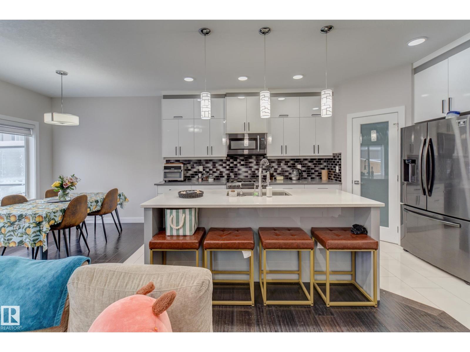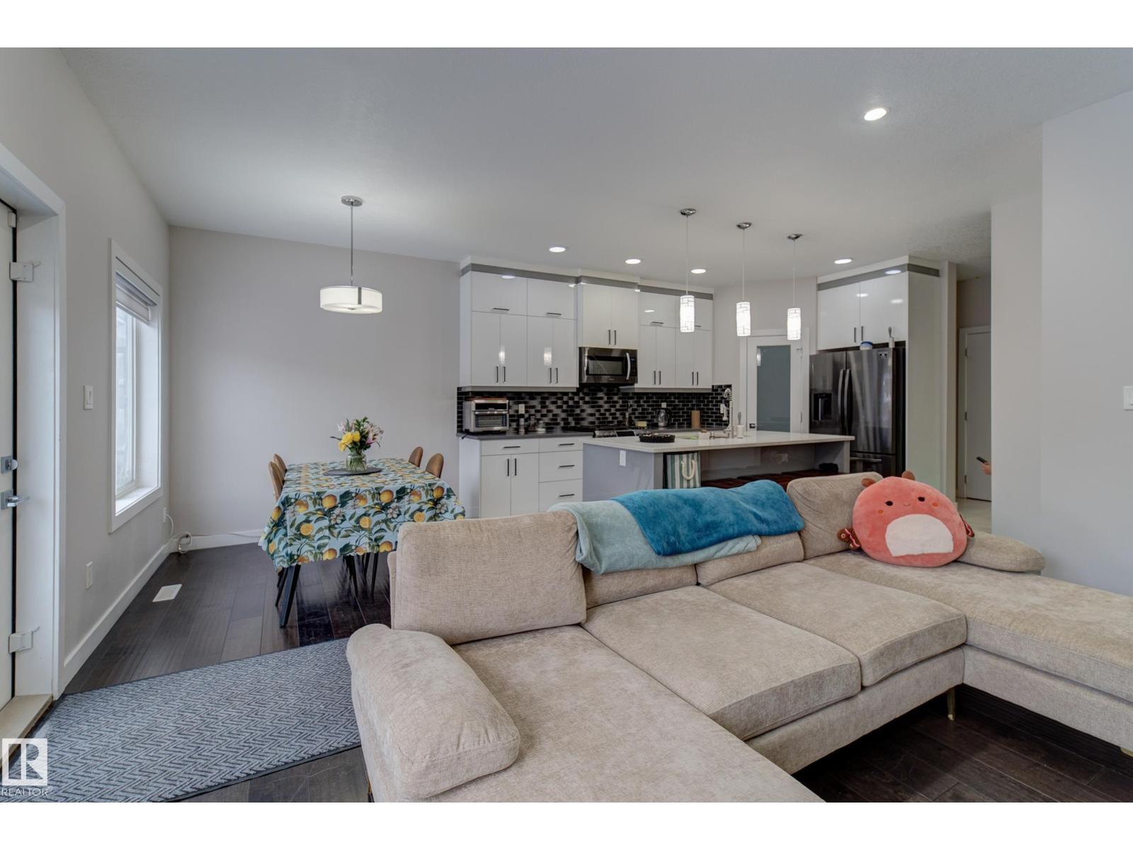 This property represents the perfect combination of hassle-free living while allowing you to own your land. This bareland condo is situated in the heart of Southeast Edmonton, conveniently located near schools, a recreation center, shopping, and the Anthony Henday.This two-story half-duplex features a double attached garage and a separate entrance to the basement. The main floor boasts an open-to-above design with 9-foot ceilings, a half bath, and a living and dining area, all complemented by a kitchen that extends to the ceiling. The upper level includes the primary bedroom, two additional rooms, a full bathroom, a bonus room, and a laundry room. This home is bound to check off all the right boxes! Don't miss out, come and check it out today! (id:63190)