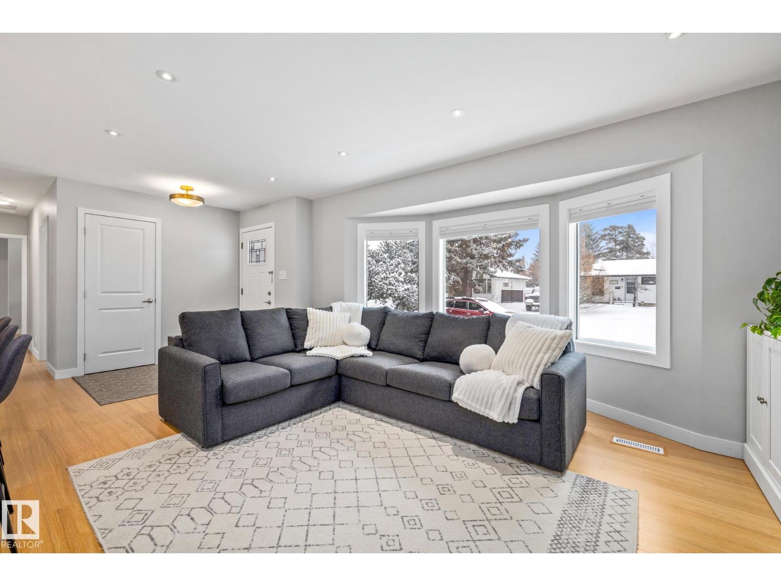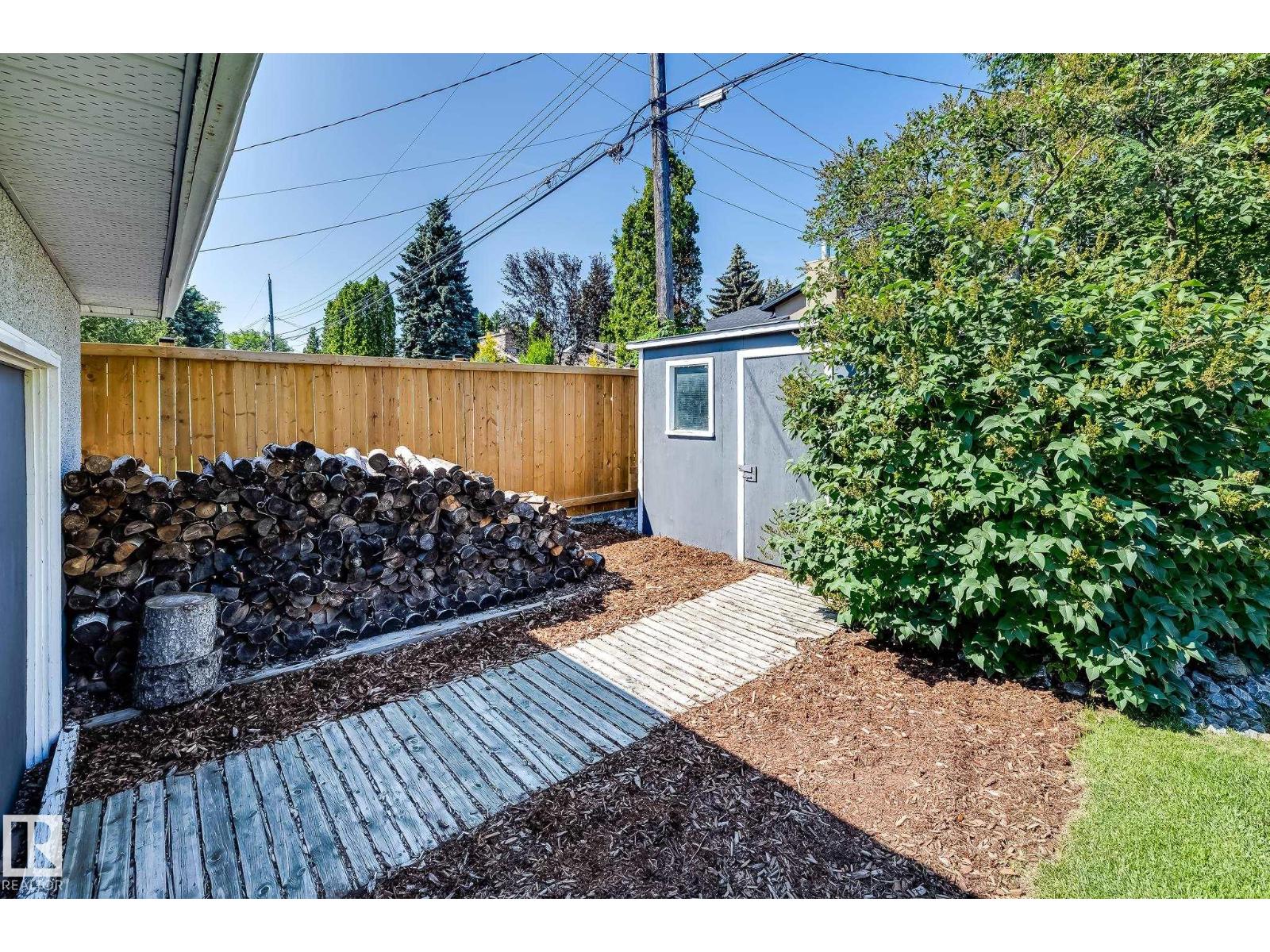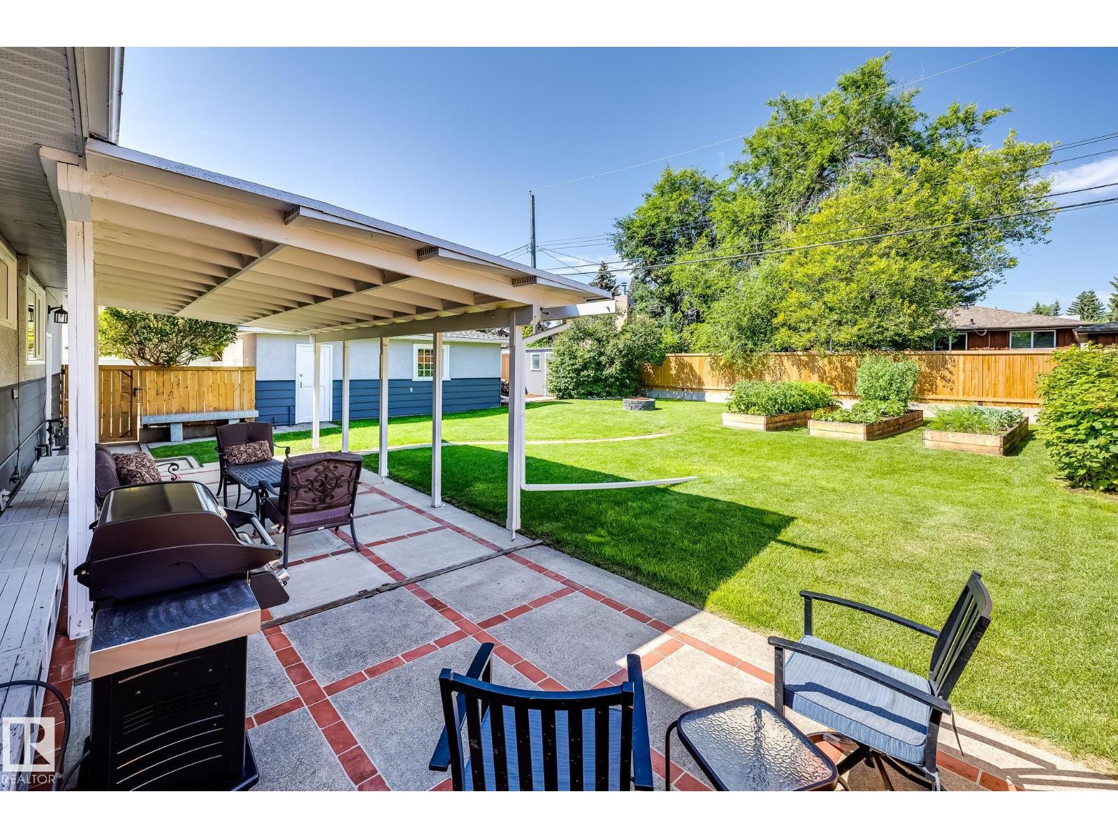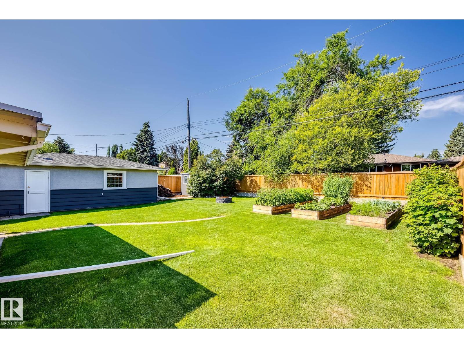 Welcome to Rio Terrace, one of Edmonton’s most sought-after west end communities, known for mature trees, oversized lots, top-rated schools, with quick access to Downtown & the UofA and direct access to the River Valley trail system. This stunning bungalow was renovated down to the studs with major upgrades including new plumbing, 150-amp electrical service, central A/C, triple pane windows and 50-year shingles. The bright open-concept main floor features engineered white oak hardwood, a designer kitchen with 8’ island, and fully updated bathrooms with heated floors. Outside, enjoy a heated garage, new fence and beautiful brick inlay patio overlooking a massive, private, park-like yard. Turnkey living on a quiet, family-friendly street in a premier Rio Terrace setting. (id:63190)