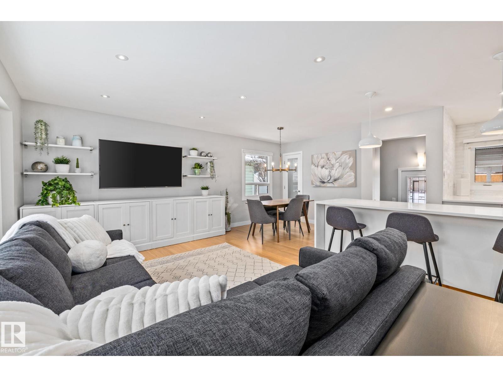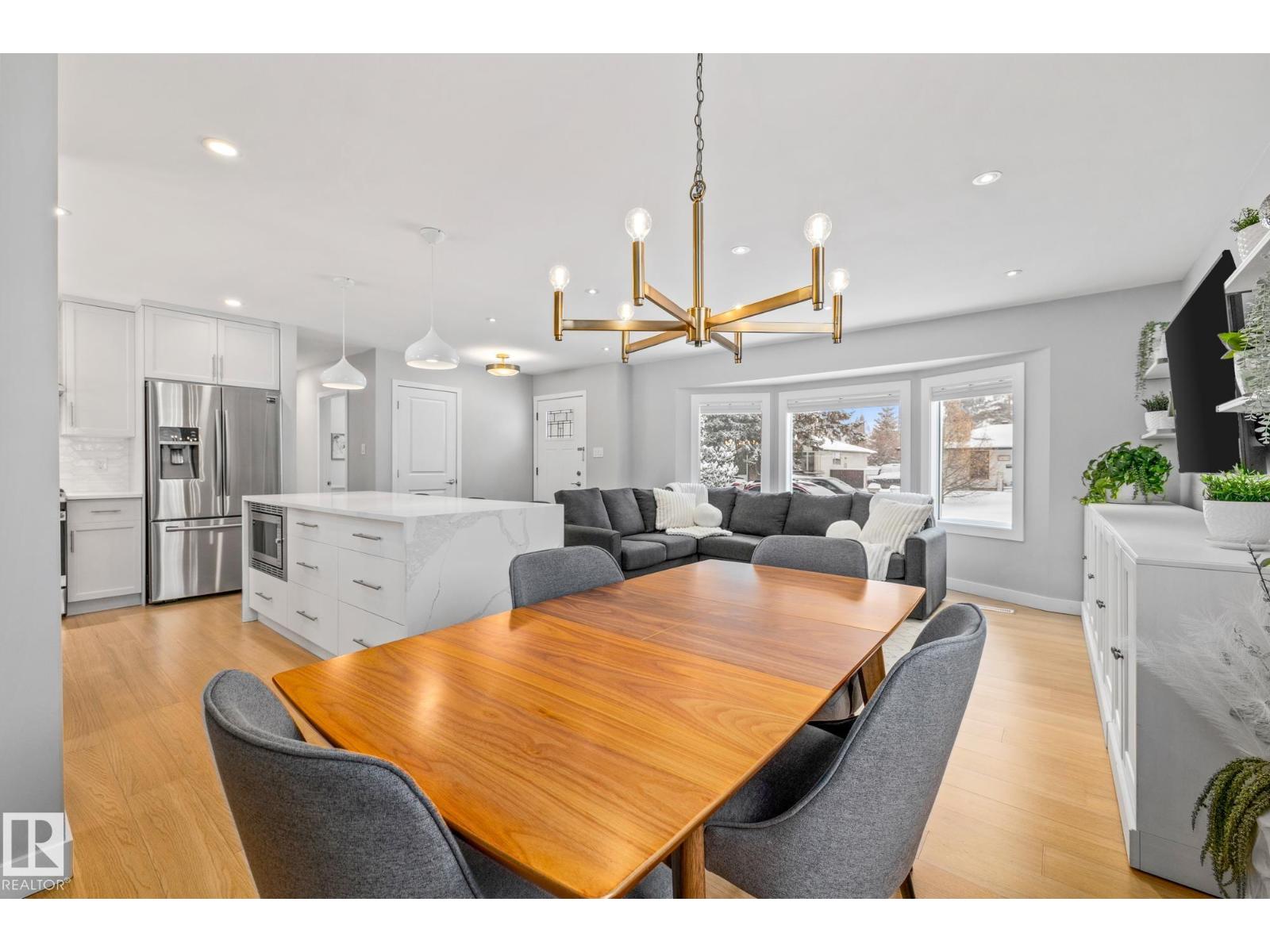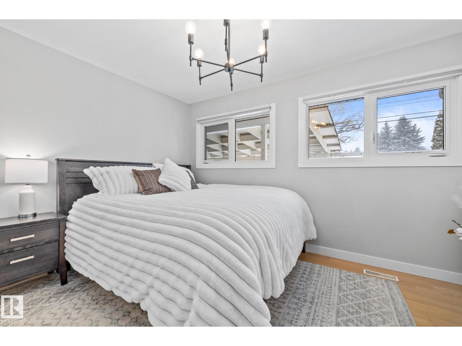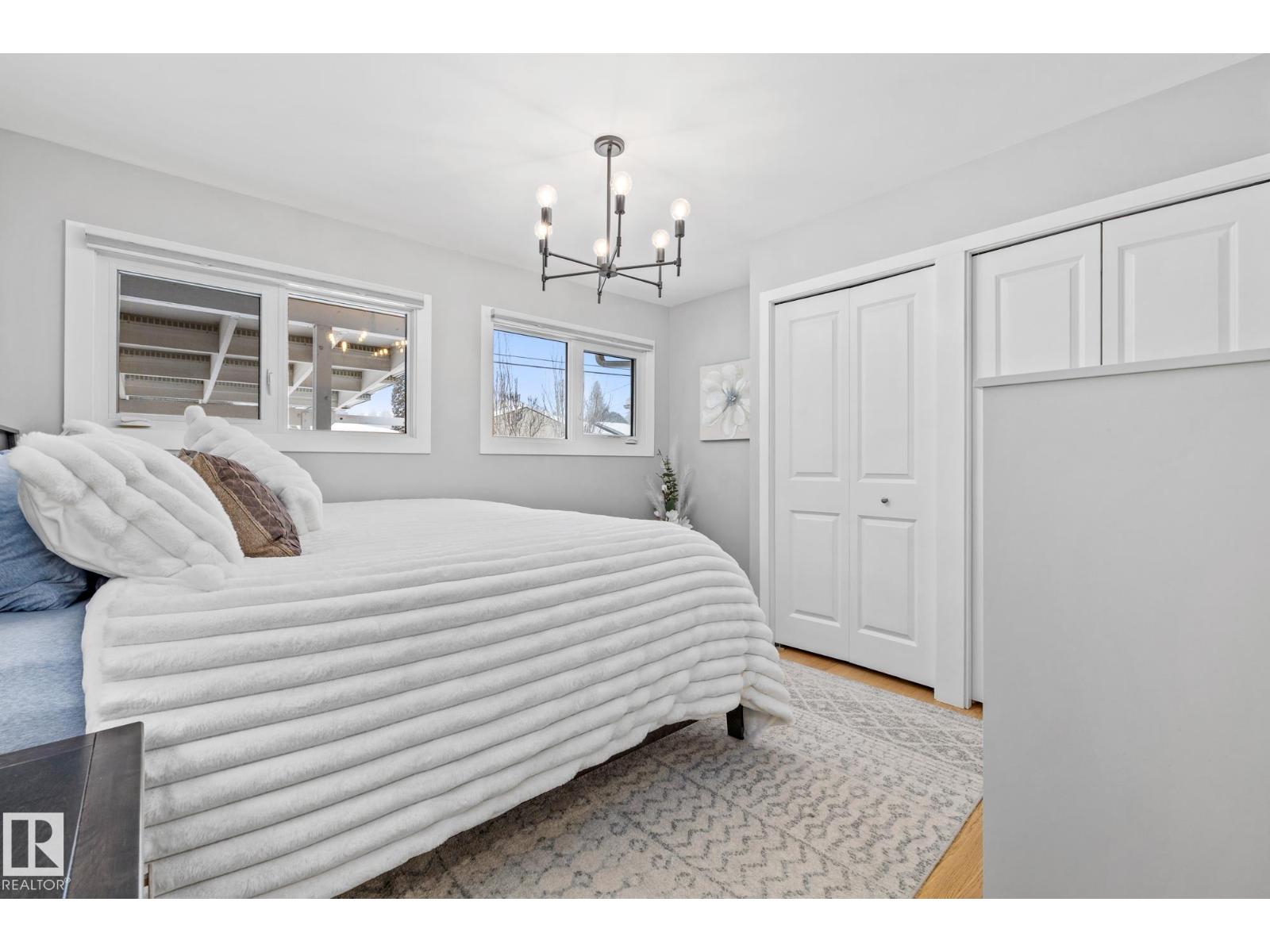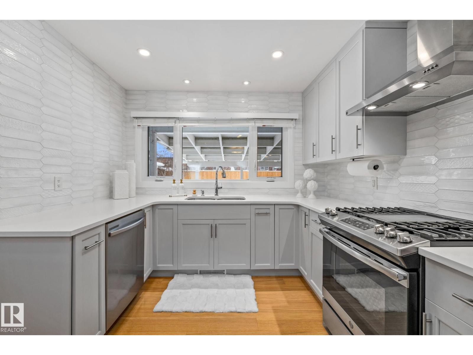 Welcome to Rio Terrace, one of Edmonton’s most sought-after west end communities, known for mature trees, oversized lots, top-rated schools, with quick access to Downtown & the UofA and direct access to the River Valley trail system. This stunning bungalow was renovated down to the studs with major upgrades including new plumbing, 150-amp electrical service, central A/C, triple pane windows and 50-year shingles. The bright open-concept main floor features engineered white oak hardwood, a designer kitchen with 8’ island, and fully updated bathrooms with heated floors. Outside, enjoy a heated garage, new fence and beautiful brick inlay patio overlooking a massive, private, park-like yard. Turnkey living on a quiet, family-friendly street in a premier Rio Terrace setting. (id:63190)